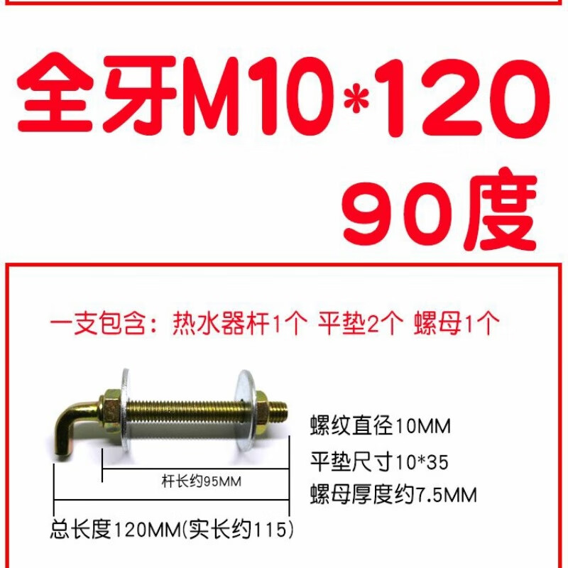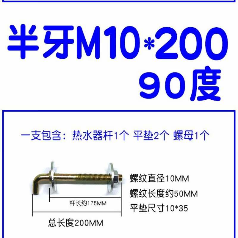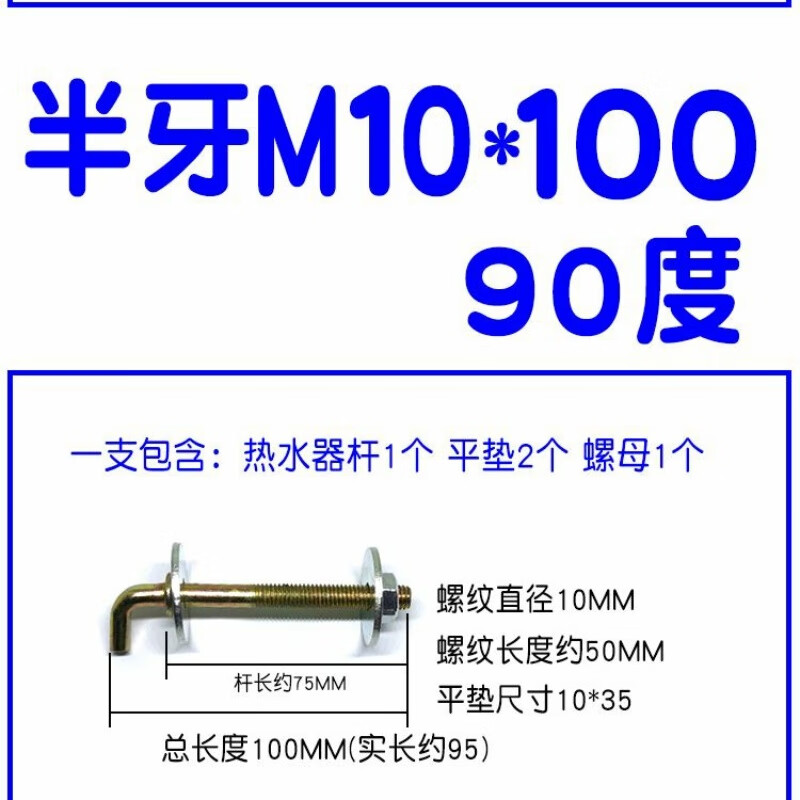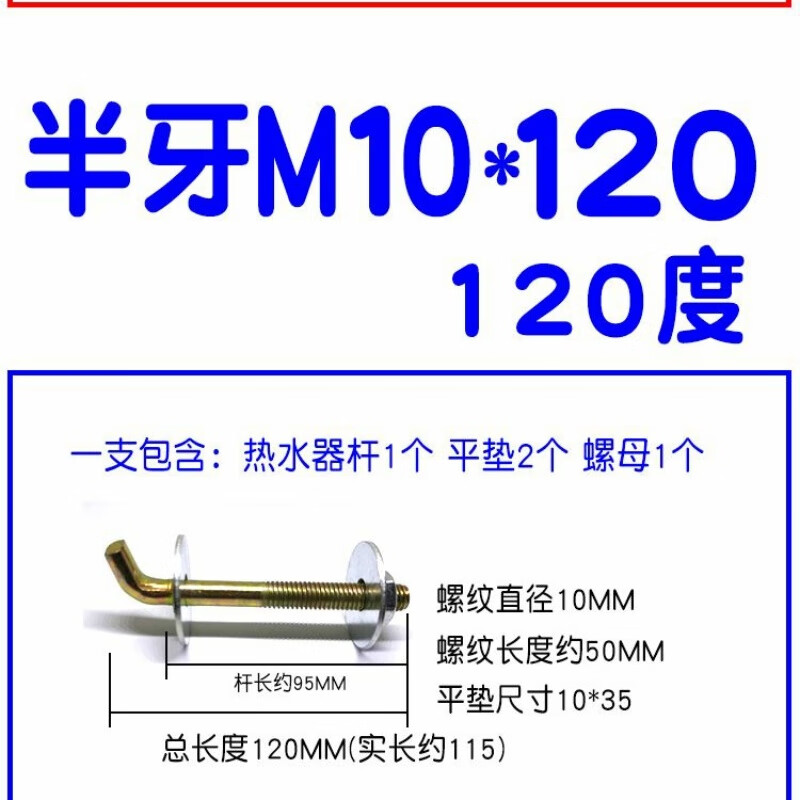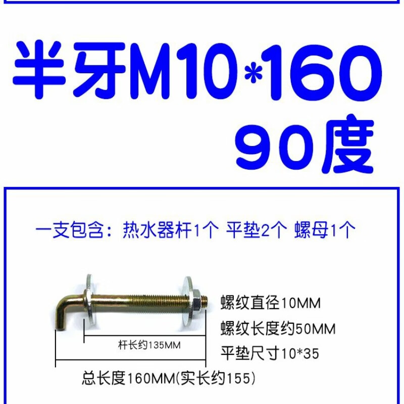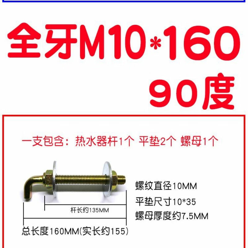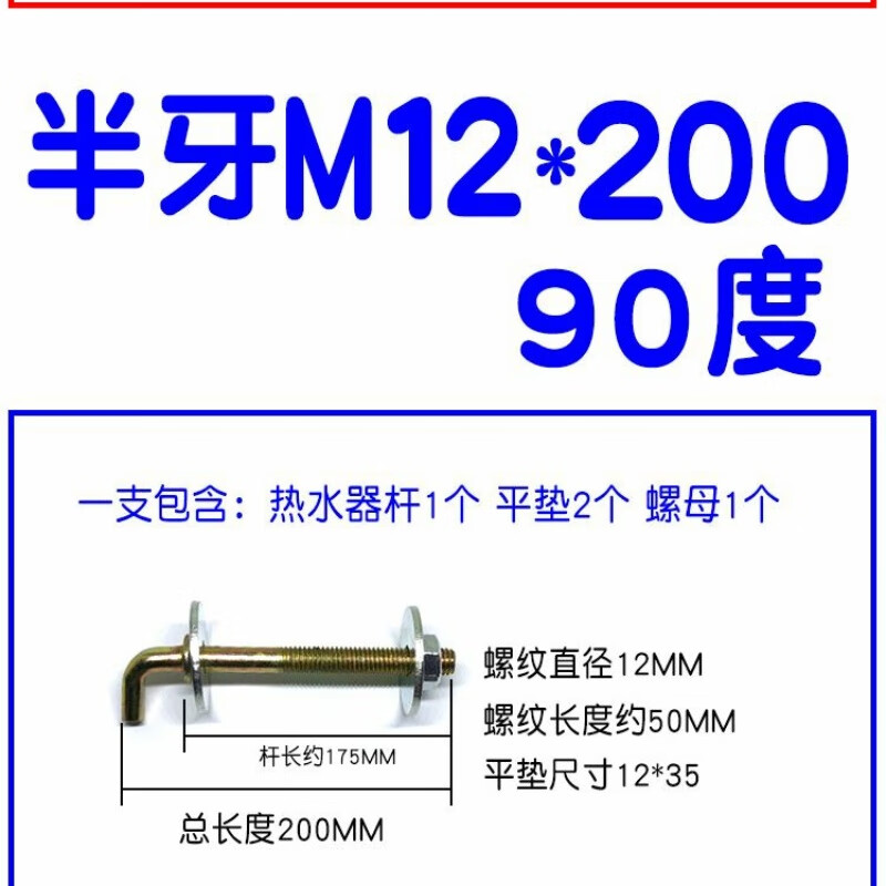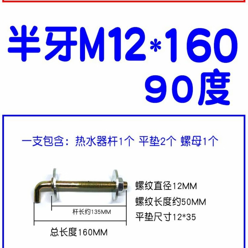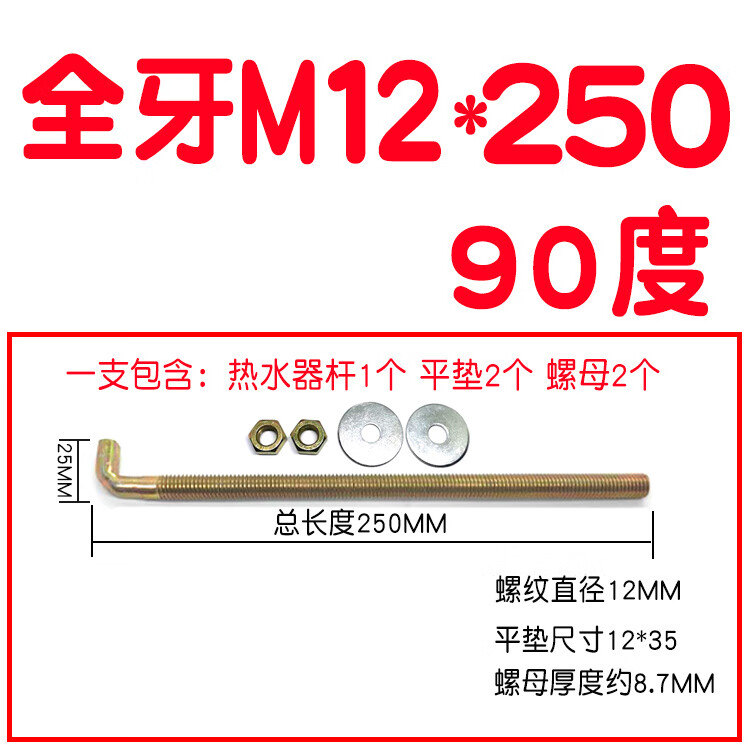 Qinkai through-wall electric water heater hook screw universal fixed frame bolt hanging nail special extension mm full tooth M12*325 90 degrees 2 pieces