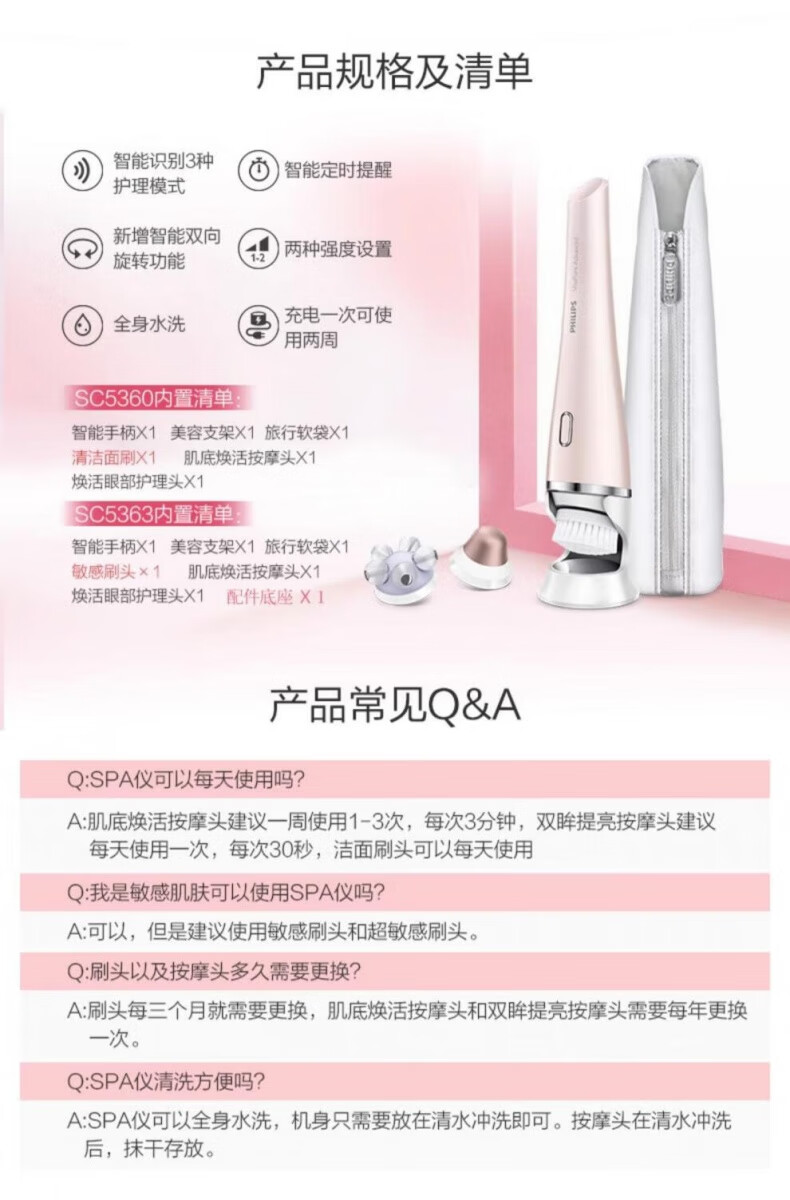 Philips philips face wash machine facial cleansing machine BSC208/111/SC5340/5275/SC5360 facial cleansing brush as a Christmas and New Year's Eve gift for my girlfriend's mother Deep Cleansing Cleansing Machine SC5275 Brown