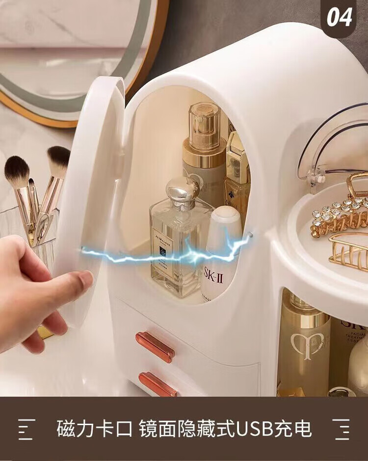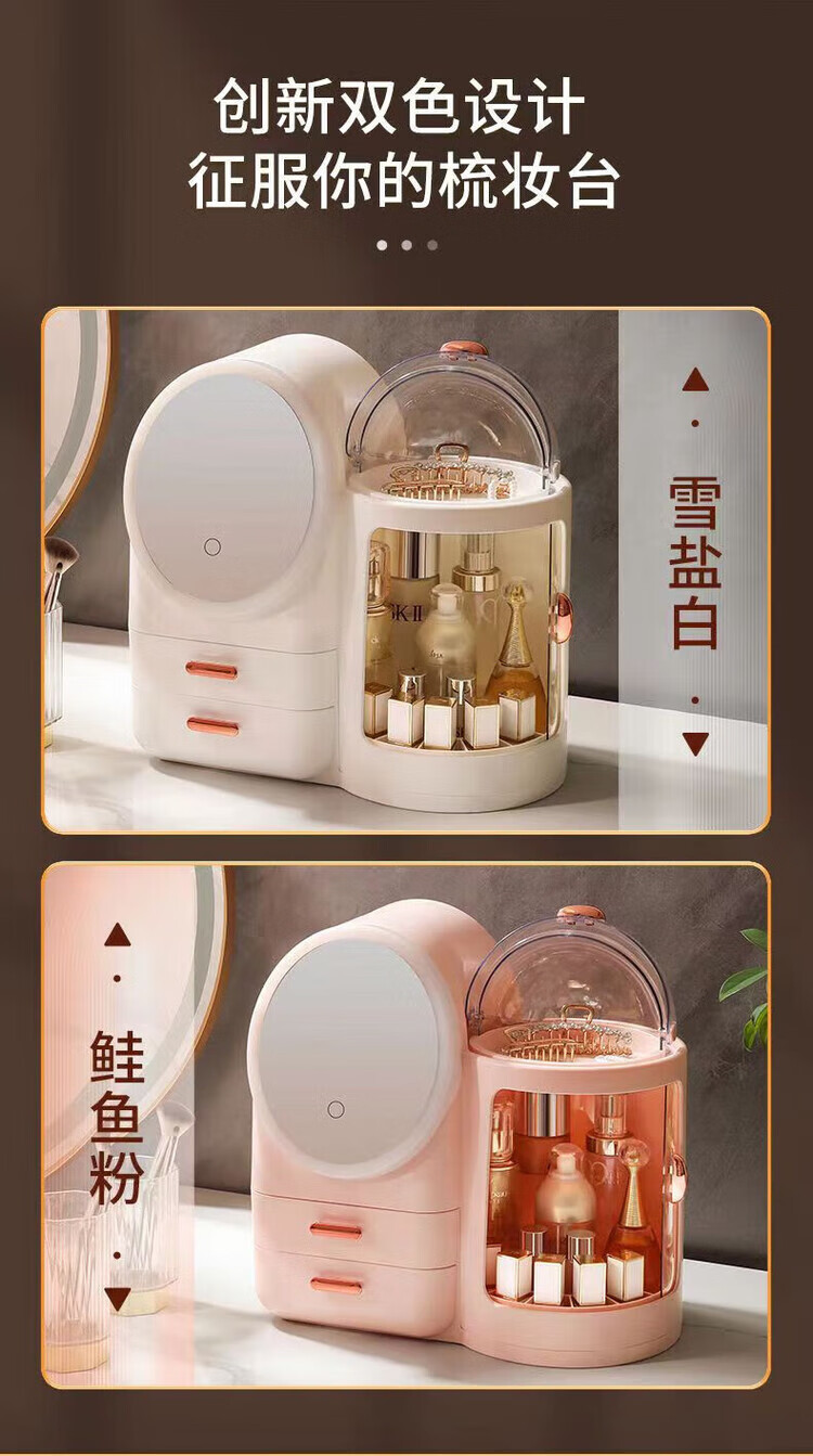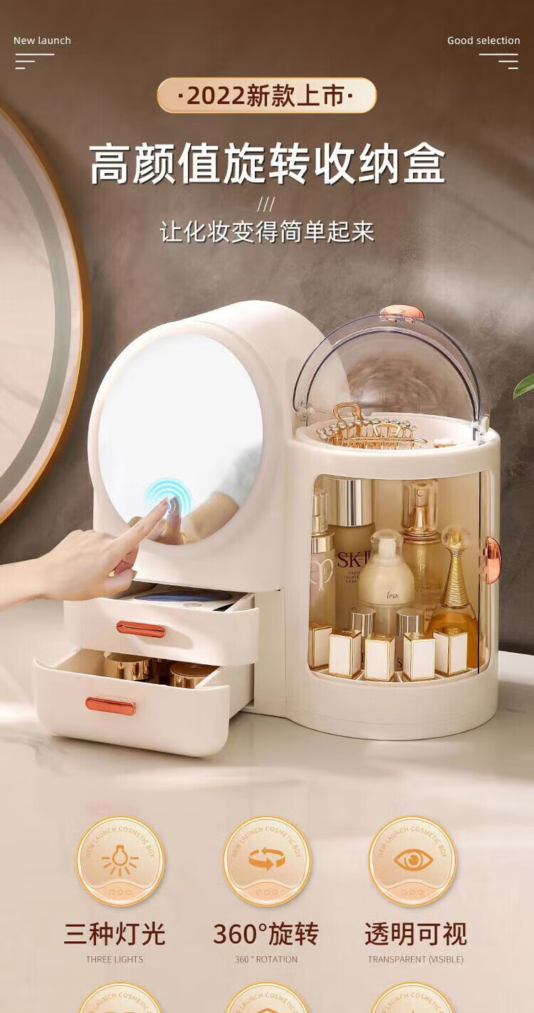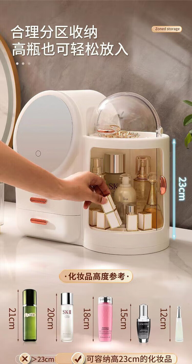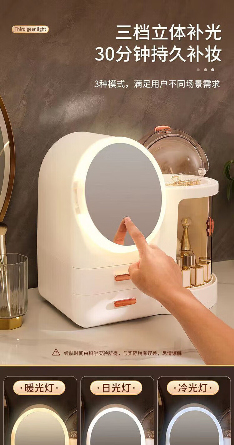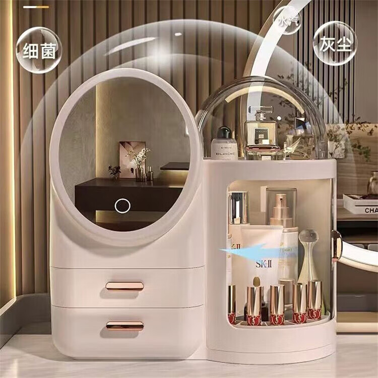 Yunya makeup mirror desktop LED light desktop with light portable fill-in light makeup mirror cosmetics storage box integrated storage rack pearl white LED light