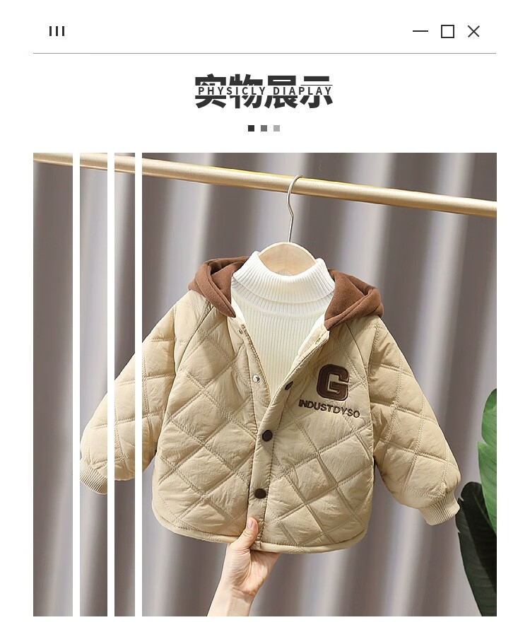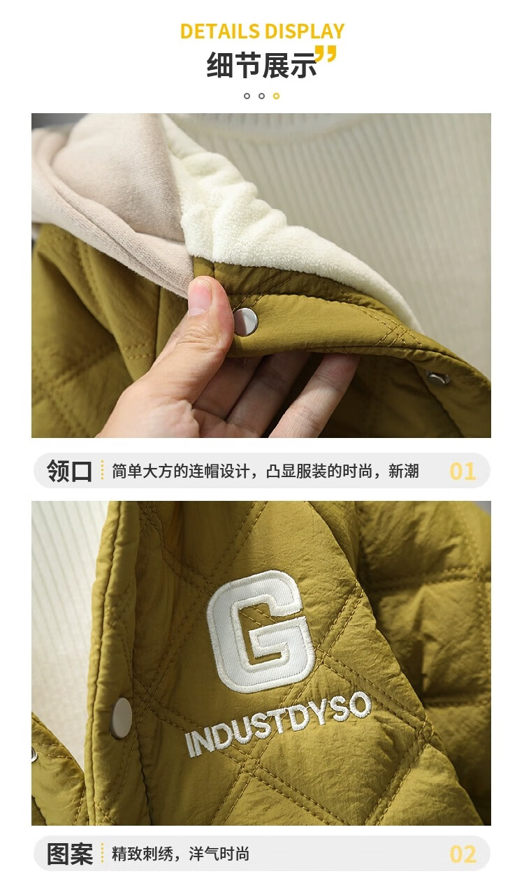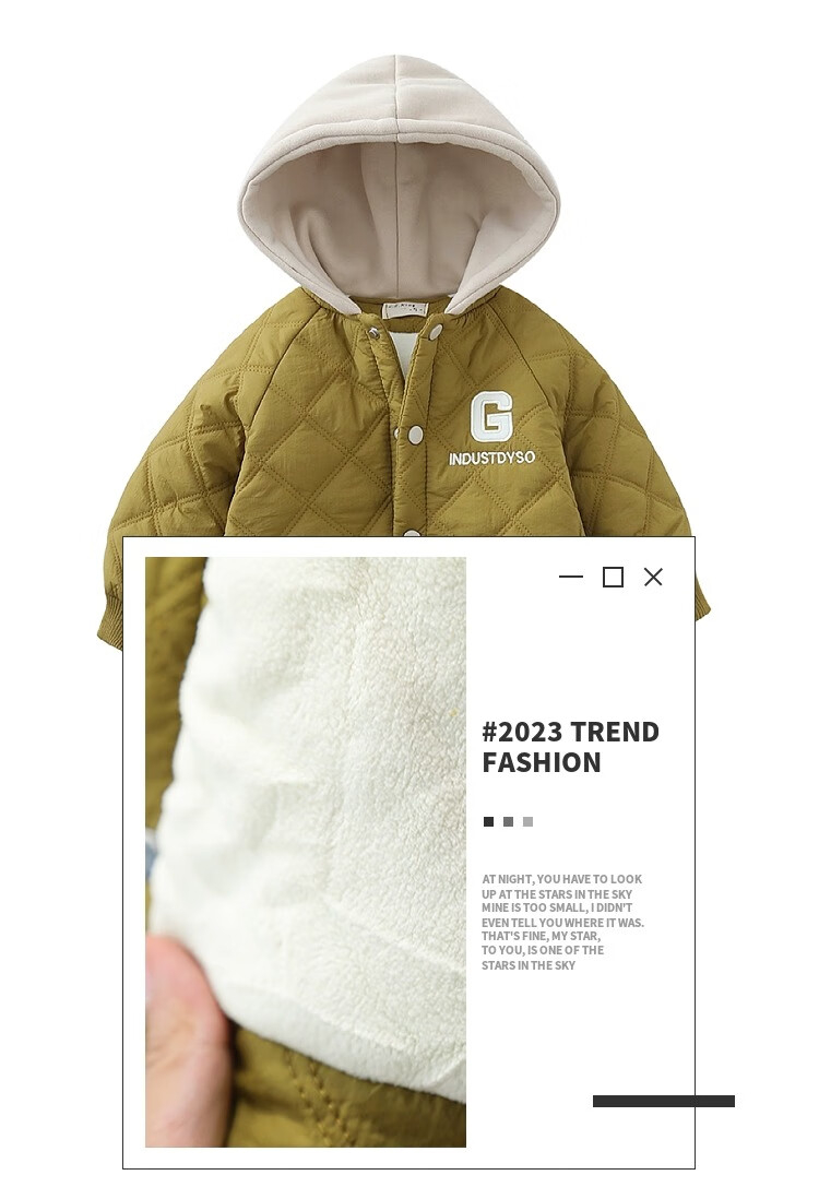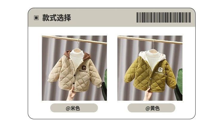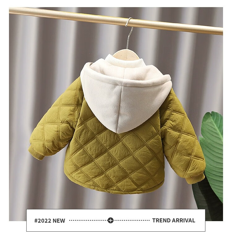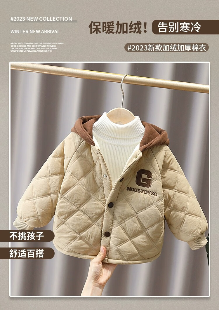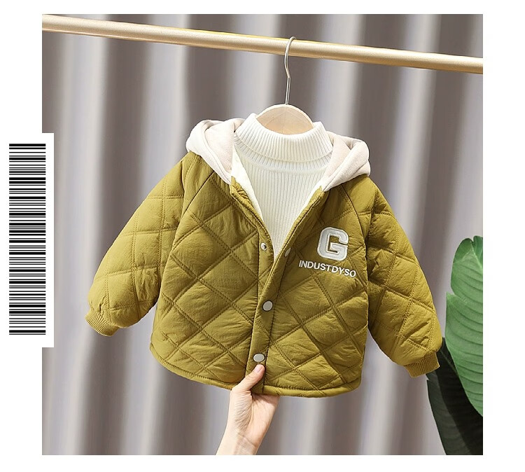 Disney brand boys' autumn and winter cotton coat hooded baby winter quilted jacket 2025 new baby boy children's cotton coat khaki velvet thickened G-shaped cotton coat 85cm (90 yards)