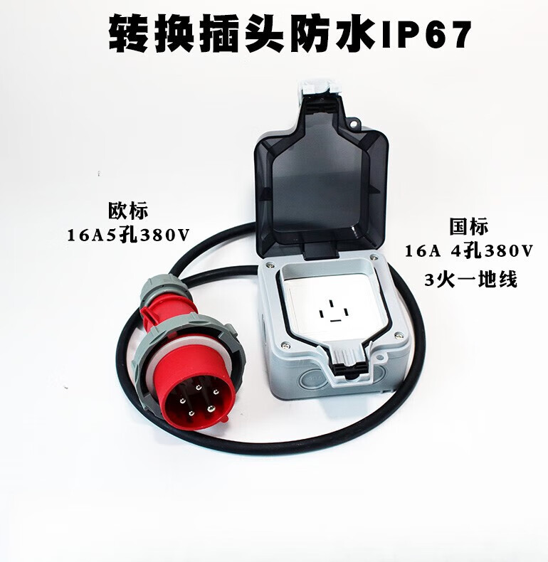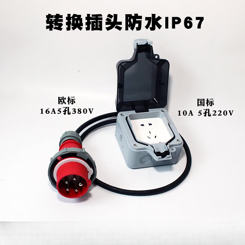 Industrial conversion plug 380V to national standard 4 holes 16A conversion head 220 waterproof RV charging box row European standard 220V to national standard 10A5 holes