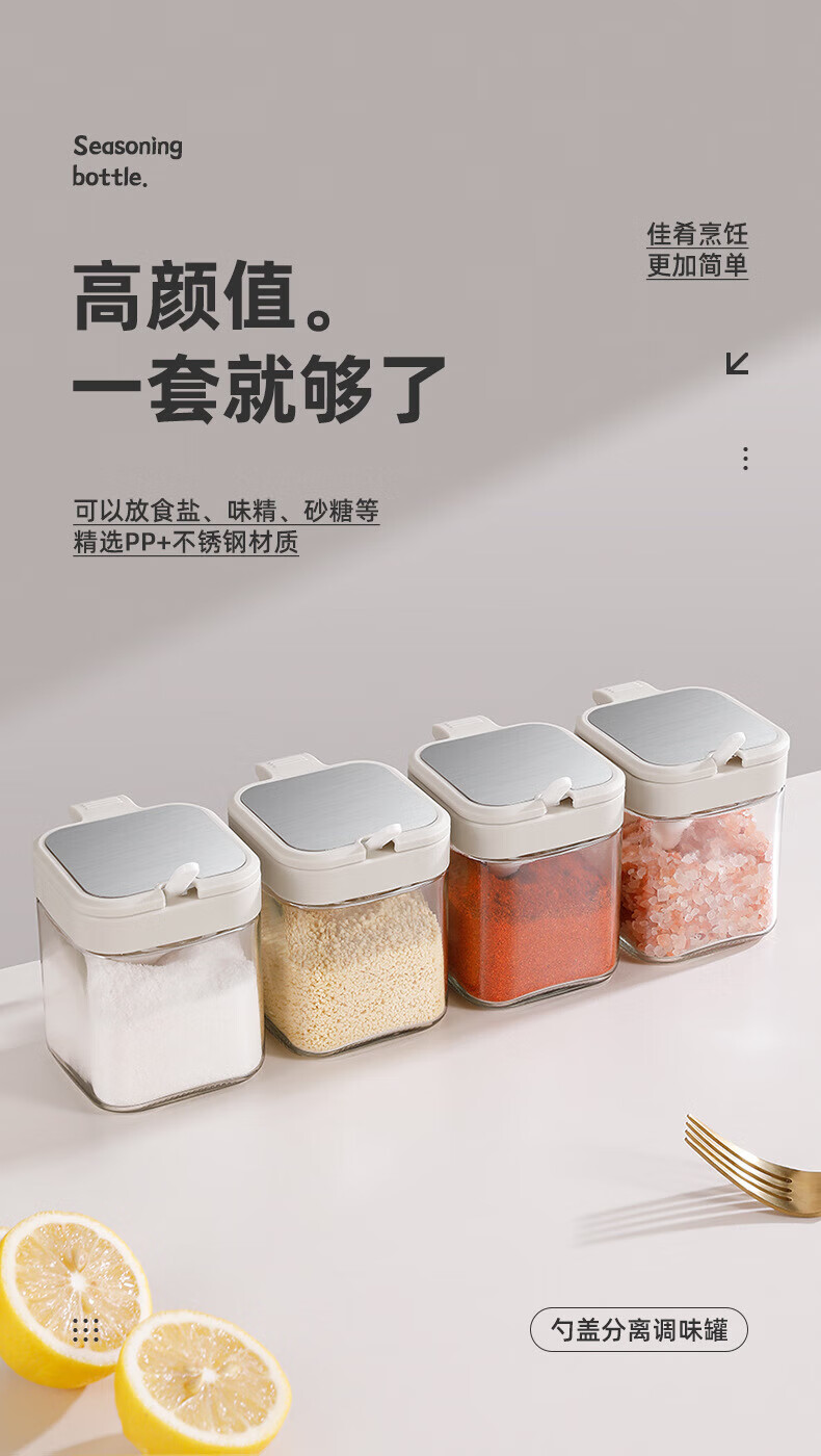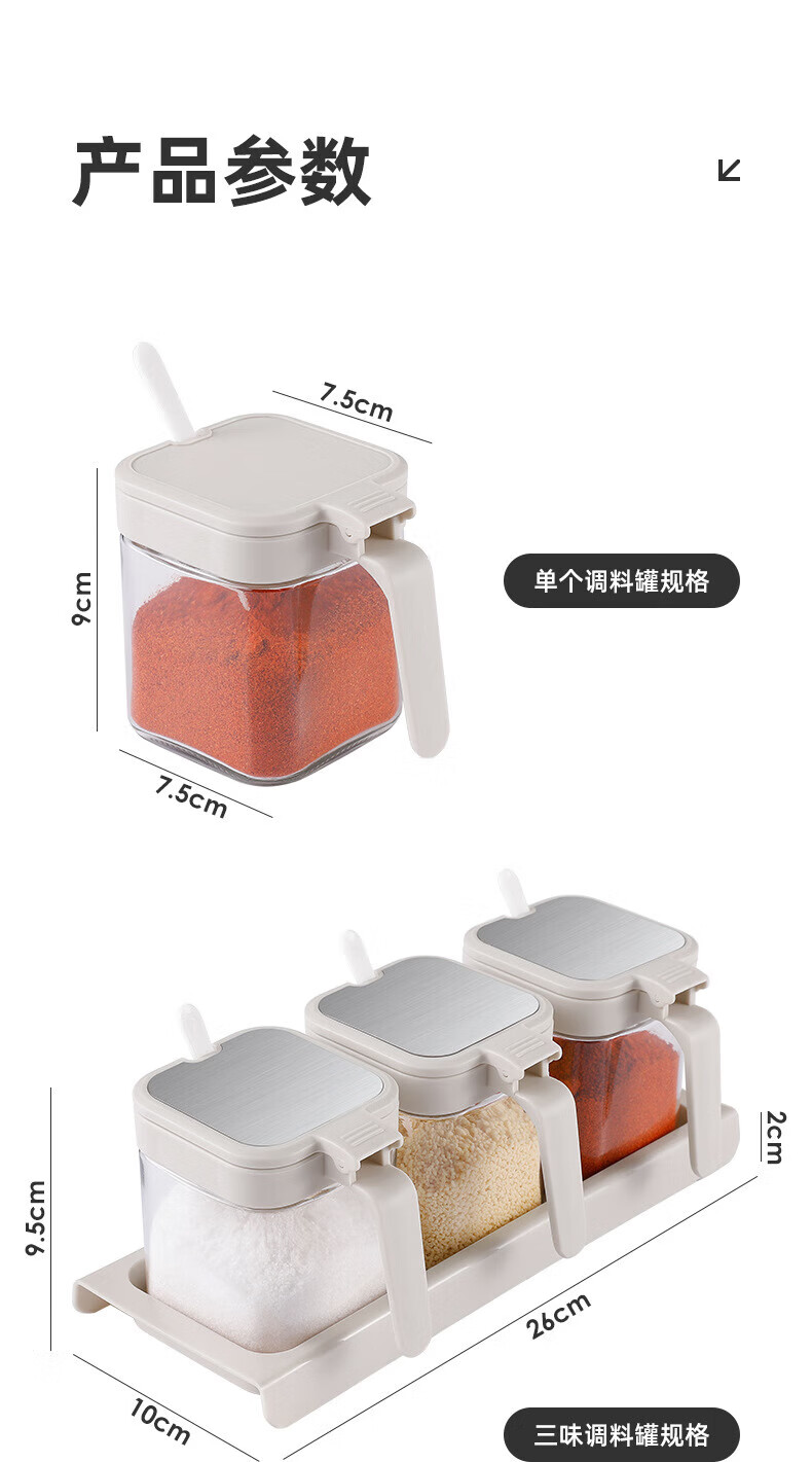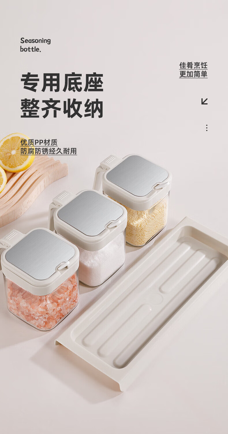 JIMANG seasoning box set kitchen household seasoning shaker salt shaker MSG pepper seasoning storage combination glass seasoning bottle 3 combinations + base