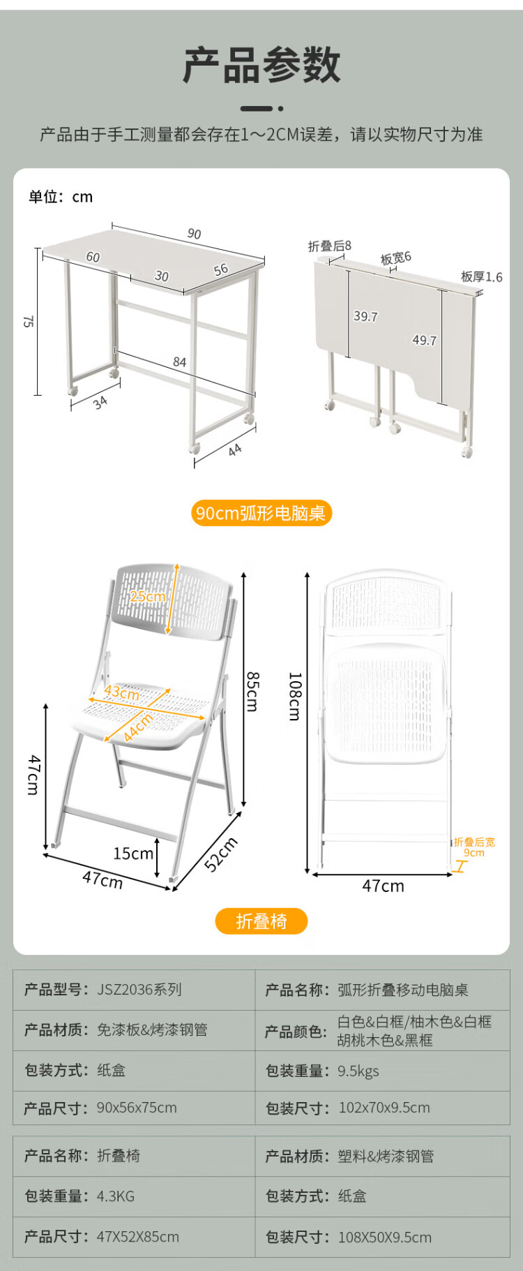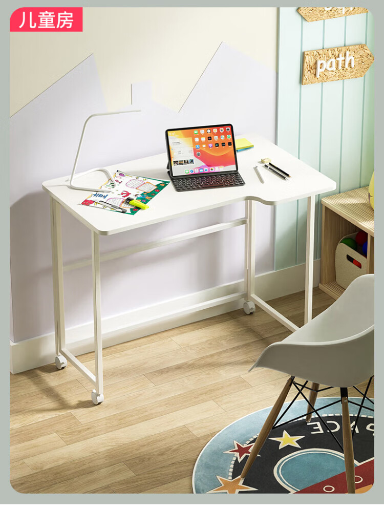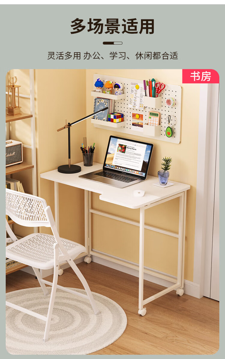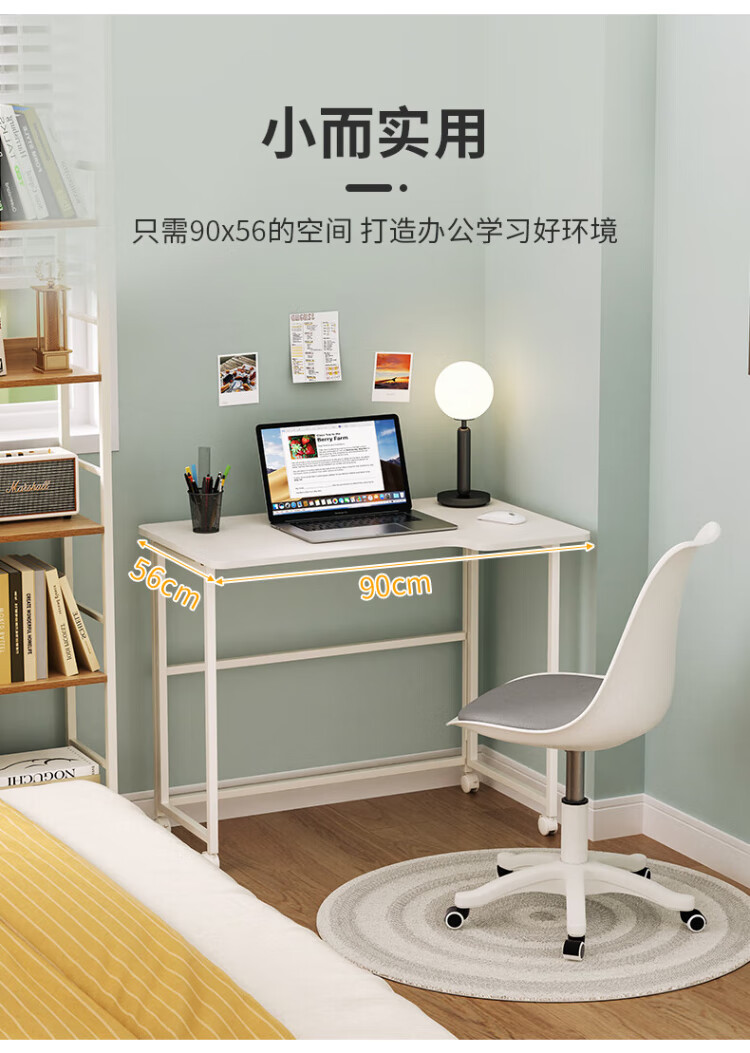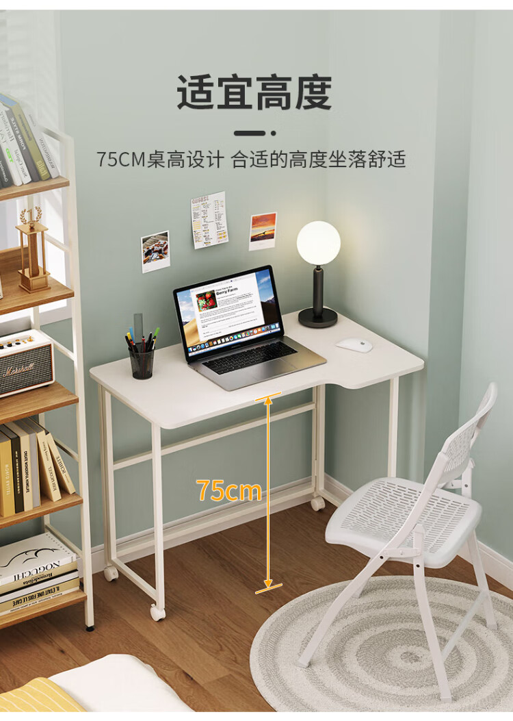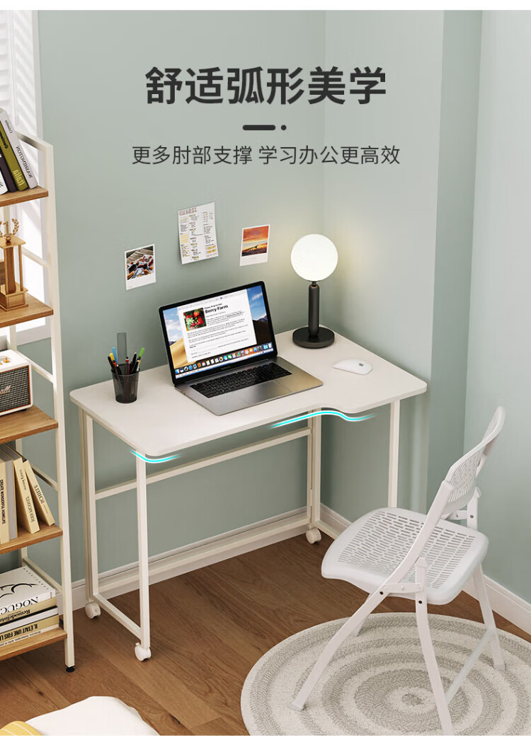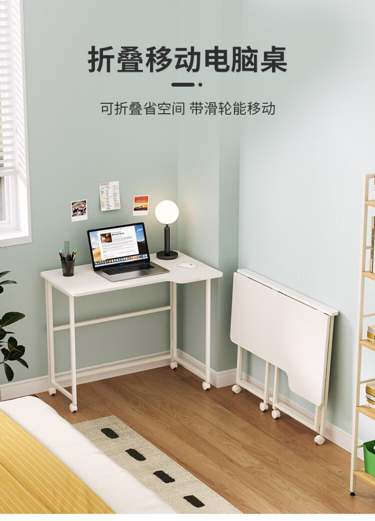 Shufusi folding desk mobile learning computer table home adult simple writing desk bedroom bedside folding table single table L-shaped folding table all white