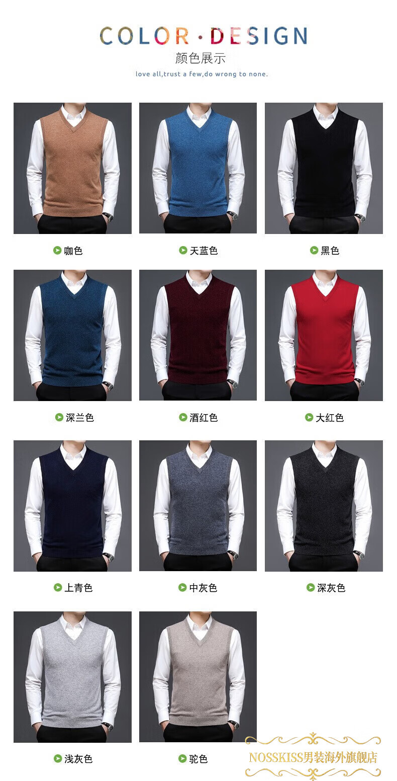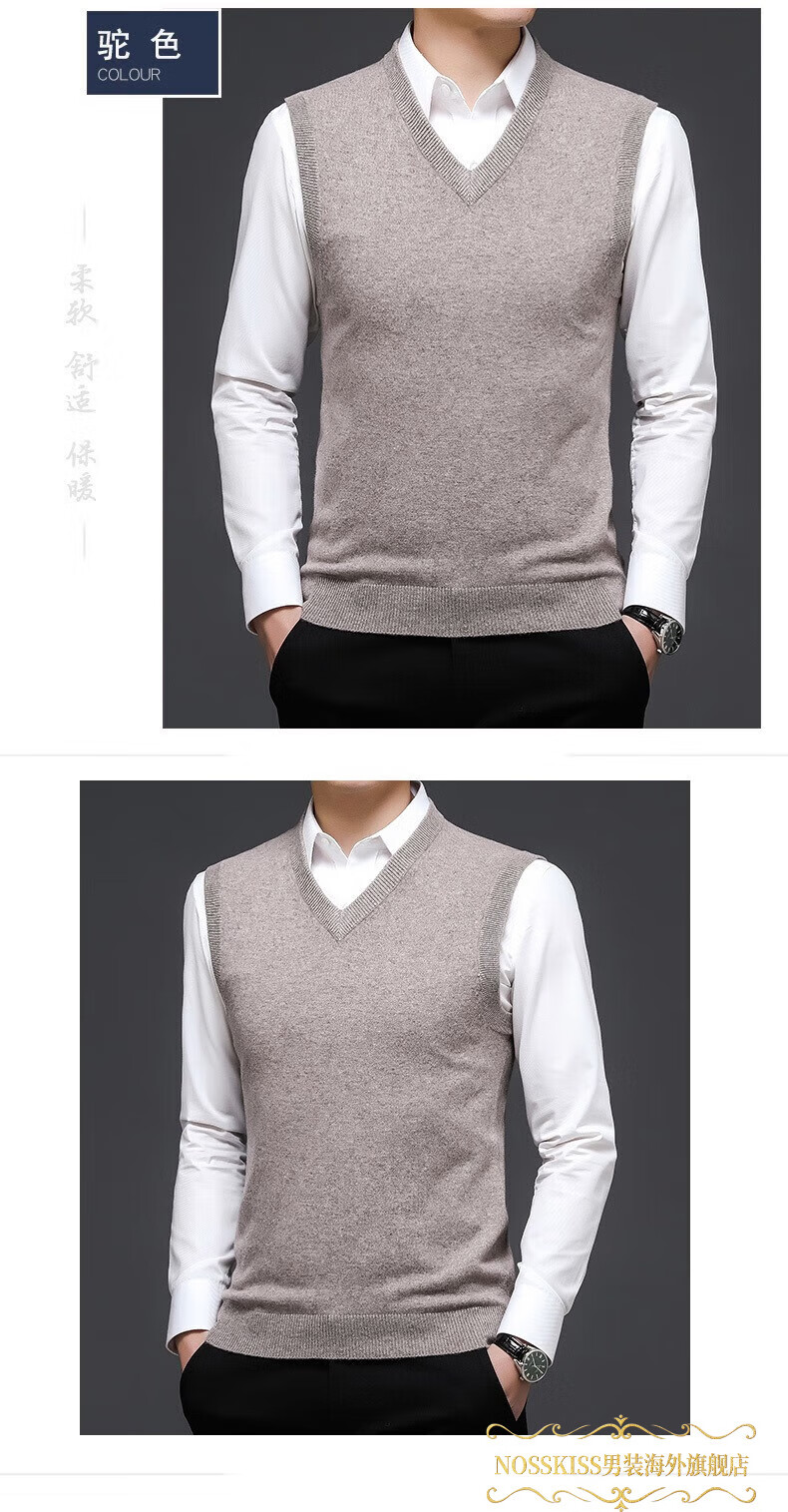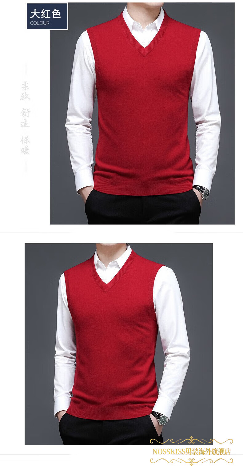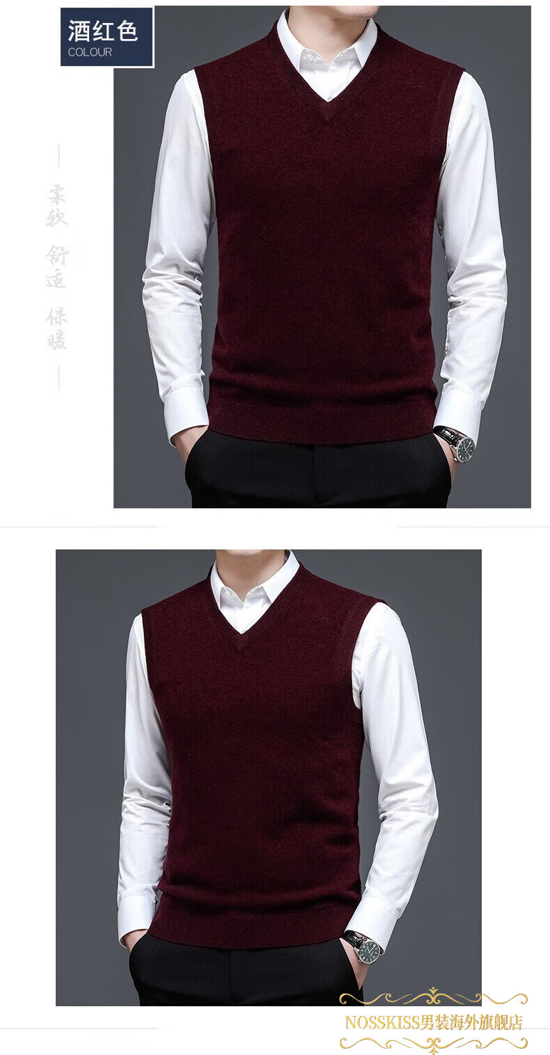 NOSSKISS light luxury brand men's vest men's autumn and winter V-neck pure wool Korean style business casual sweater burgundy XL 180