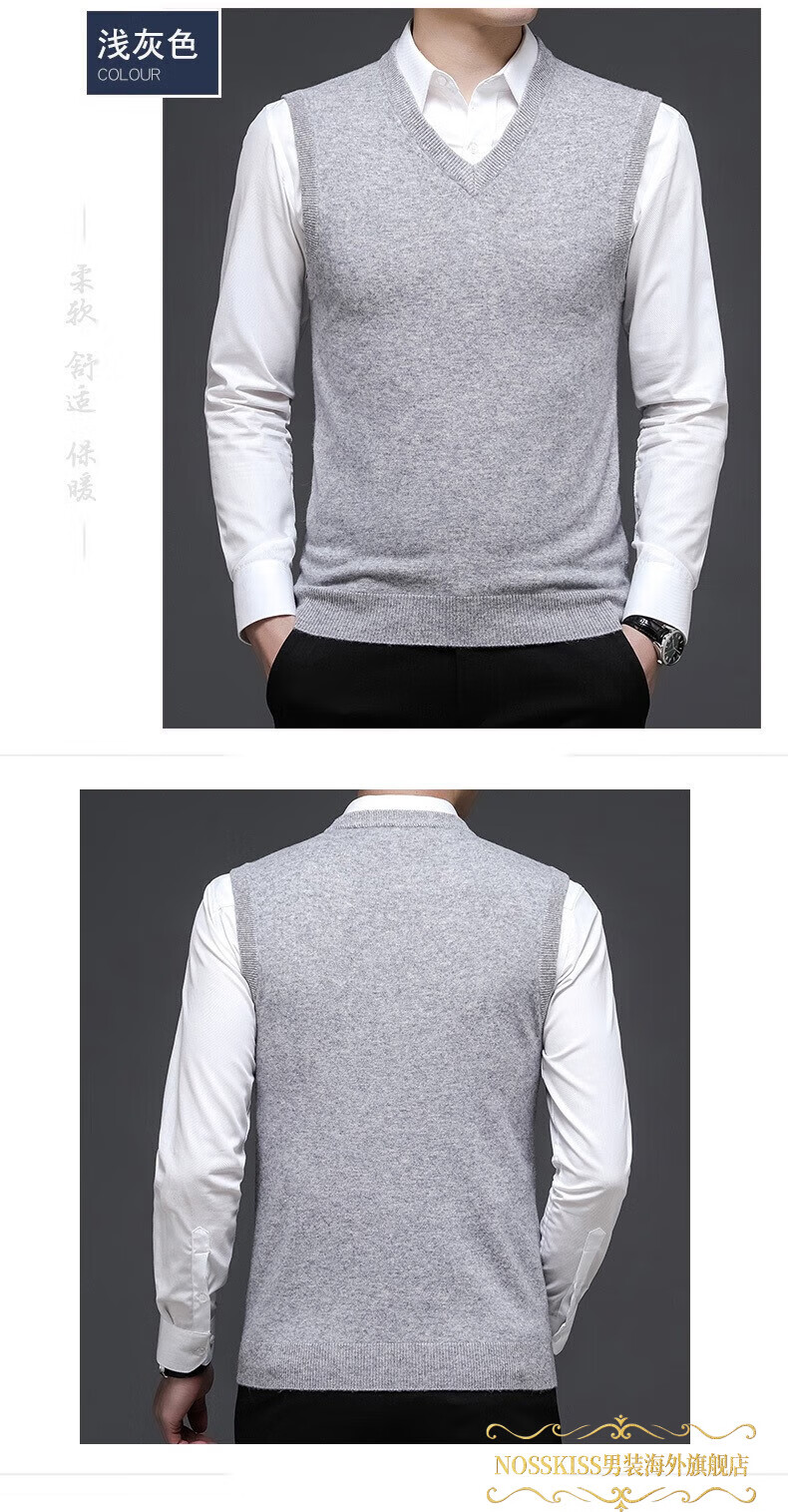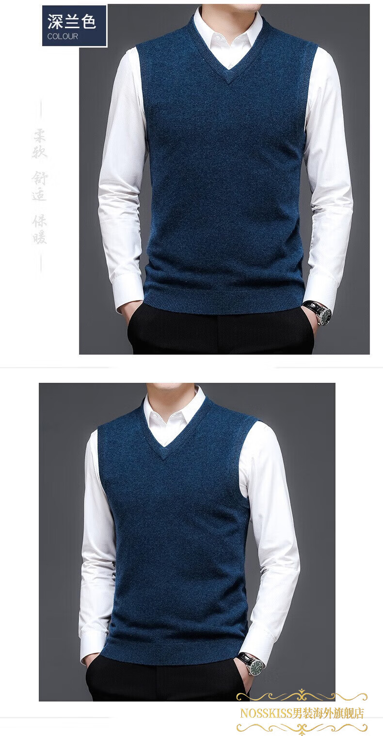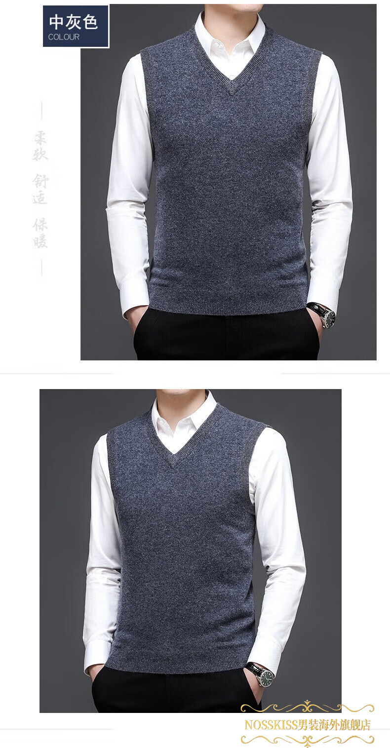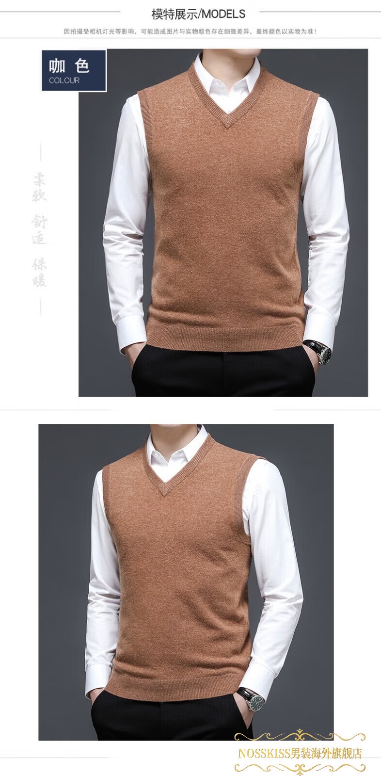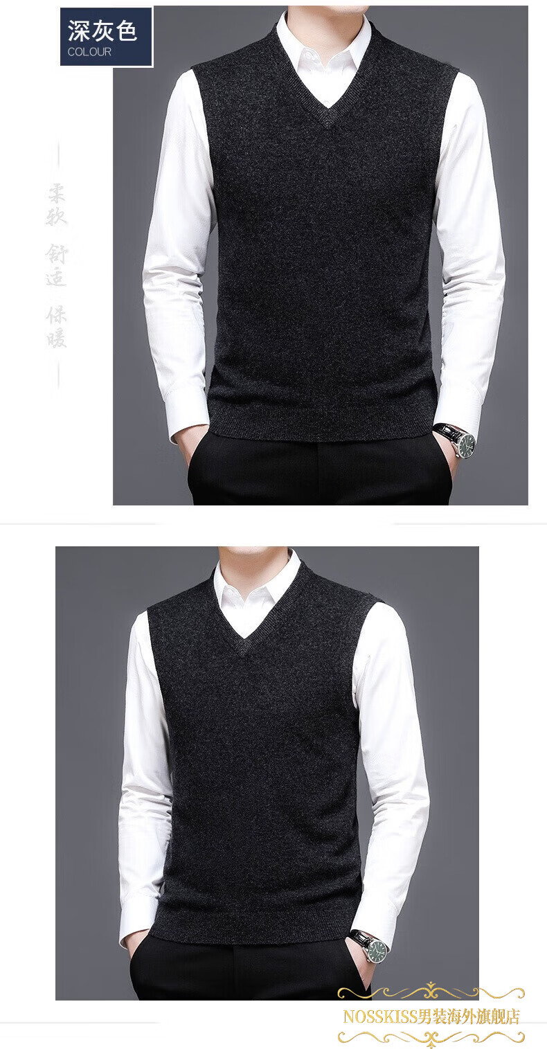NOSSKISS light luxury brand men's vest men's autumn and winter V-neck pure wool Korean style business casual sweater burgundy XL 180