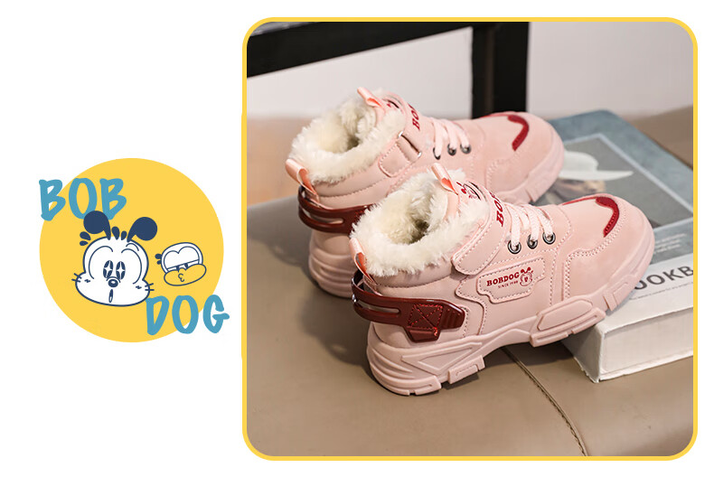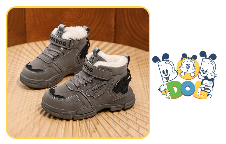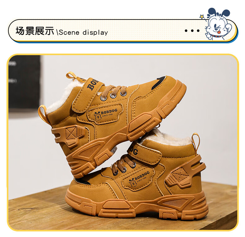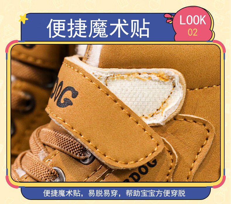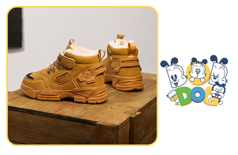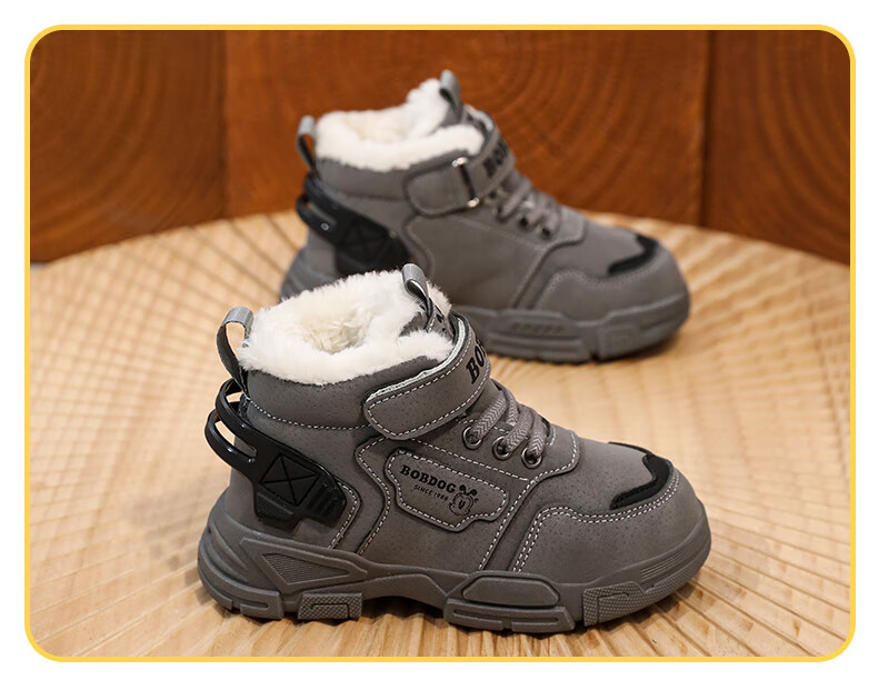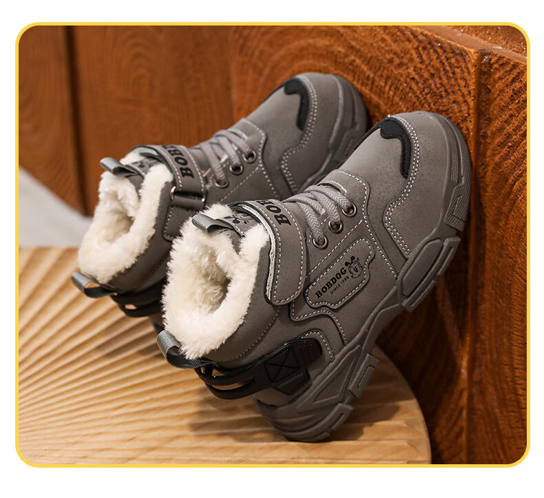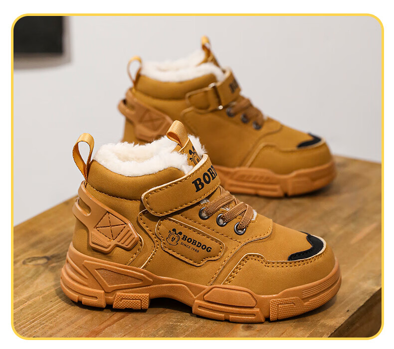 Babudou boys' large cotton shoes winter new waterproof plus velvet thickened snow boots girls' shoes warm non-slip children's Martin boots khaki color 35 yards inner length about 22.5CM