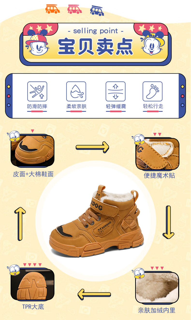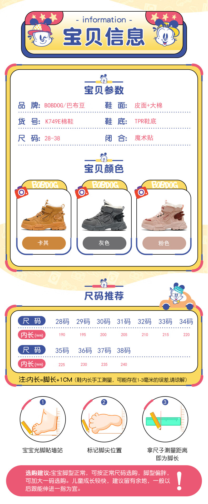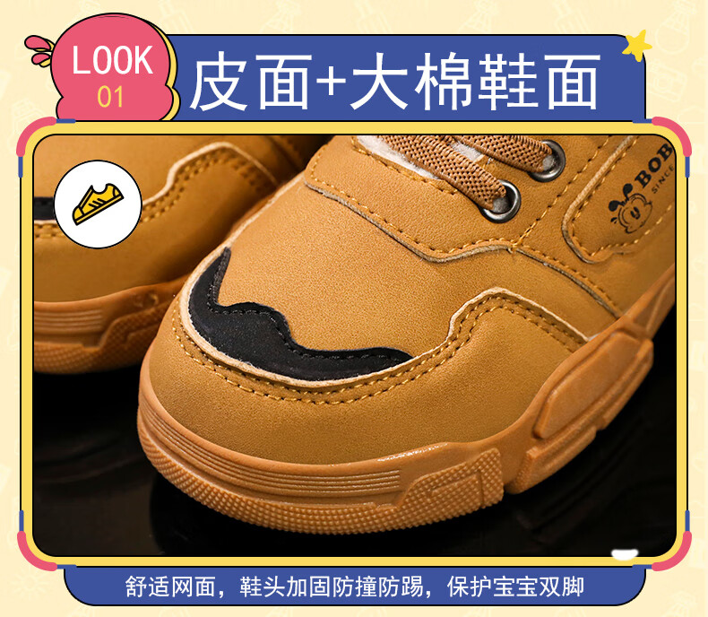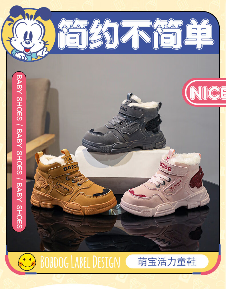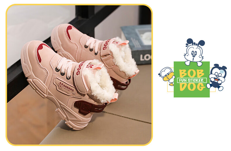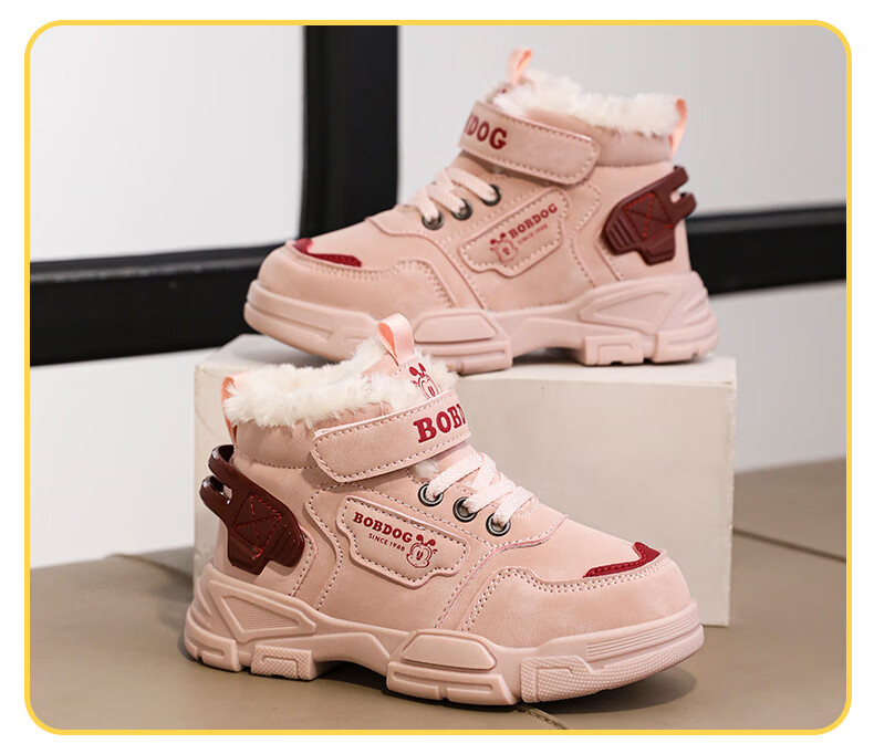 Babudou boys' large cotton shoes winter new waterproof plus velvet thickened snow boots girls' shoes warm non-slip children's Martin boots khaki color 35 yards inner length about 22.5CM