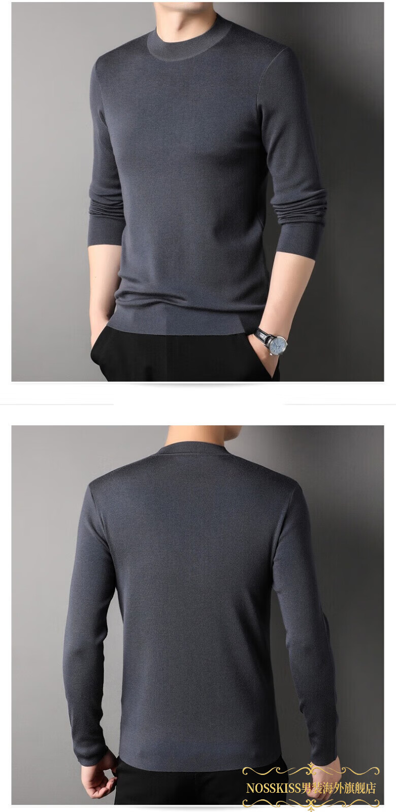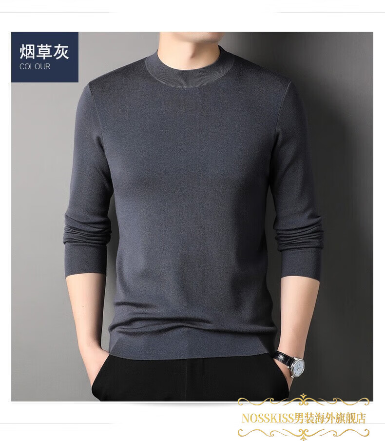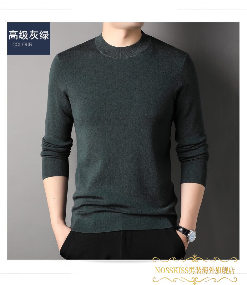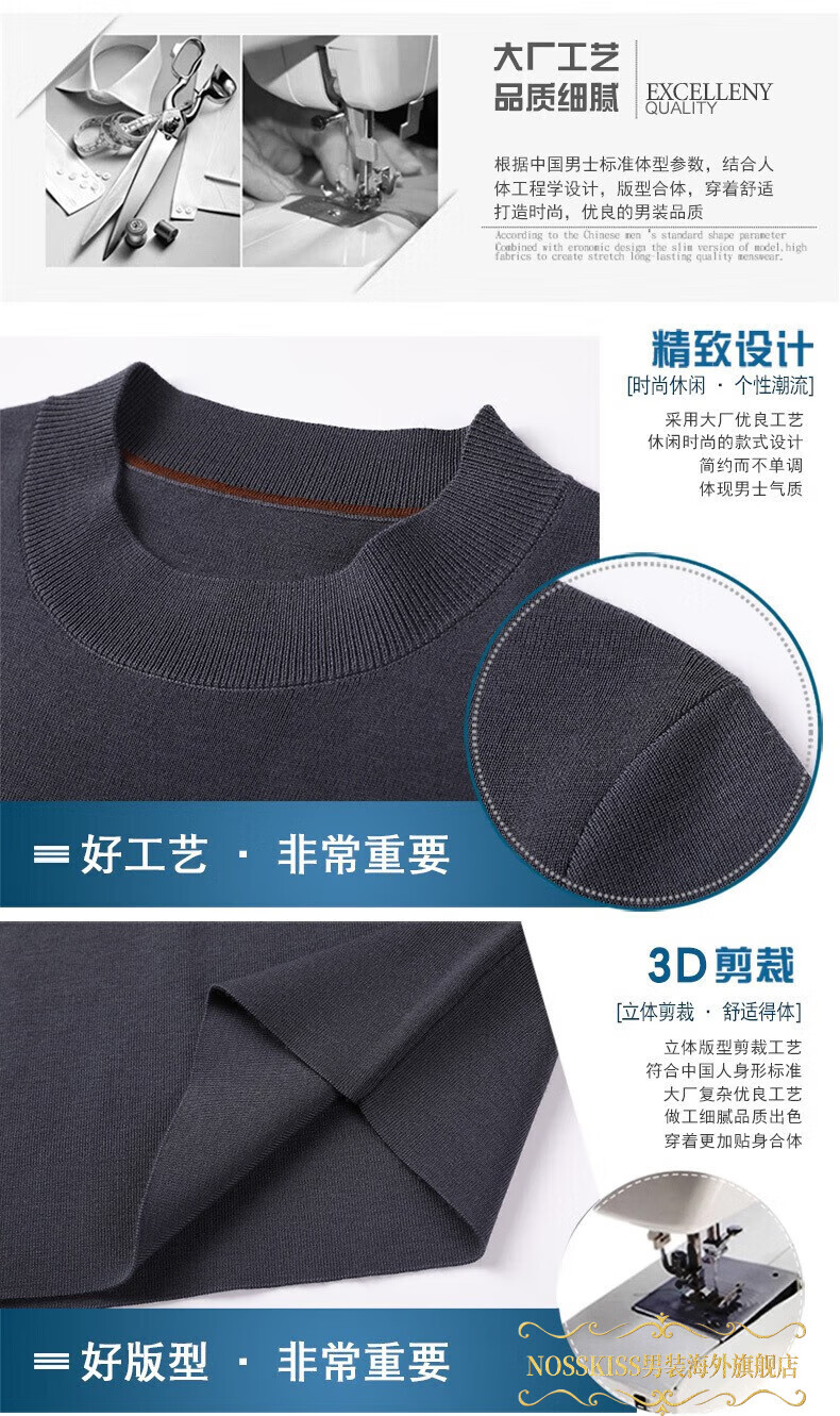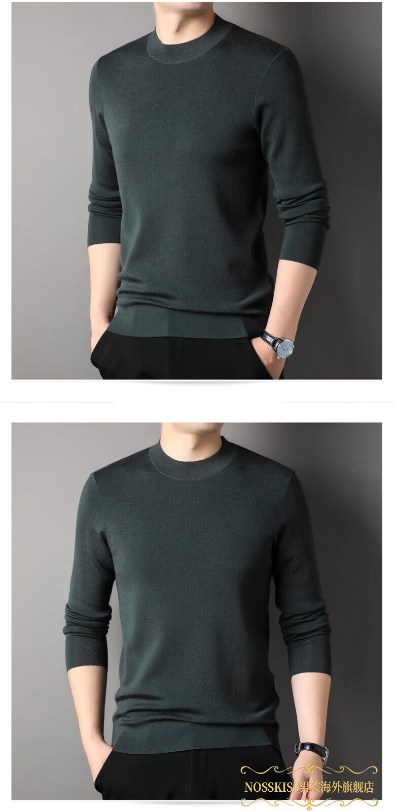 NOSSKISS luxury high-end brand men's wool sweater for men Basulan worsted pure wool autumn and winter half turtleneck sweater for men classic gray S 165