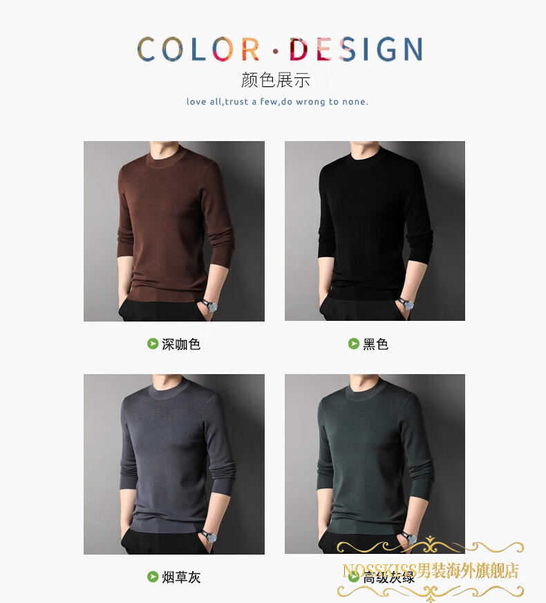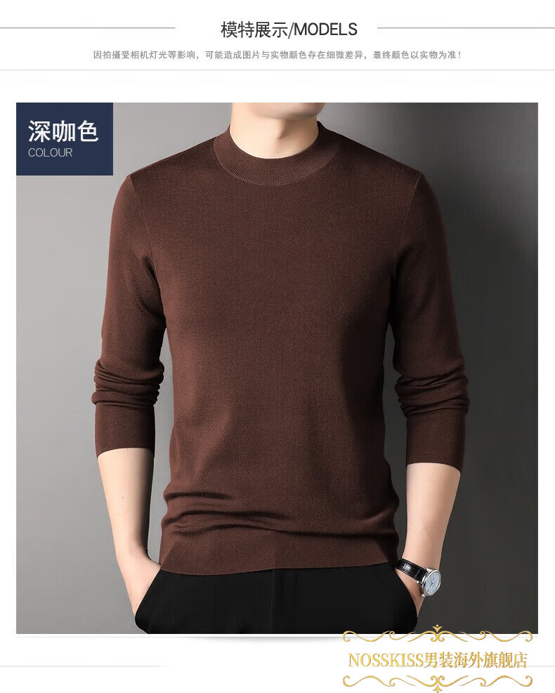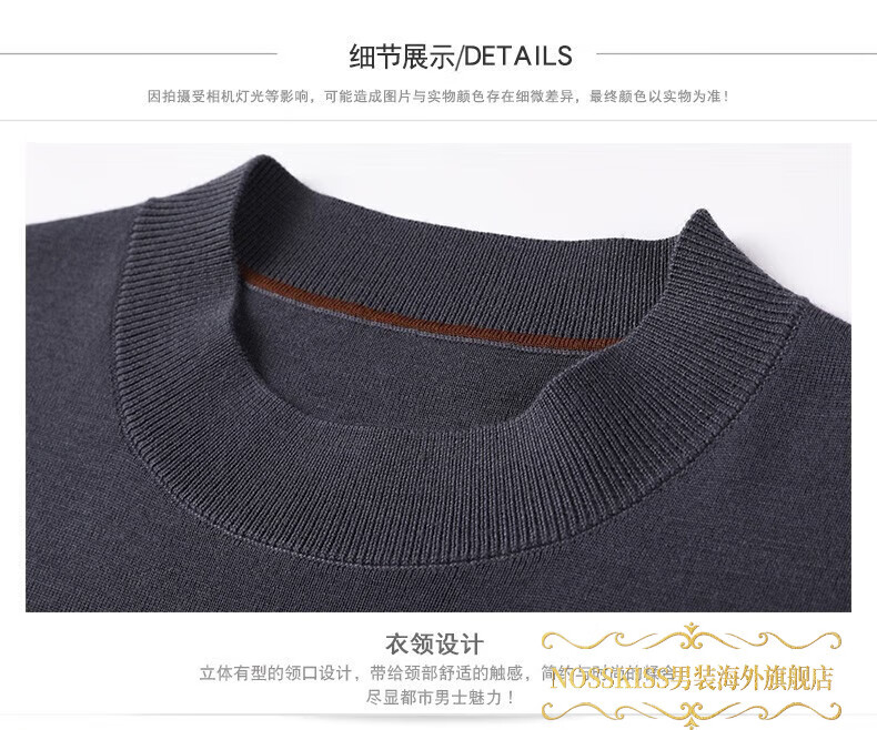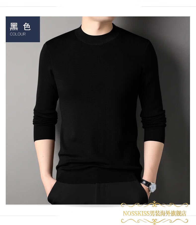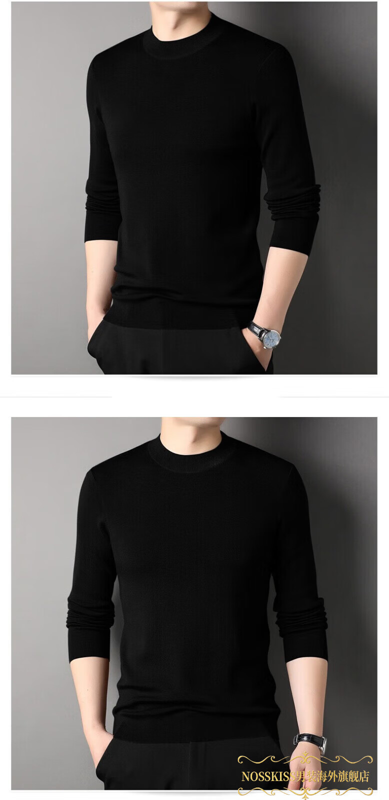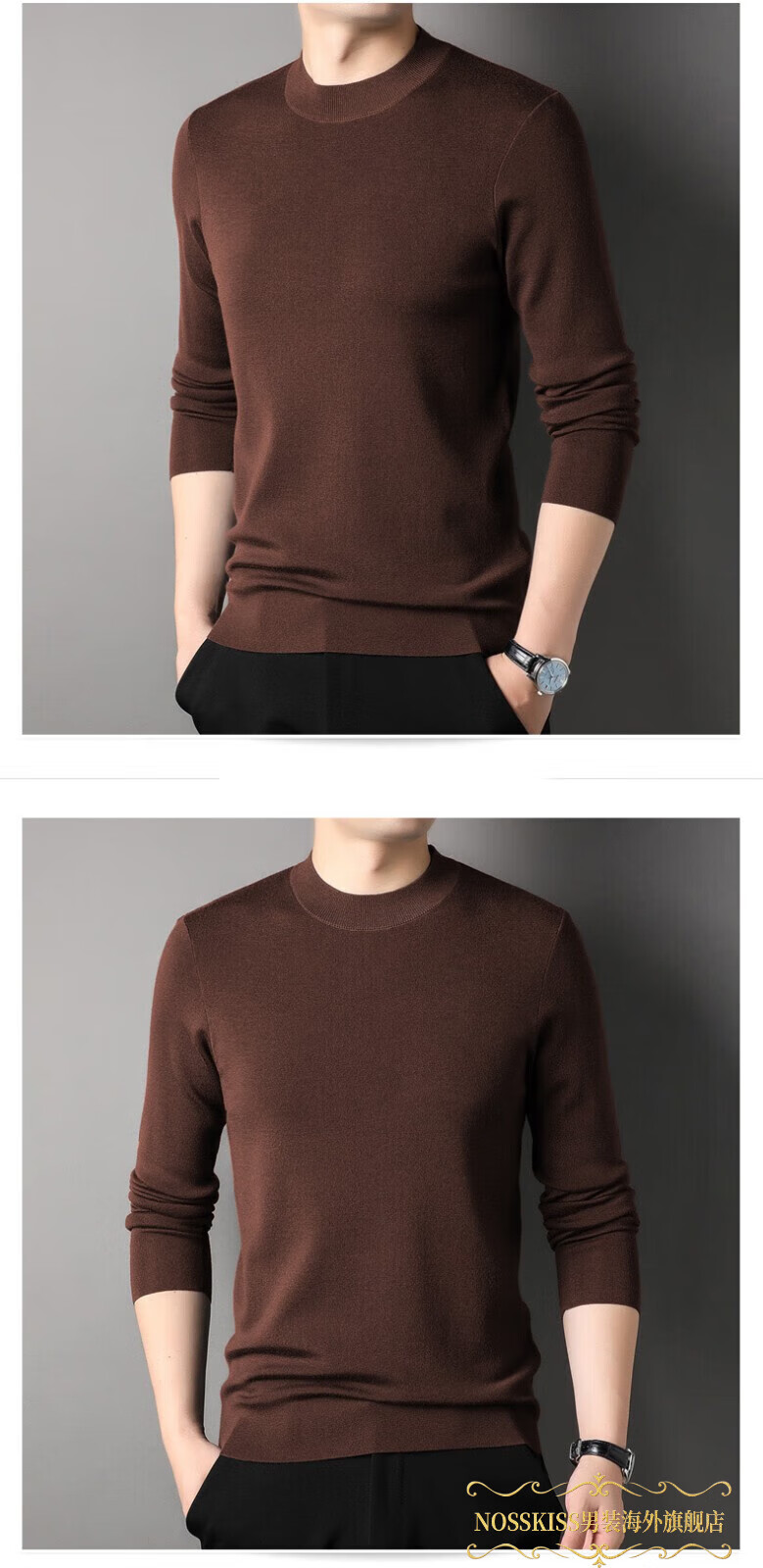 NOSSKISS luxury high-end brand men's wool sweater for men Basulan worsted pure wool autumn and winter half turtleneck sweater for men classic gray S 165