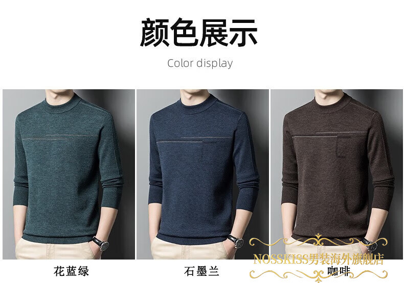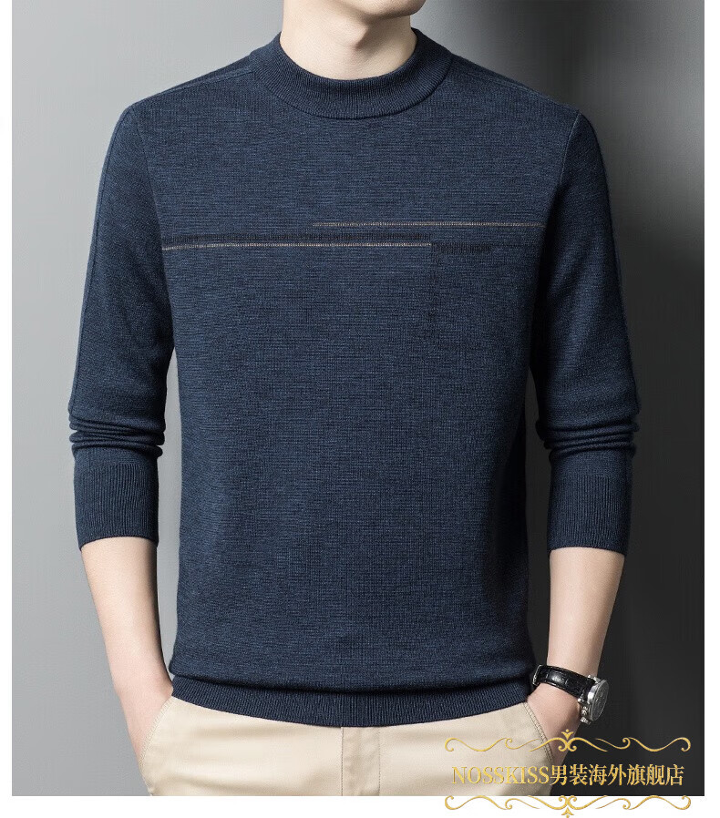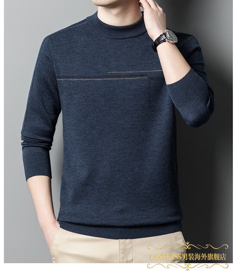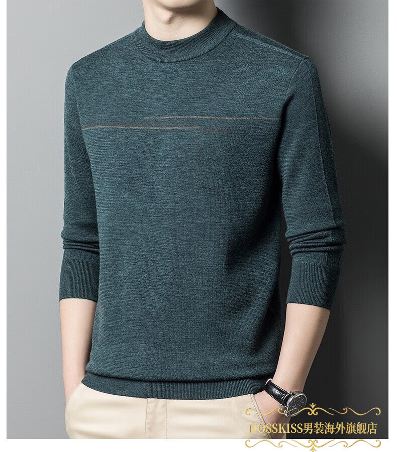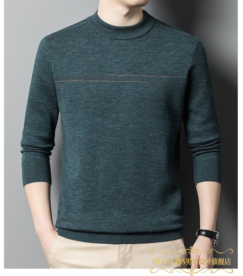 NOSSKISS luxury high-end men's brand wool sweater for middle-aged men pure wool winter thickened half turtleneck bottoming knitted sweater flower basket green L 175 (suitable for 20-140 Jin Jin equal to 0.5 kg or less)