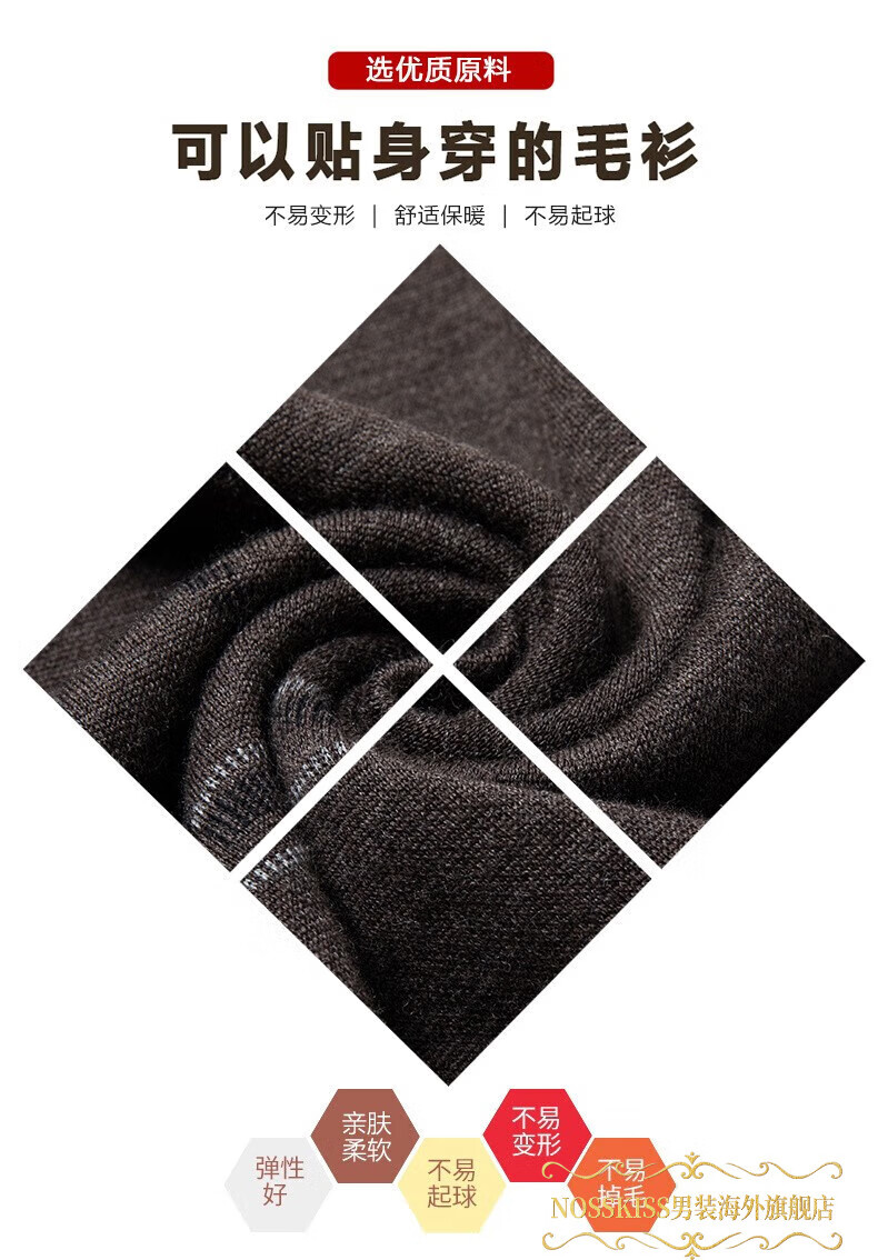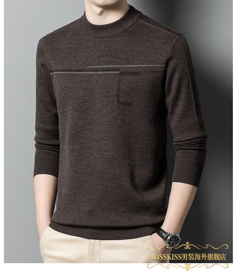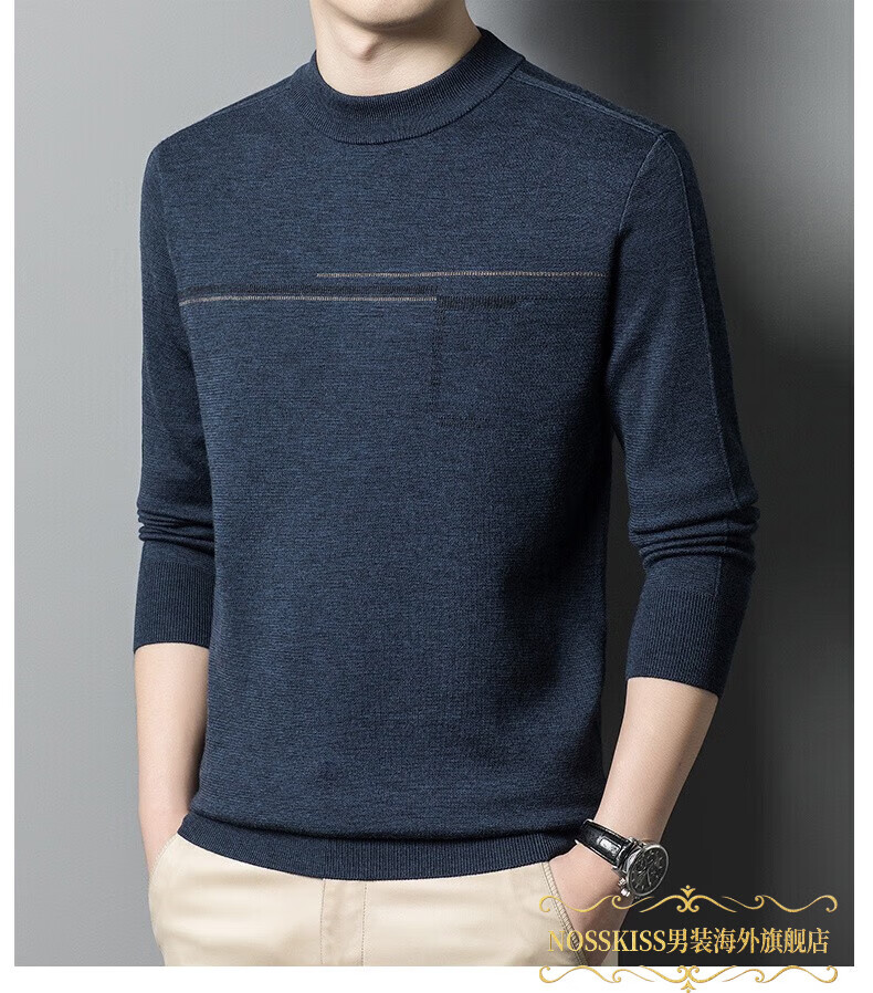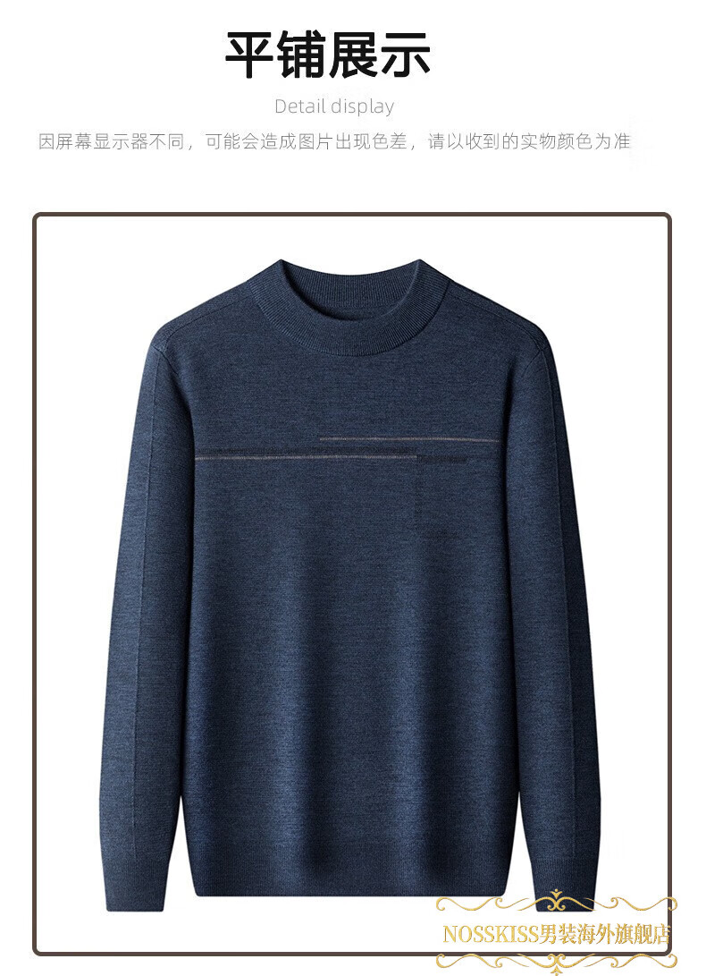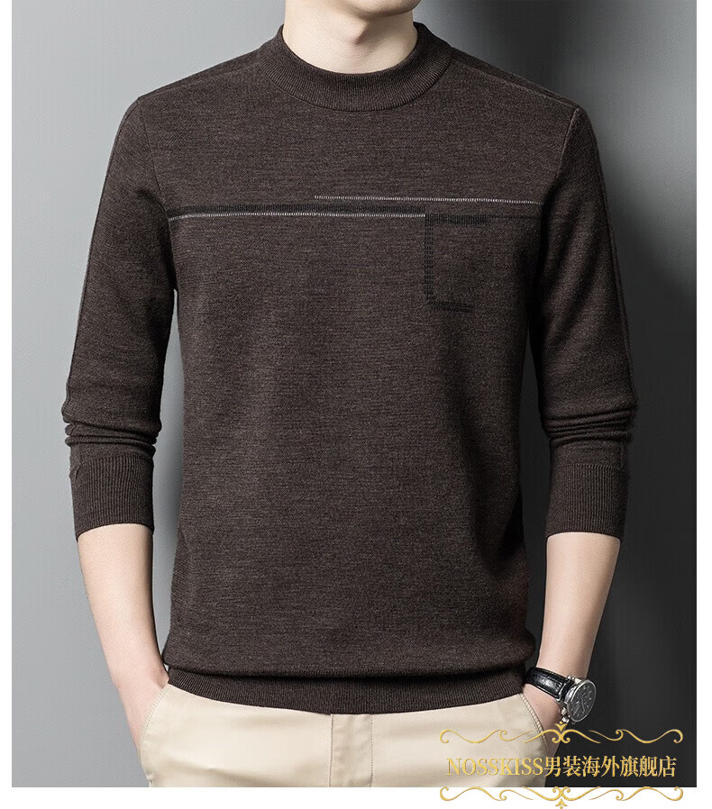 NOSSKISS luxury high-end men's brand wool sweater for middle-aged men pure wool winter thickened half turtleneck bottoming knitted sweater flower basket green L 175 (suitable for 20-140 Jin Jin equal to 0.5 kg or less)