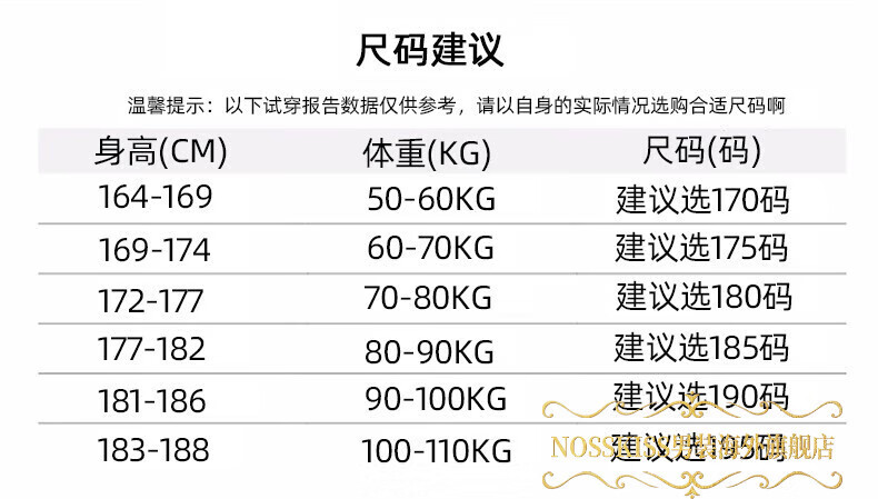 China (cm) 160-165/84-86 165-170 / 88-90 167-172 / 92-96 168-173 / 98-102 170-176 / 106-110