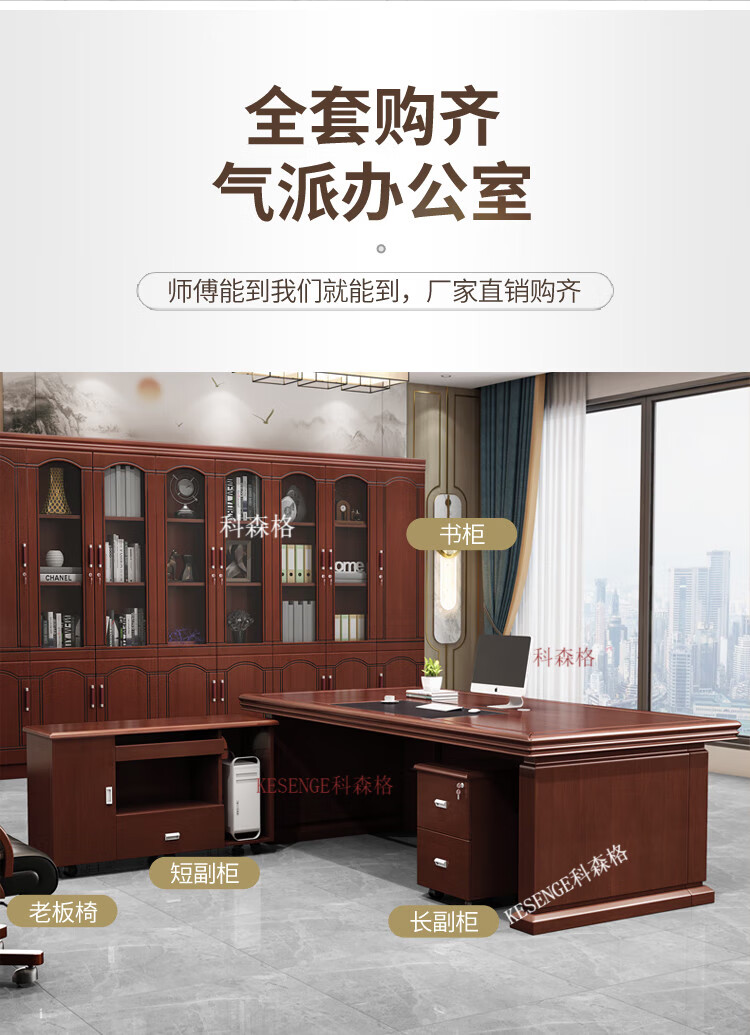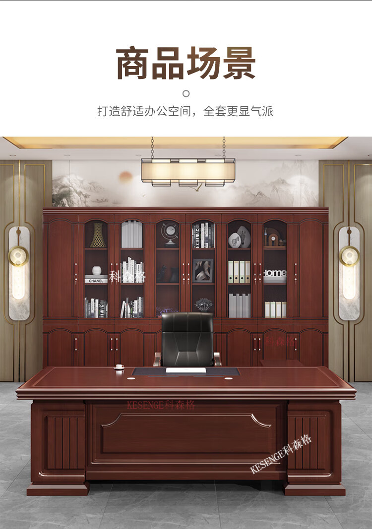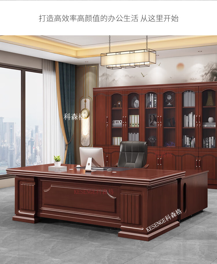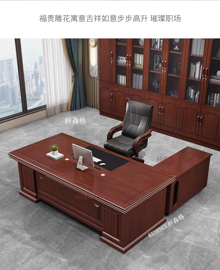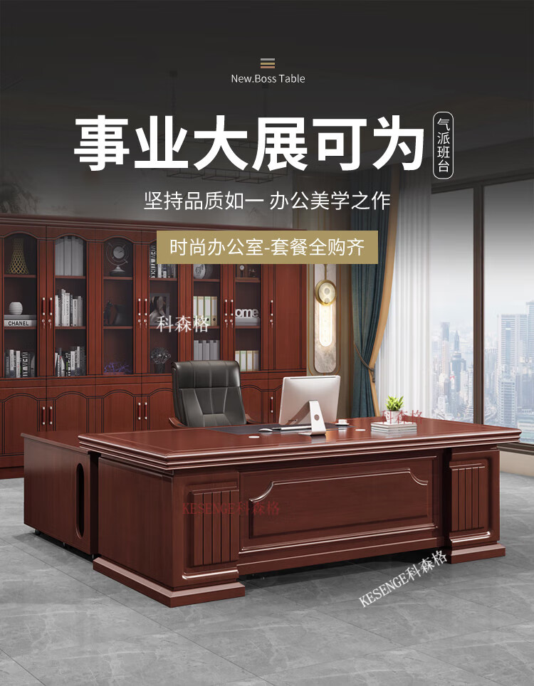 KESENGE boss desk executive desk new Chinese style executive desk executive manager desk office desk desk and chair combination single table + long auxiliary cabinet 1.8 meters
