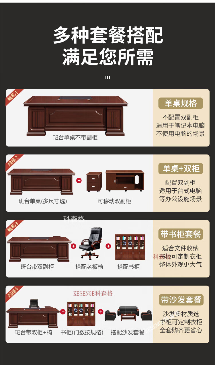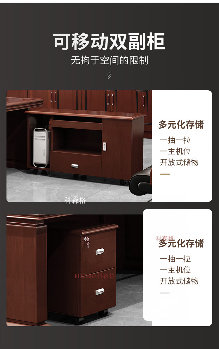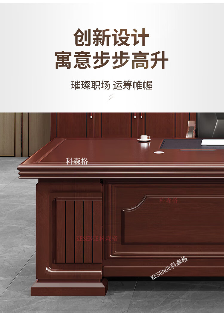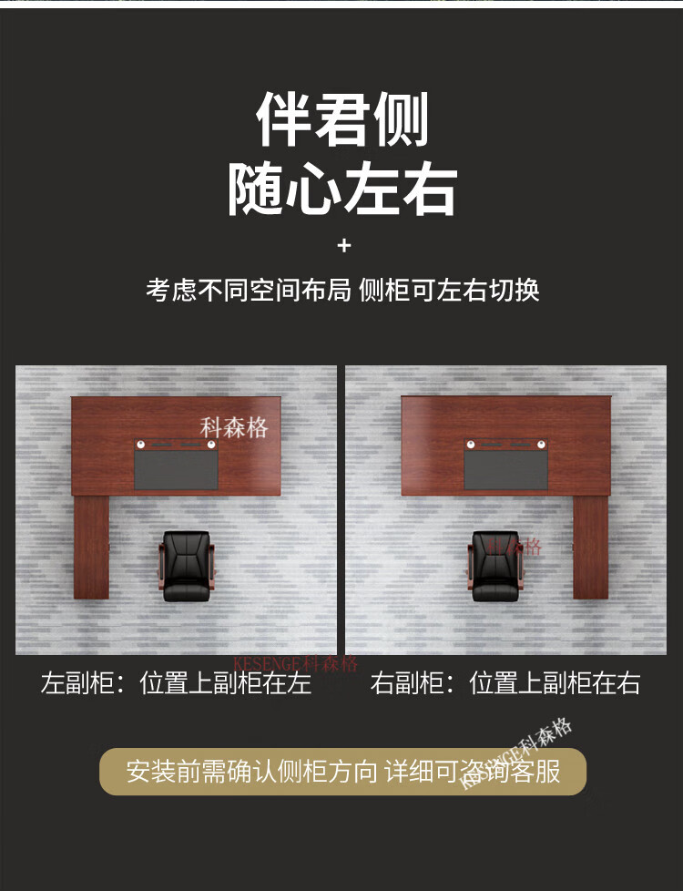 KESENGE boss desk executive desk new Chinese style executive desk executive manager desk office desk desk and chair combination single table + long auxiliary cabinet 1.8 meters