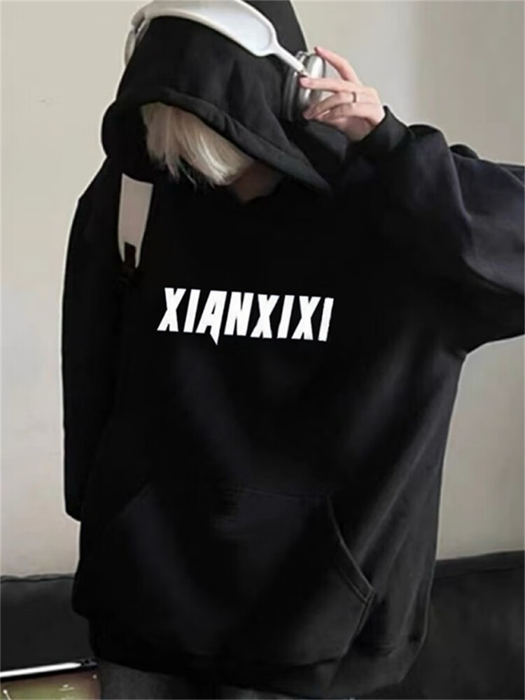 Luyal American fashion high street heavyweight hooded plus velvet sweatshirt for men in autumn and winter, loose and versatile, stiff Zhongshan jacket for men, black plus velvet 2XL