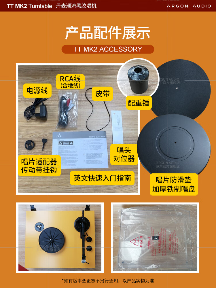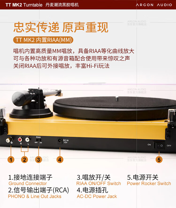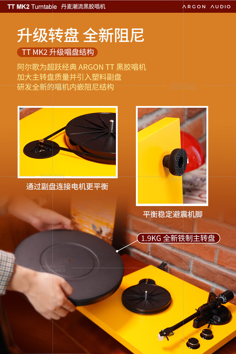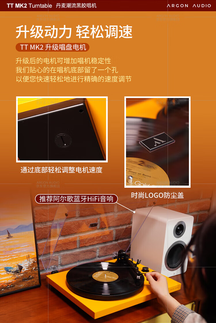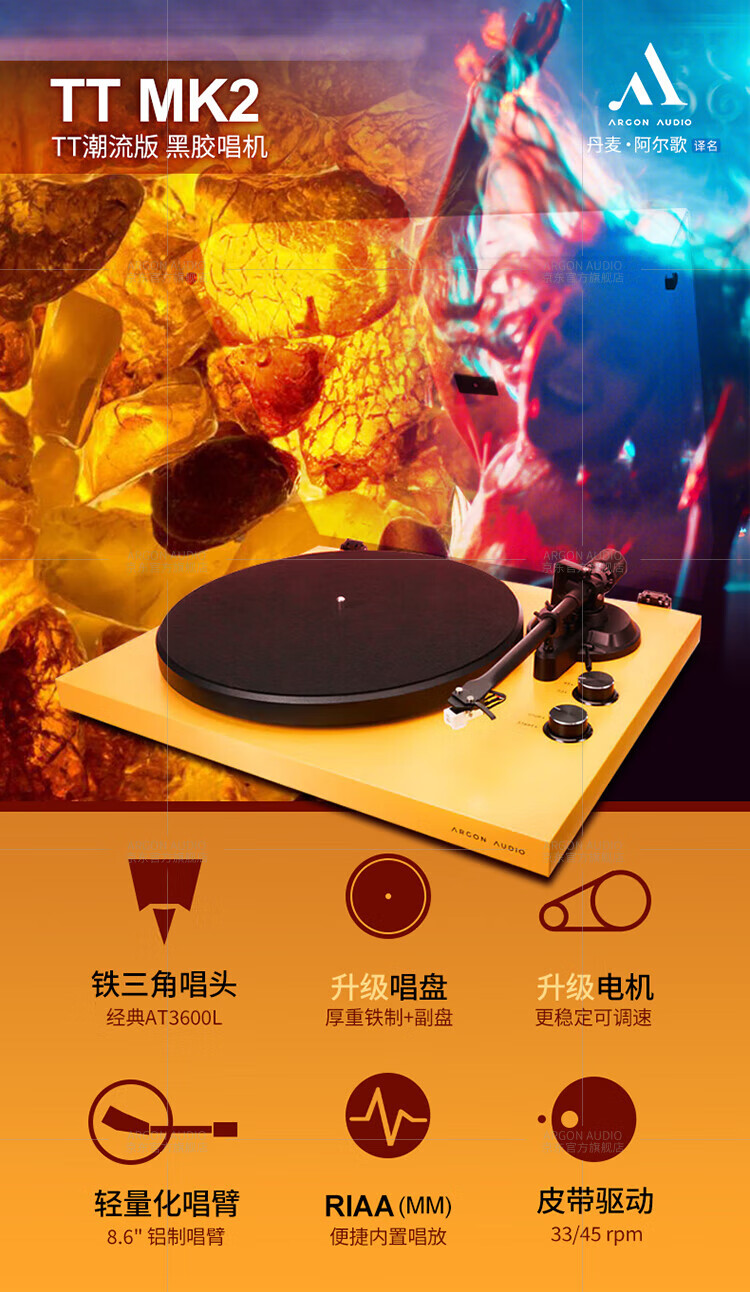 ARGON AUDIO ARGON TTMK2 vinyl record player upgraded version vinyl turntable hifi audiophile grade gramophone retro desktop electric amber (TT MK2 upgraded version)