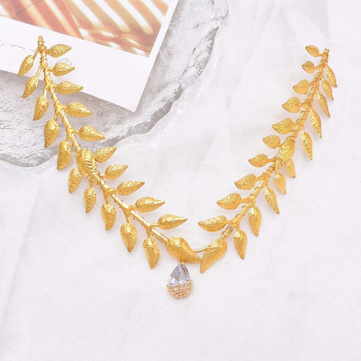 Xiangyuanchang adult gift for women 18 years old jewelry crown Western region laurel olive gold hair ornaments laurel branches and leaves princess bride suit gold