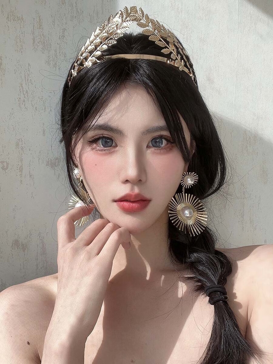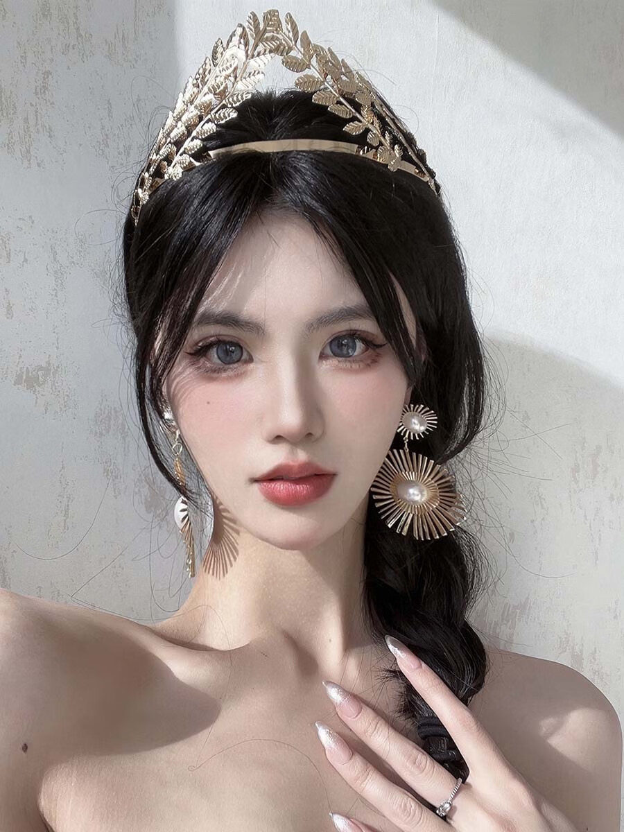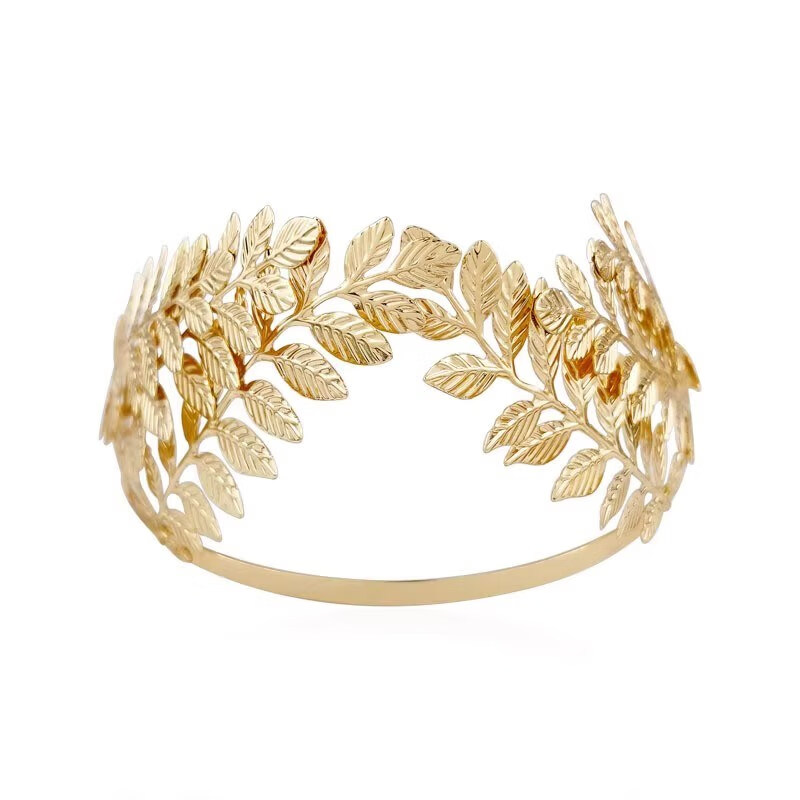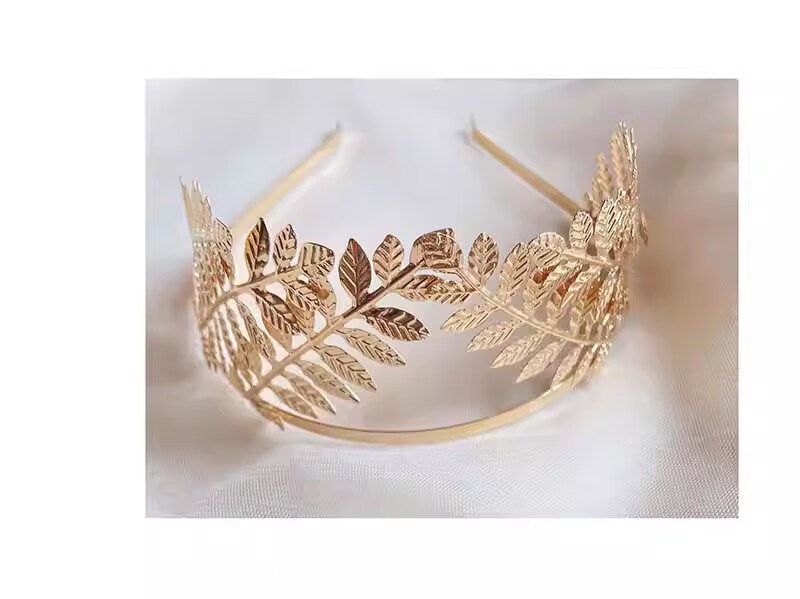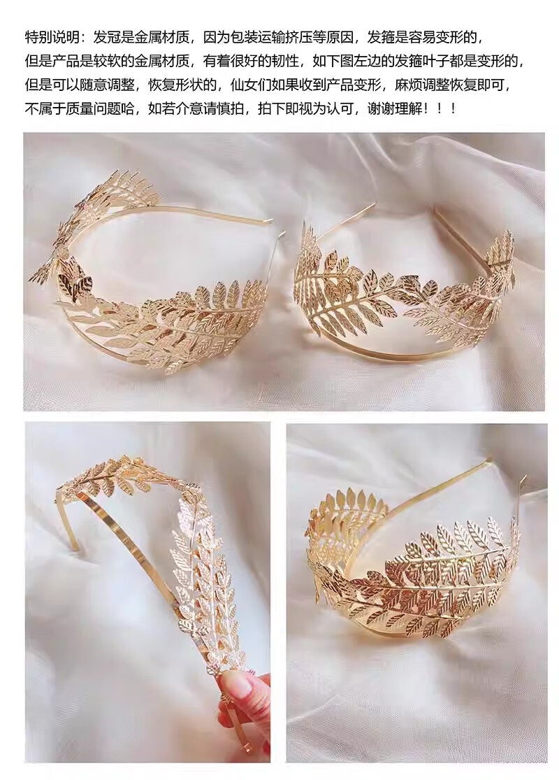 Xiangyuanchang adult gift for 18-year-old female jewelry crown Greek goddess hair accessory golden leaf crown headband forehead decoration retro golden six-leaf crown headband