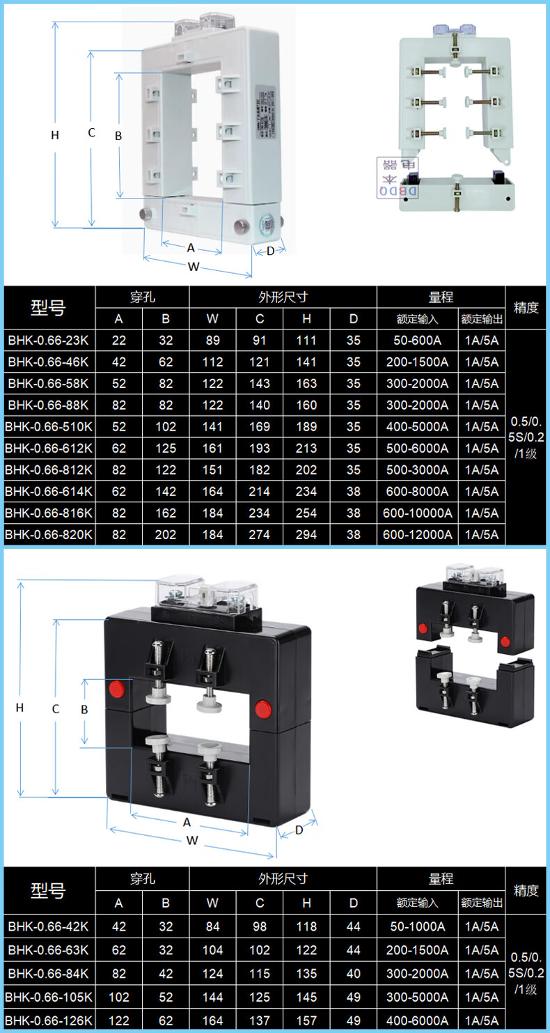 Current transformer open type opening type square hole copper bar aluminum bar DP/DB46/58/BHK-0.66 122*82mm white model 800/5A x 0.2