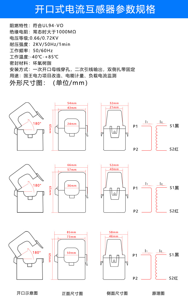 Clamp-type current transformer 24mm open sensor opening and closing 0.5 level 100/5a 200/5a single-phase perforation 400/5A (36mm aperture)