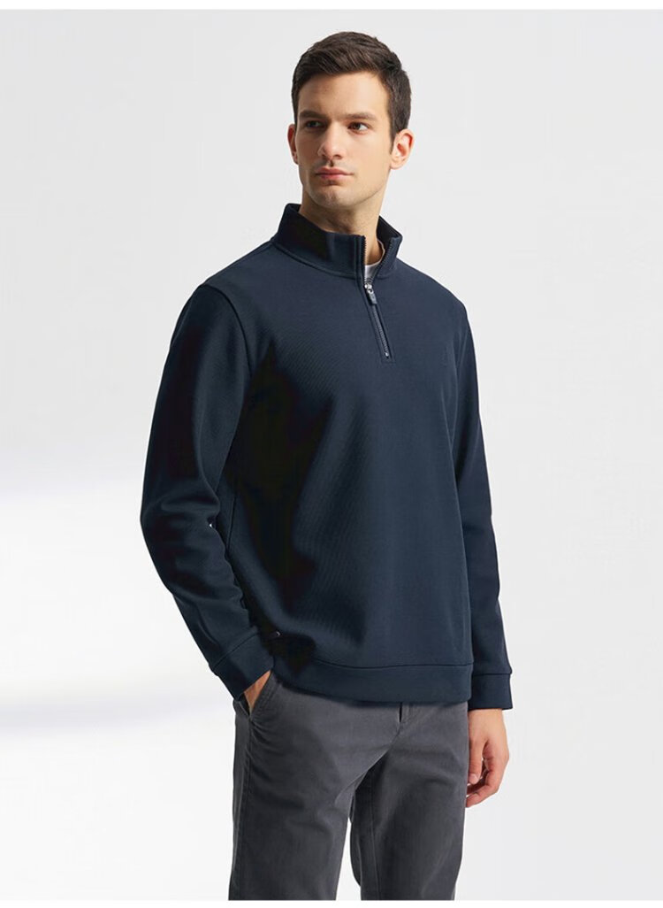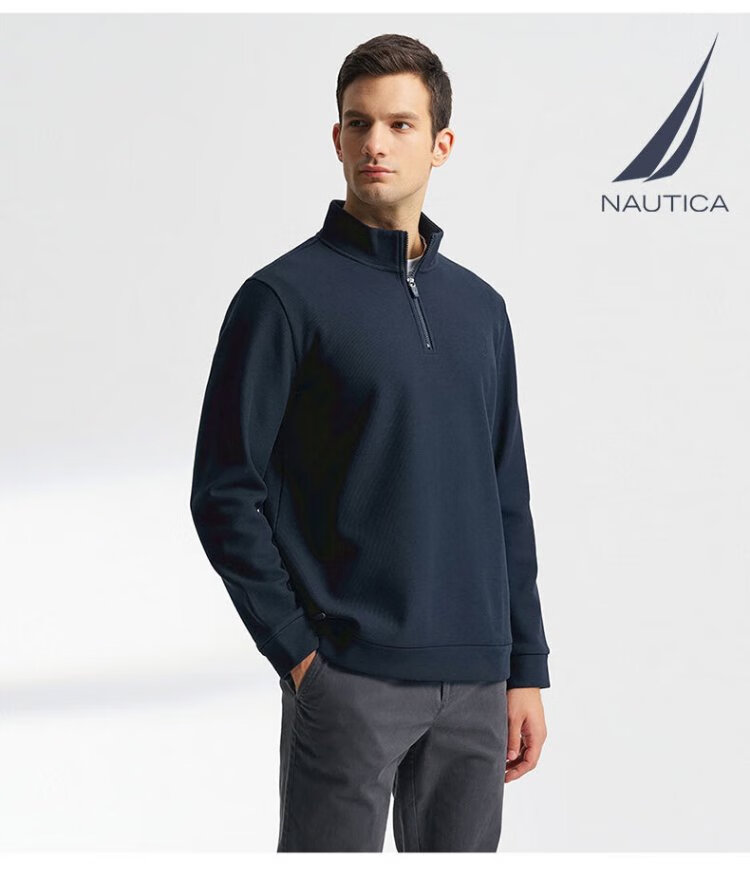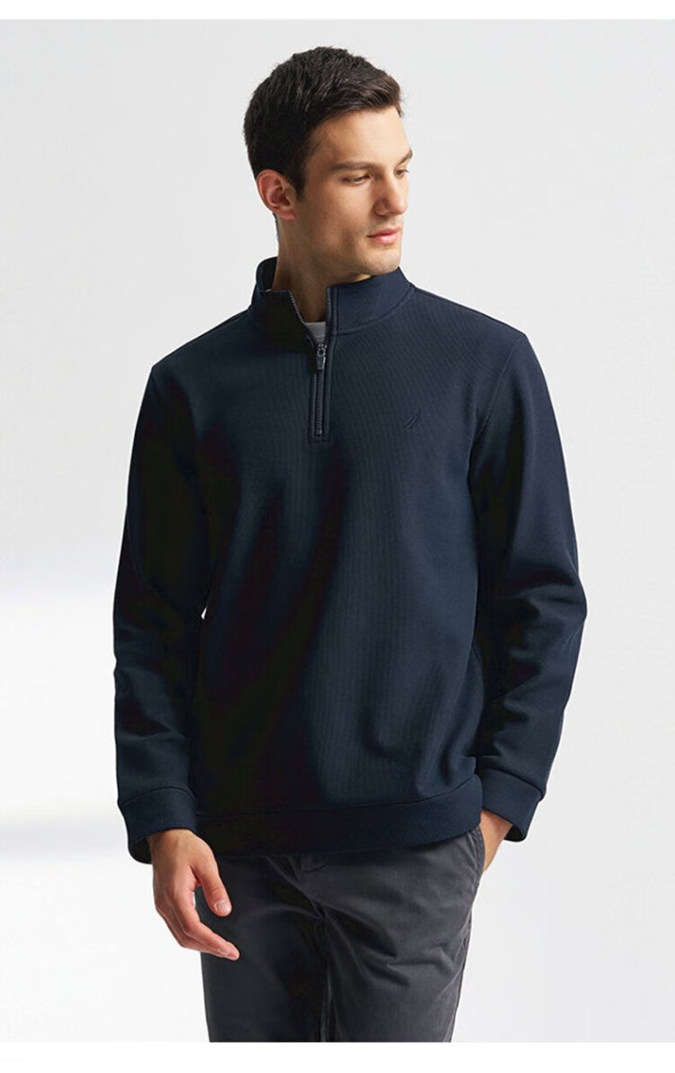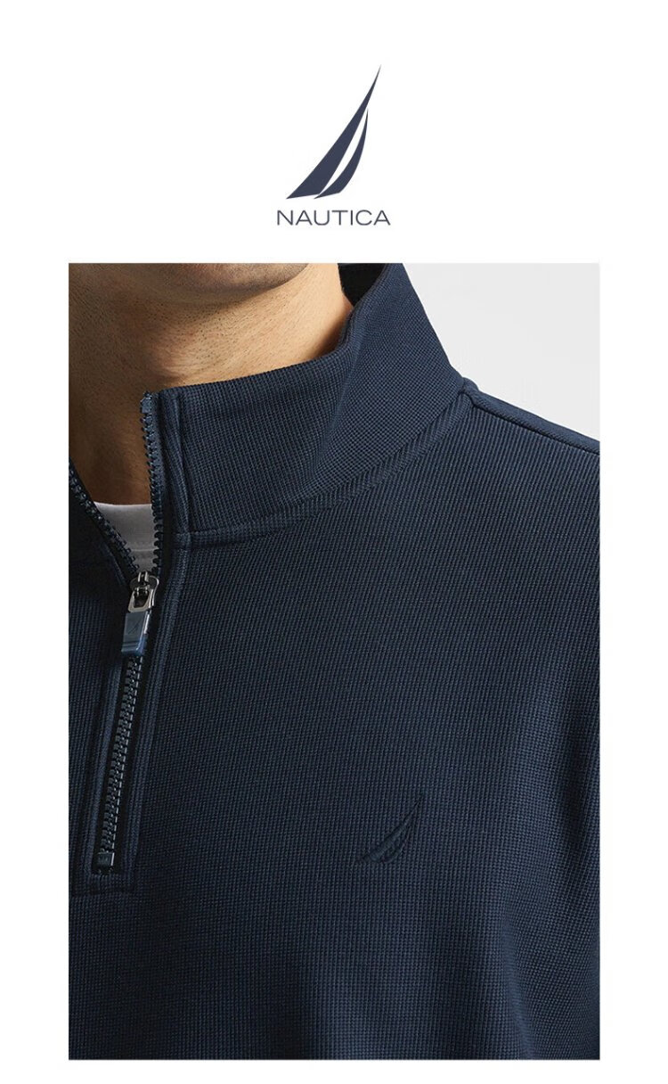 NAUTICA Shopping Mall Same Style Spring and Autumn New Waffle Stand Collar Half-Zip POLO Shirt for Men KO4405 Navy Blue 4NV 2XL
