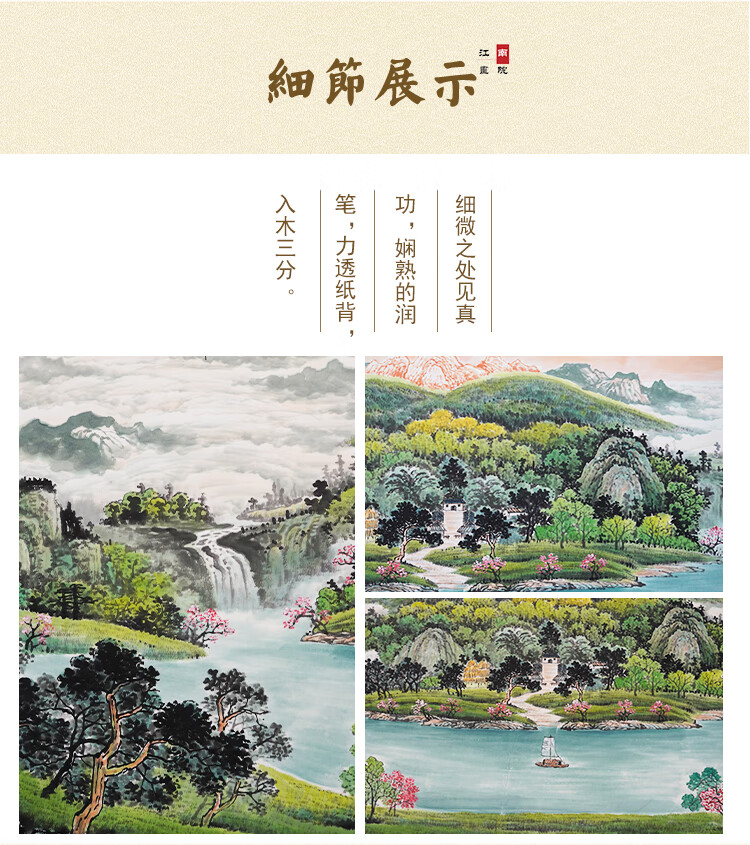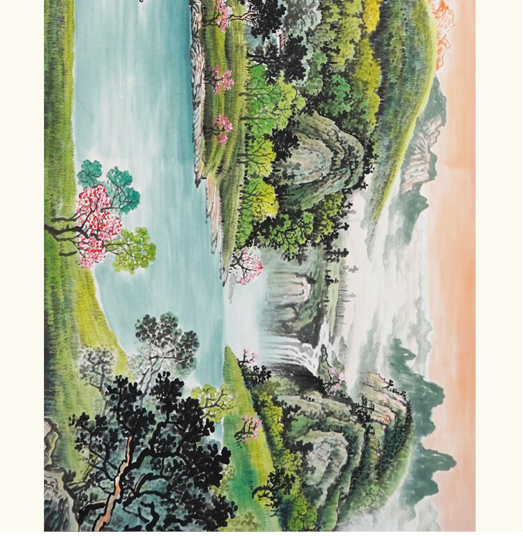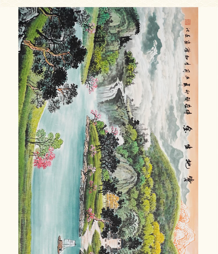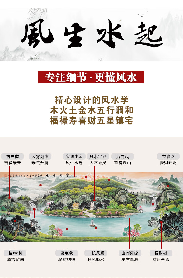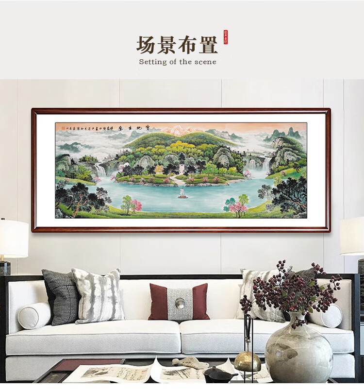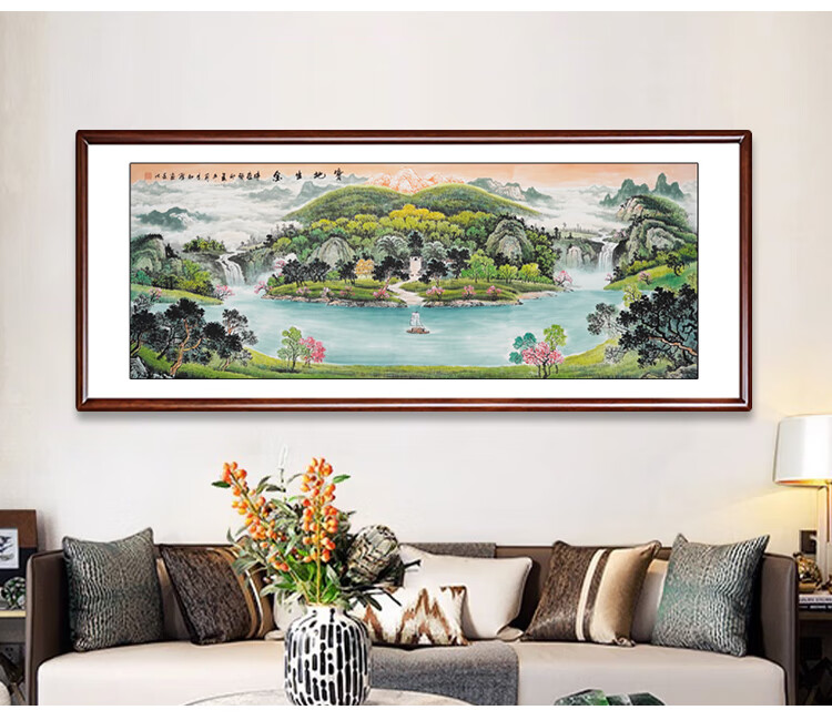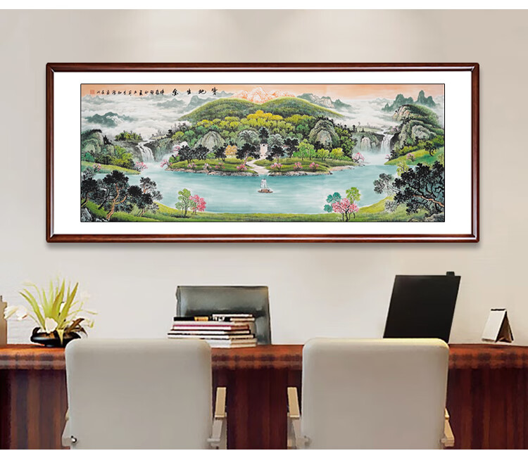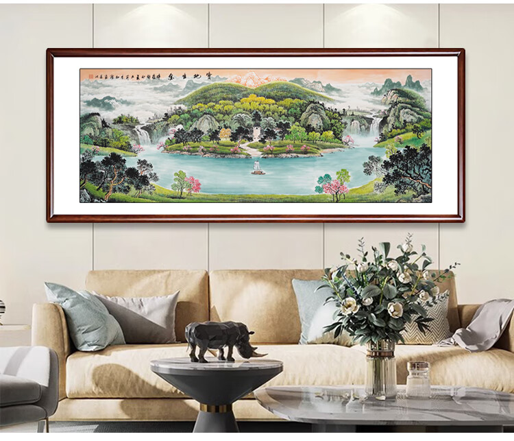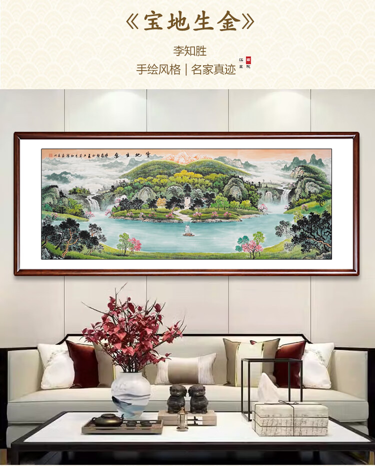 Baodi Shengjin Cornucopia Landscape Painting Hand-painted Chinese Painting Feng Shui Backer Office Living Room Ink Painting West Wall Hanging Painting Teak Color Frame Solid Wood with Organic Glass Four Feet (Framed 165cm*85cm)