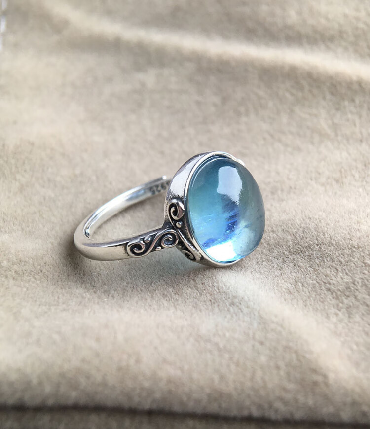 Libiao natural aquamarine ring live ring silver jewelry 925 ice blue women's/men's inlay 1026