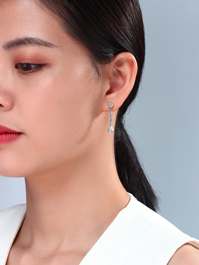 Libiao Musi long aquamarine tanzanite earrings 925 silver earrings natural gemstone water drop temperament versatile earring gift