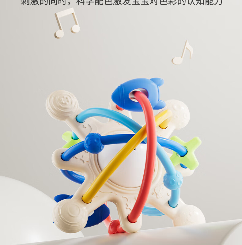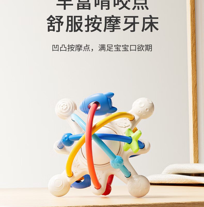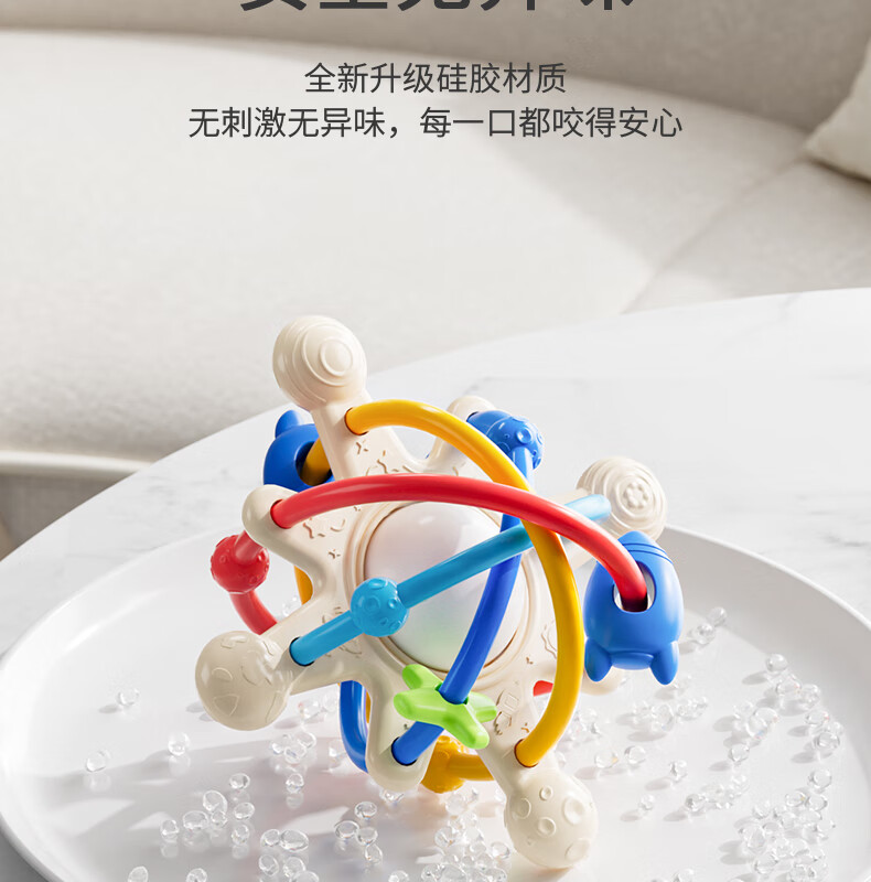 YouRentang Yingshi Manhattan hand ball baby silicone chewable toy molar stick teether baby molar baby chewing gum color perception dustproof non-stick hair rattle soothing