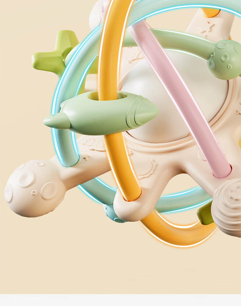 Yourentang Ying's Manhattan hand ball baby silicone teether molar stick baby chew toy anti-eating hand bite artifact silicone Manhattan rattle comfort teether dust-proof