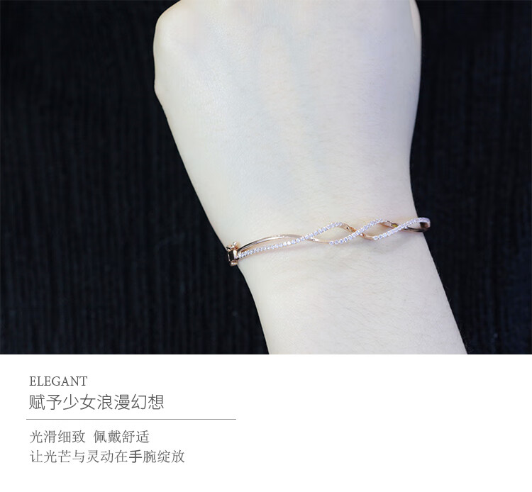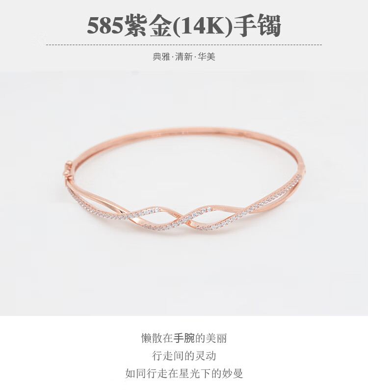 Libiao Russian 585 purple gold bracelet for women rose gold inlaid with zircon wavy bracelet hard gold 14 gold 56 mouth bracelet