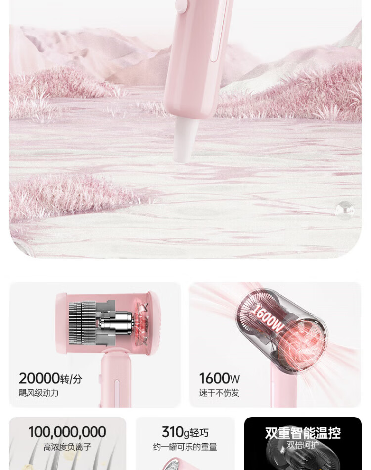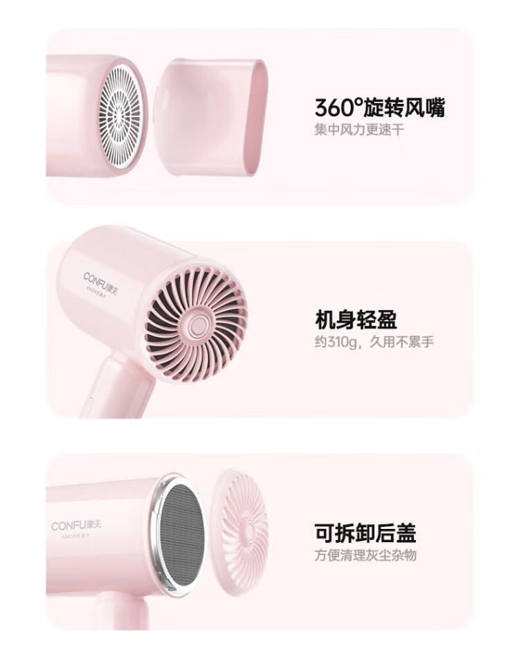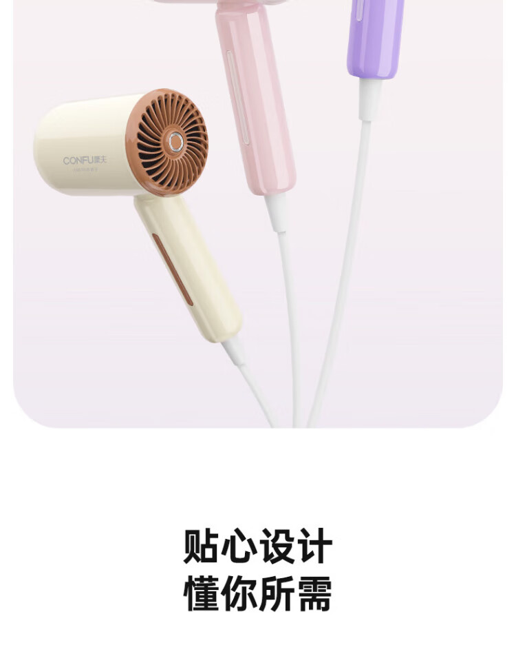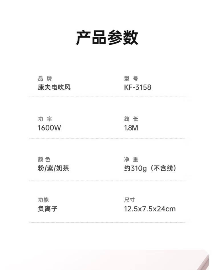 Kangfu hair dryer household negative ion high power hot and cold wind strong wind quick drying hair dryer hair dryer for boys and girls travel dormitory KF-3158 1600W Purple