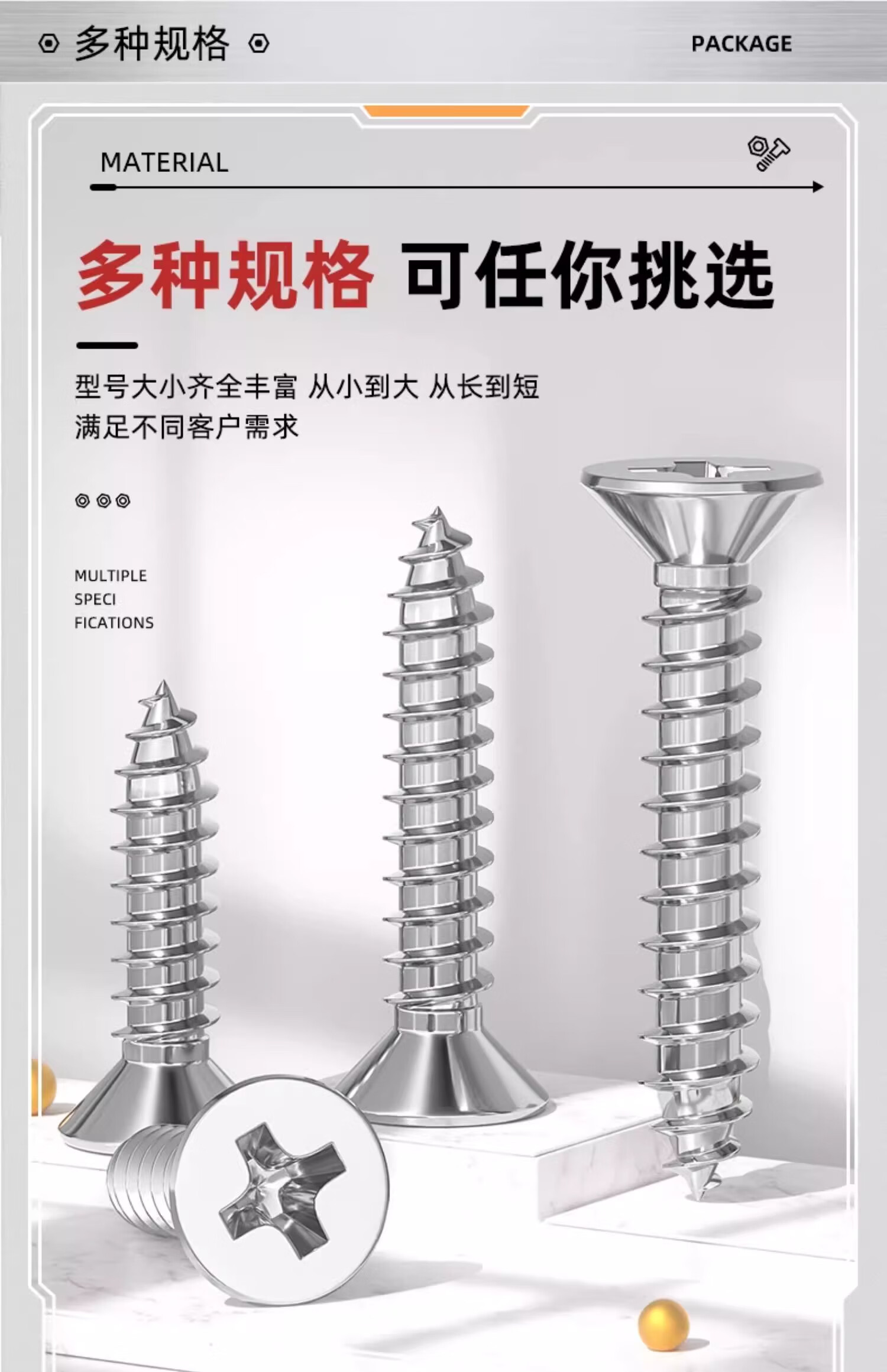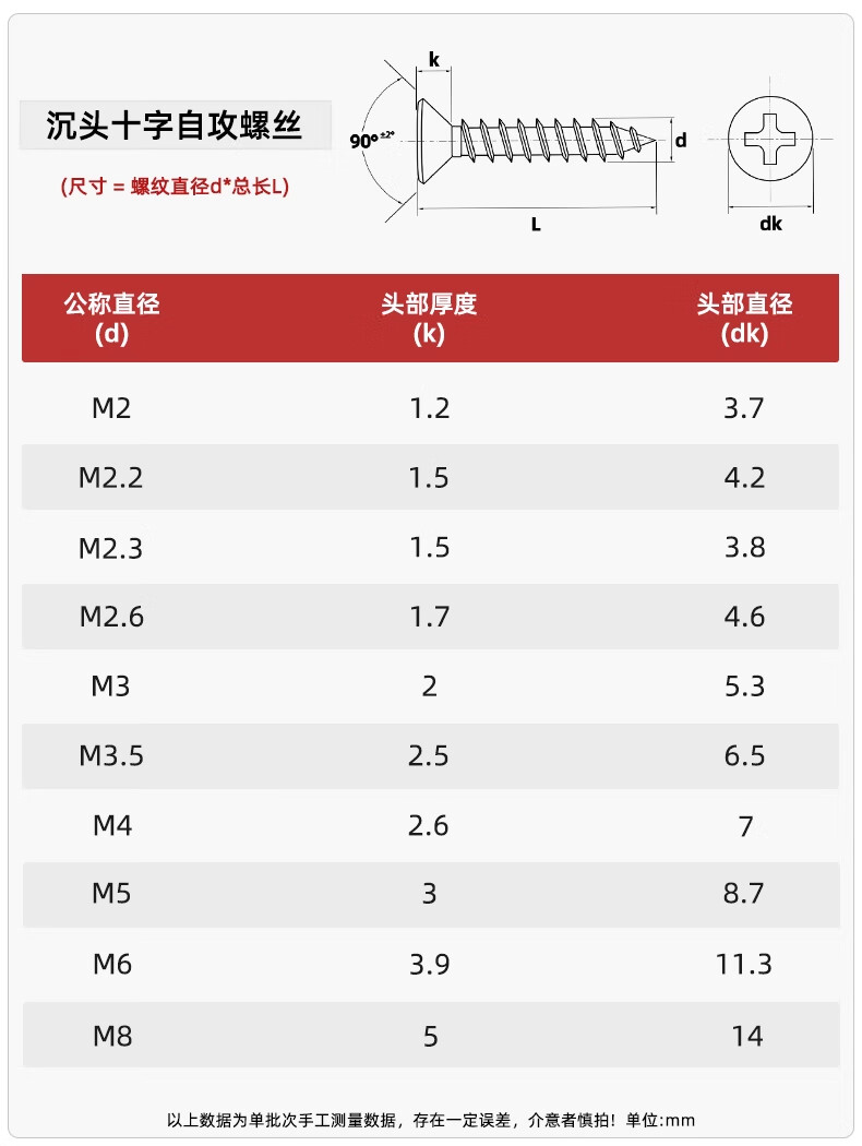 Tianzhuo Hardware National Standard 316 stainless steel cross countersunk head self-tapping screws extended flat head pointed tail wood screws M2M3M4M5M6mm M4*40- 5 pcs