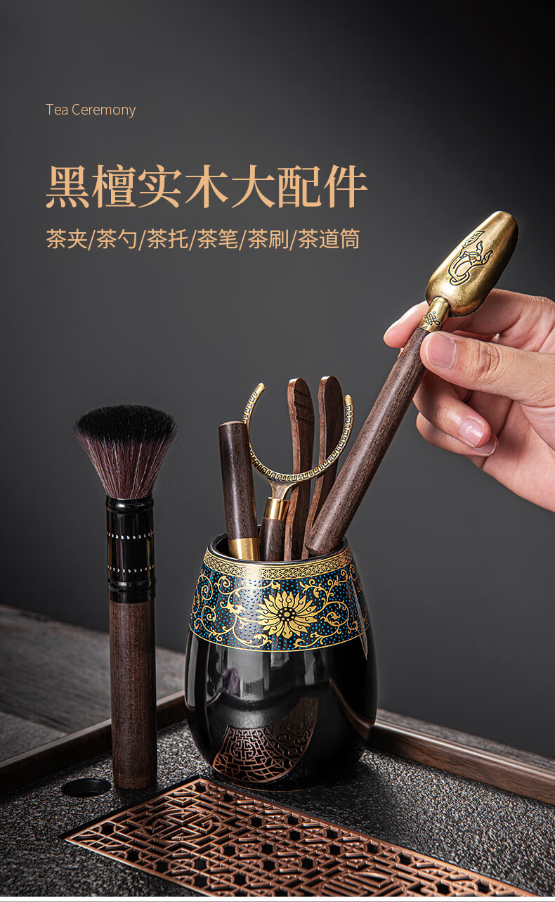 Xiangye 2025 New Anti-scalding Lazy Automatic Tea Set Household Rotating Stone Mill Teapot Kung Fu Tea Cup Tea Making Artifact Wrapped Lotus Branch Automatic Straight Cup Six-Cup 9-piece Set