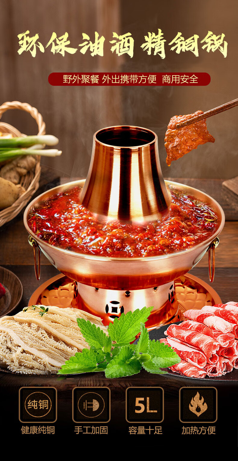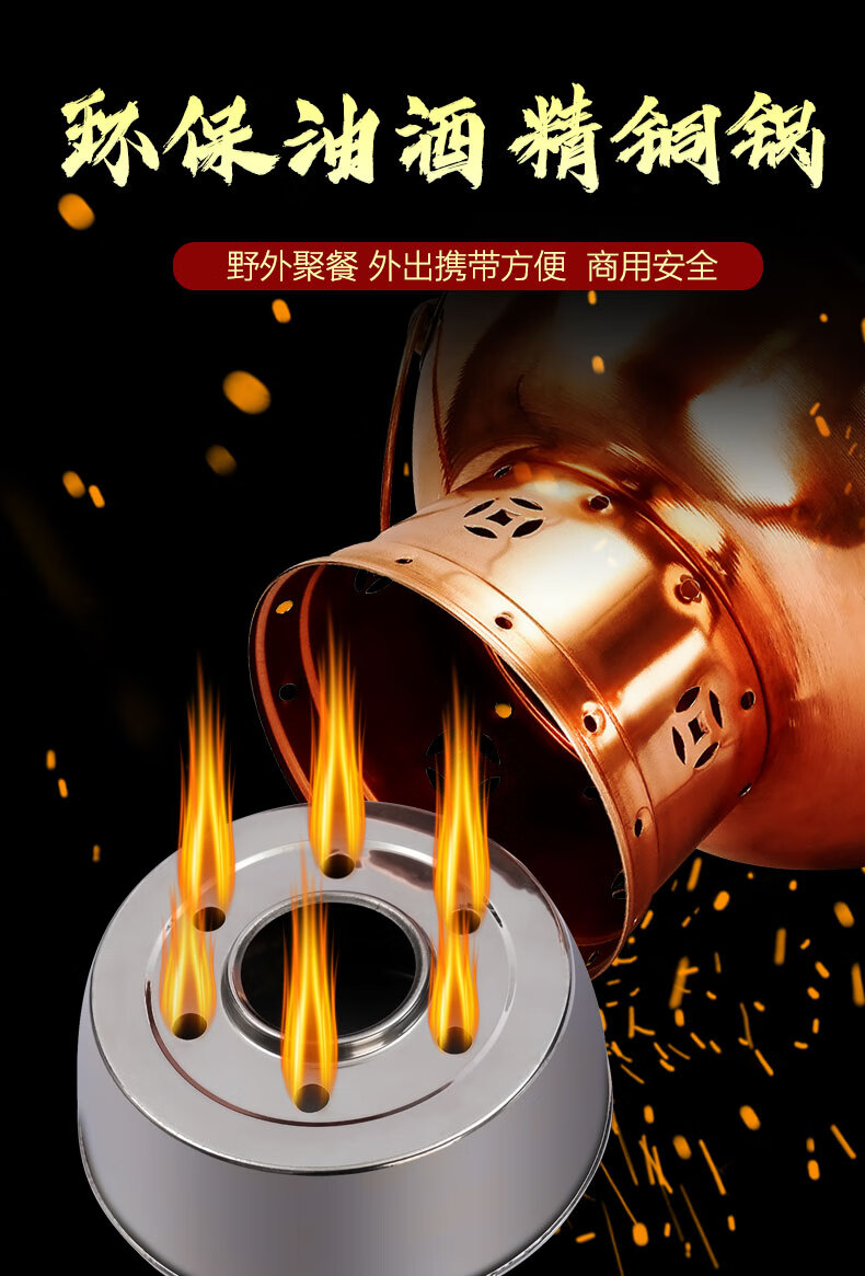 CHUILAOYE copper hot pot Yuanyang pot environmentally friendly oil hot pot alcohol stove household commercial pure copper old-fashioned Beijing meat-shabu copper pot special environmentally friendly oil Yuanyang pot 6-8 people 34cm