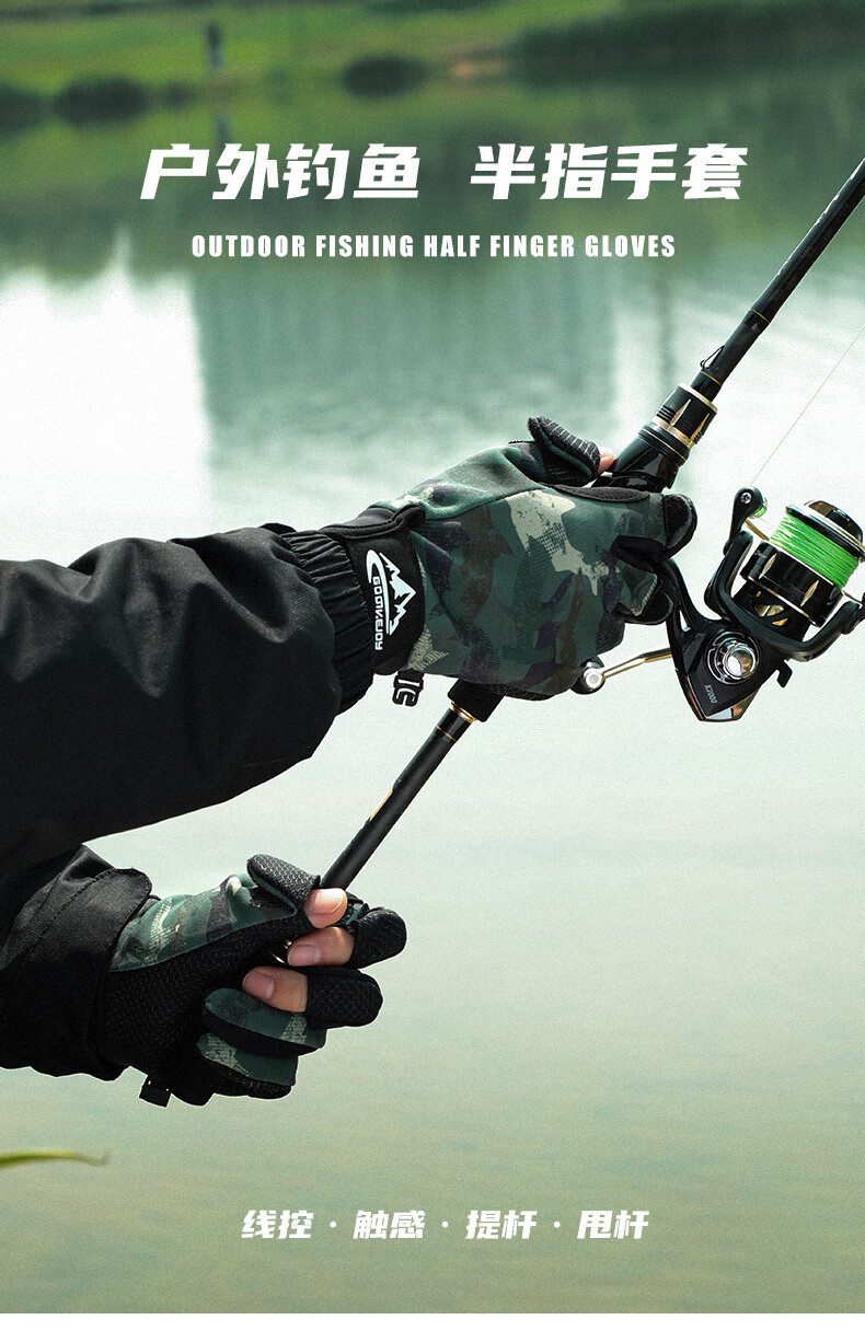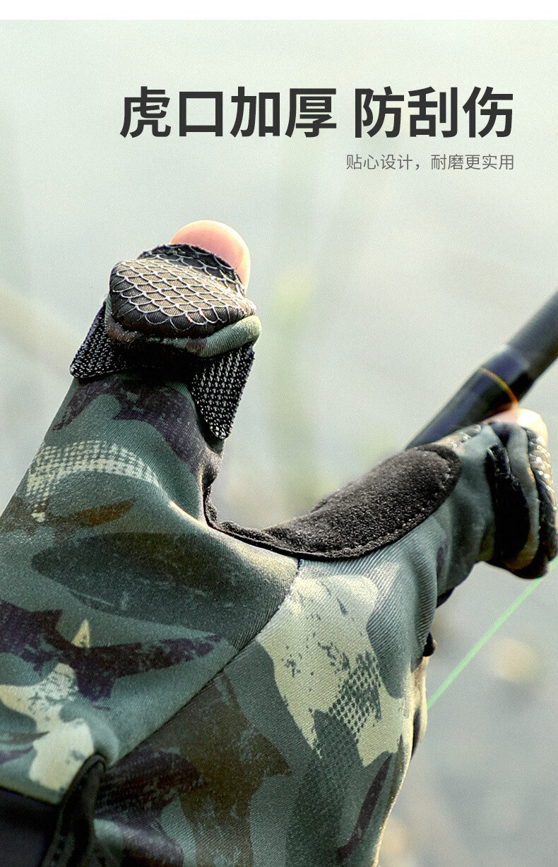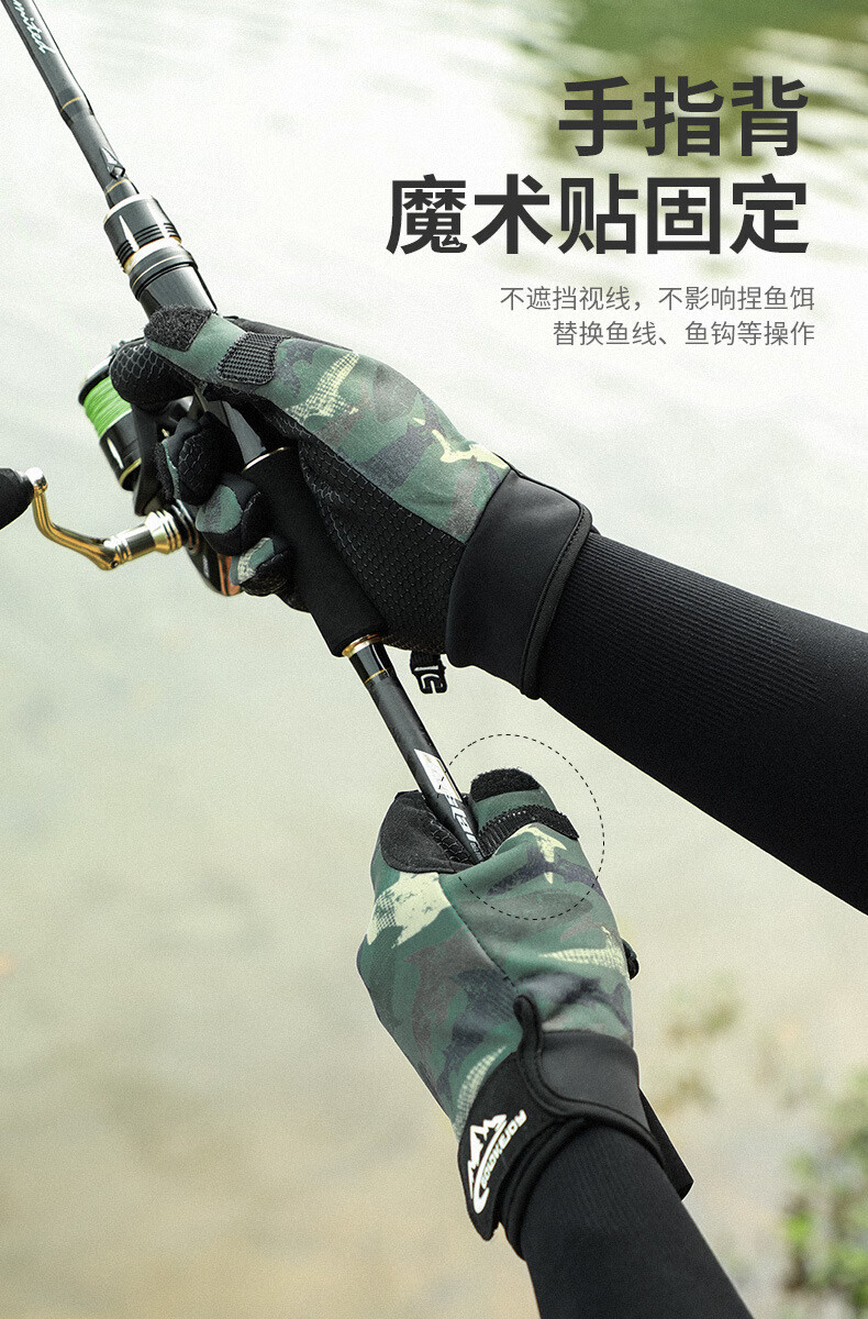 JAENS fishing gloves for men in winter, professional fly fishing lures with three fingers exposed, warm in winter, anti-thorn and anti-slip, Green Shark Trail, three fingers exposed, palm anti-slip, one size fits all
