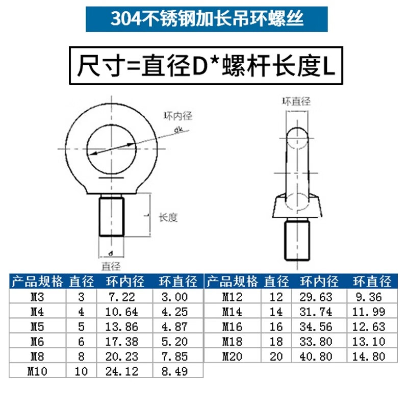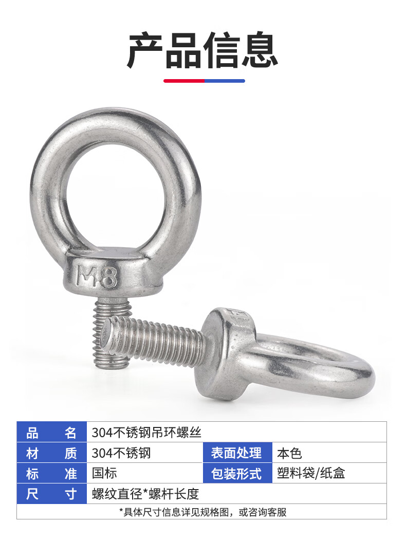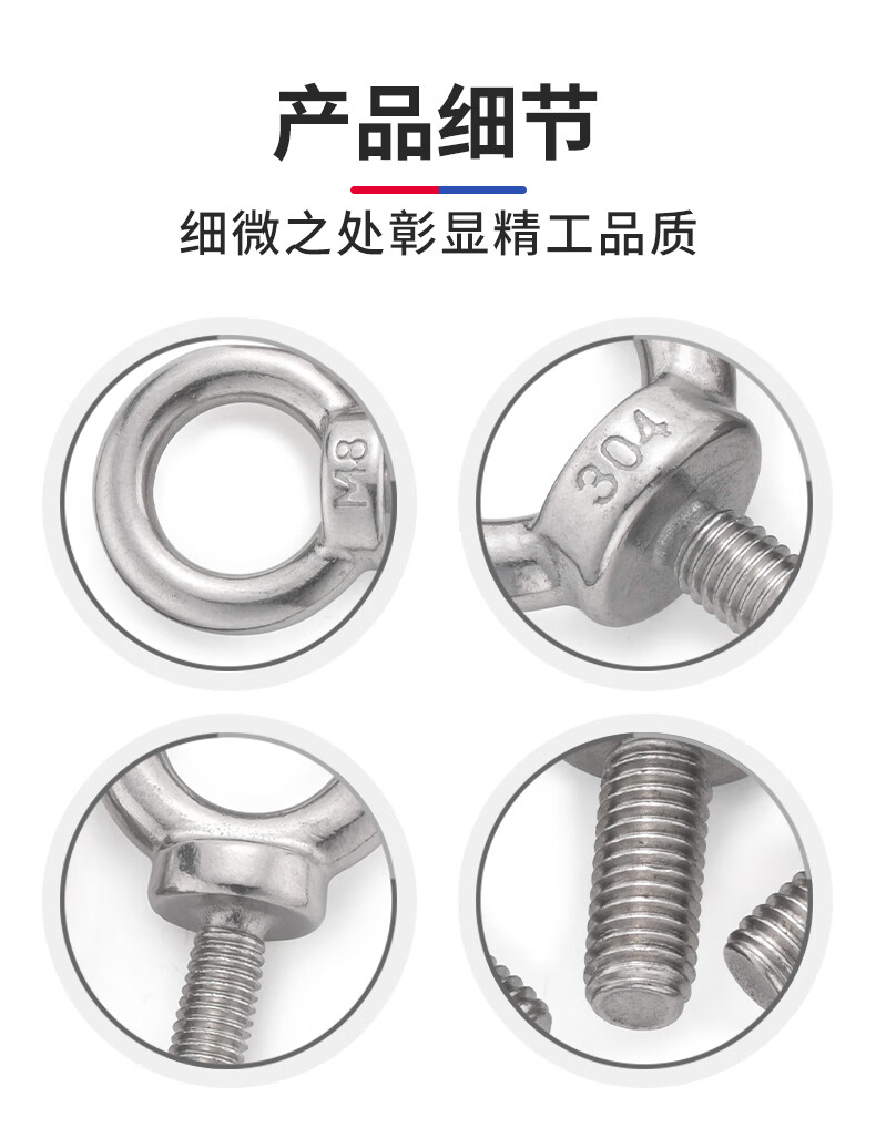 Jinggong (JINGGONG) 304 stainless steel lifting eye screw bolt extended circular ring buckle lifting O-type screw with ring lifting M5M6 M3*9 welding