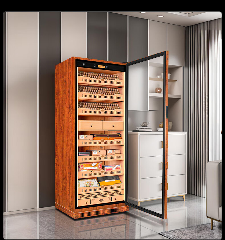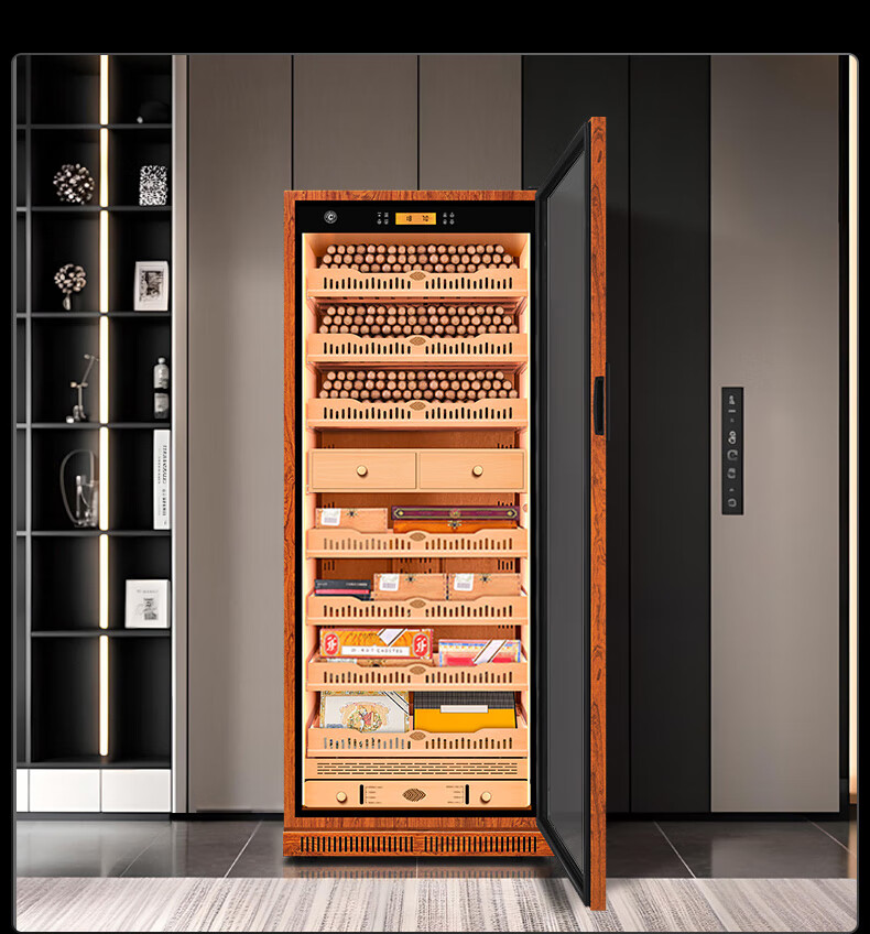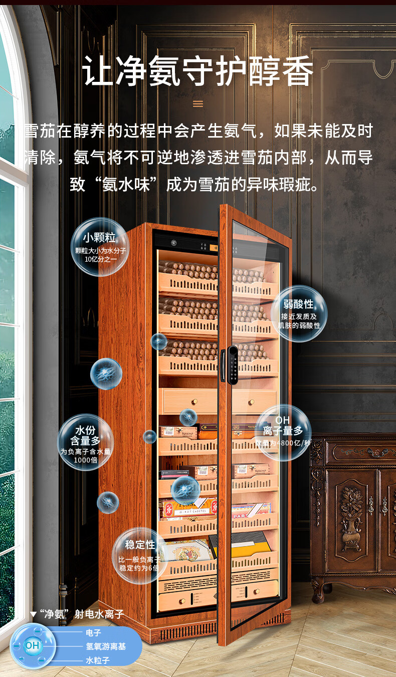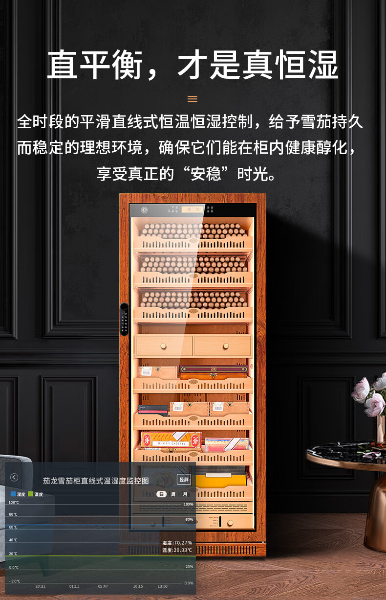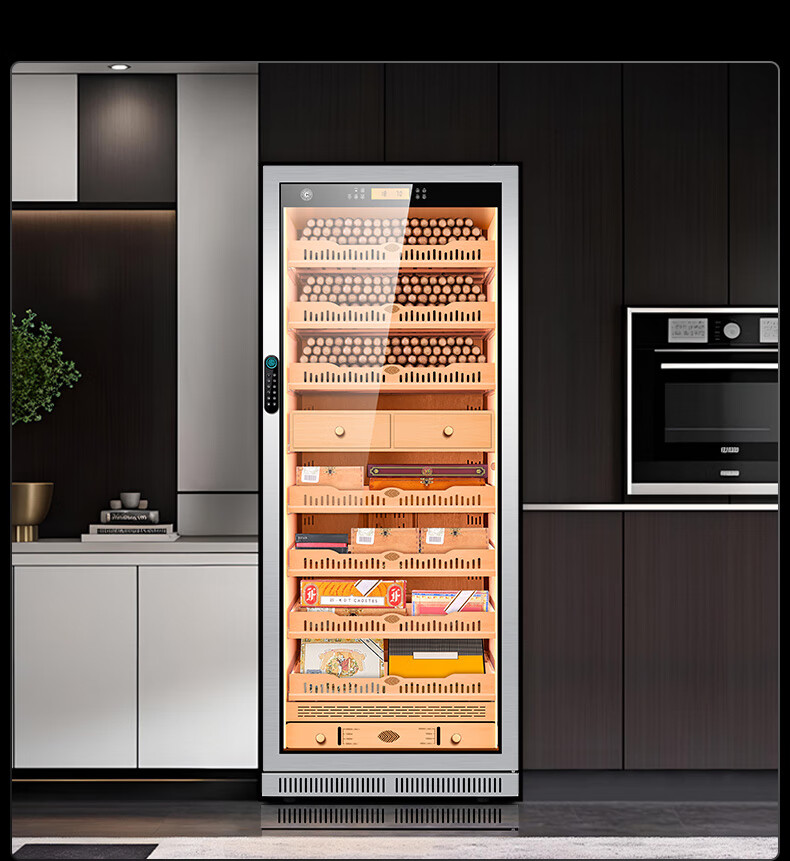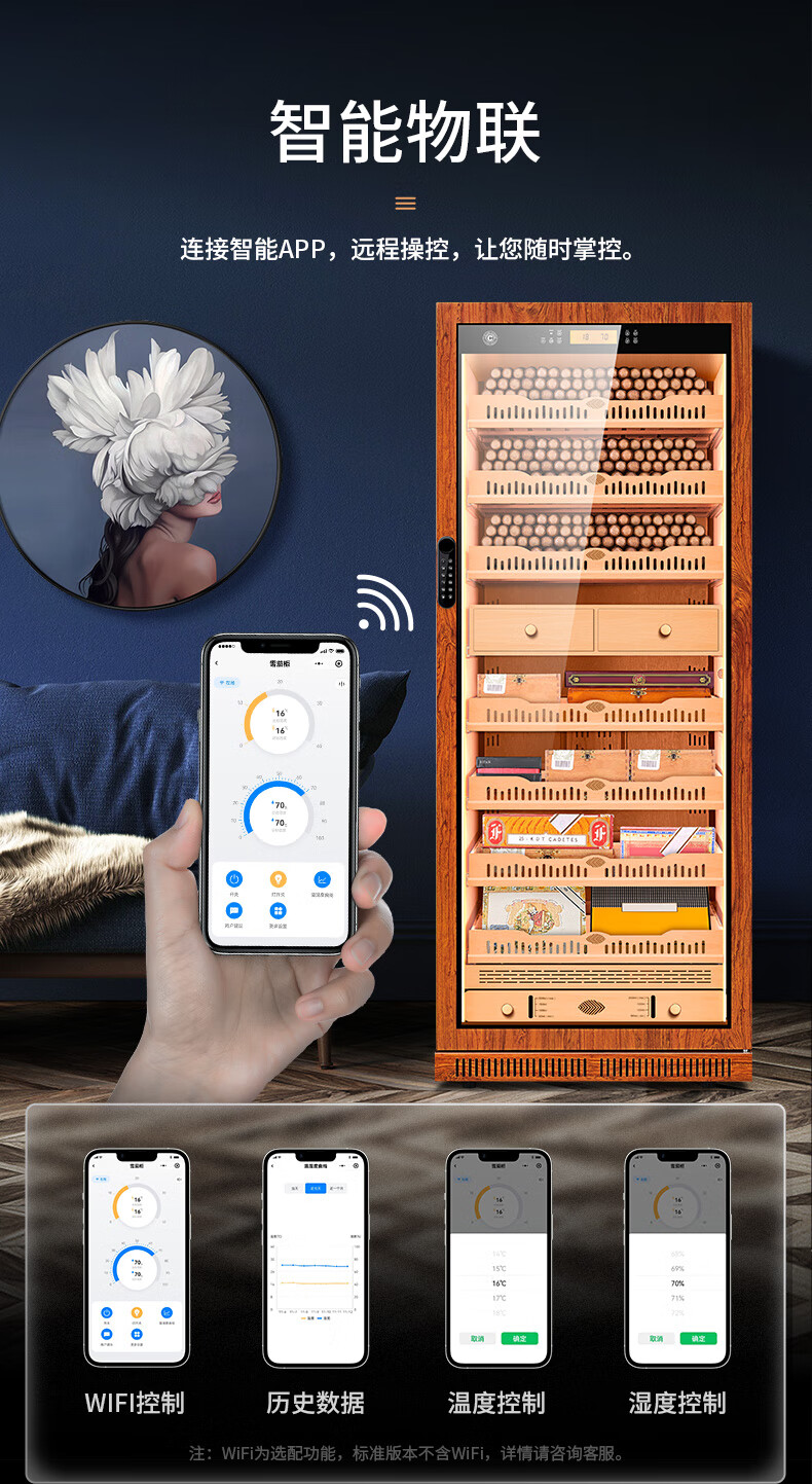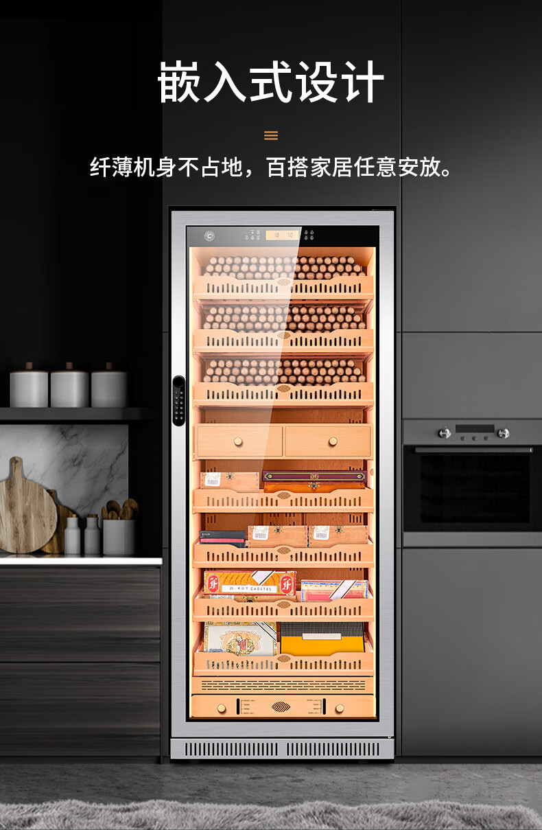 CIGARLOONG 275C cigar cabinet with constant temperature and humidity fingerprint password lock Spanish cedar wood liner water ion ammonia removal and alcohol maintenance household WiFi intelligent control large-capacity compressor humidification cabinet Diamond silver cigar red wine style ammonia purification + WiFi + fingerprint lock cigar cabinet