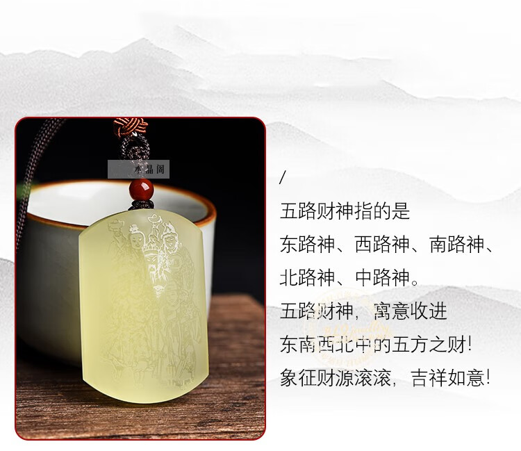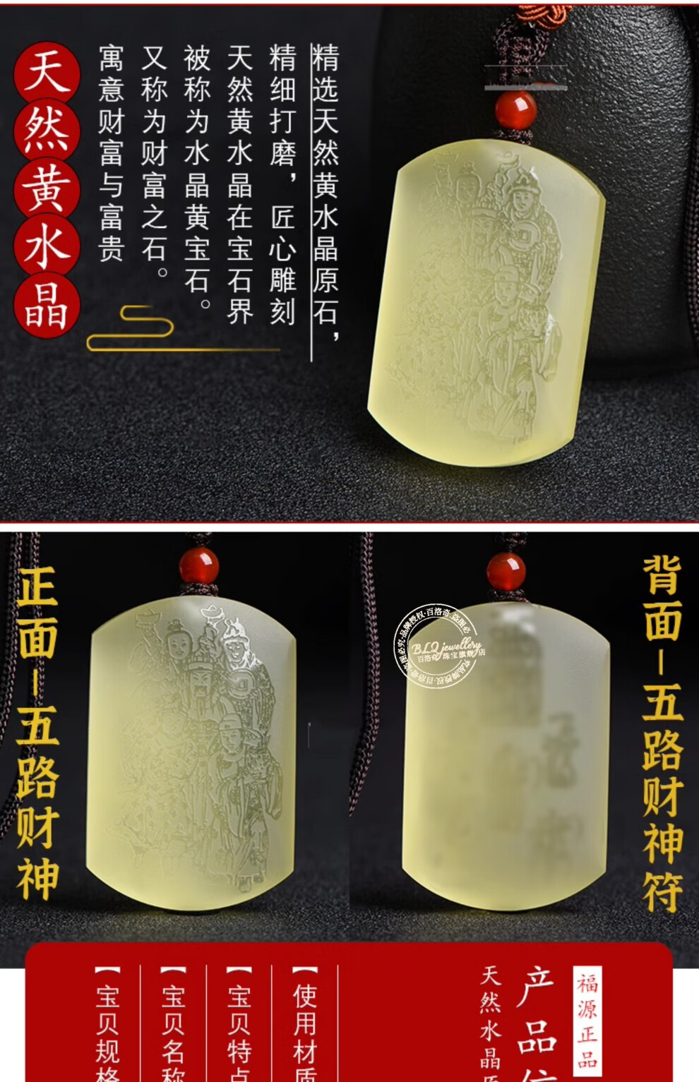 Bailuoqi Taoist natural citrine five-way God of Wealth pendant token five-party noble talisman necklace pendant amulet long lanyard pendant style