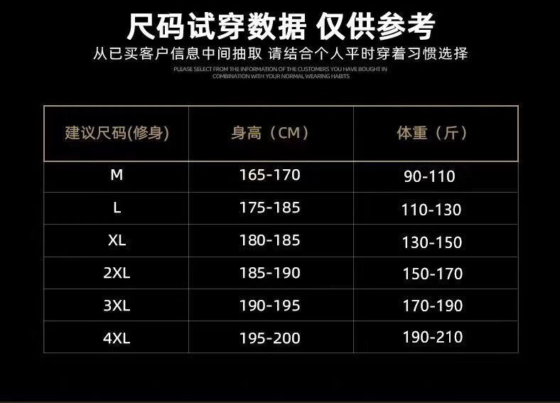 China (cm) 165 / 88-90 170 / 96-98 175 / 108-110 180 / 118-122 185 / 126-130
