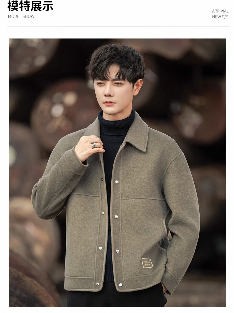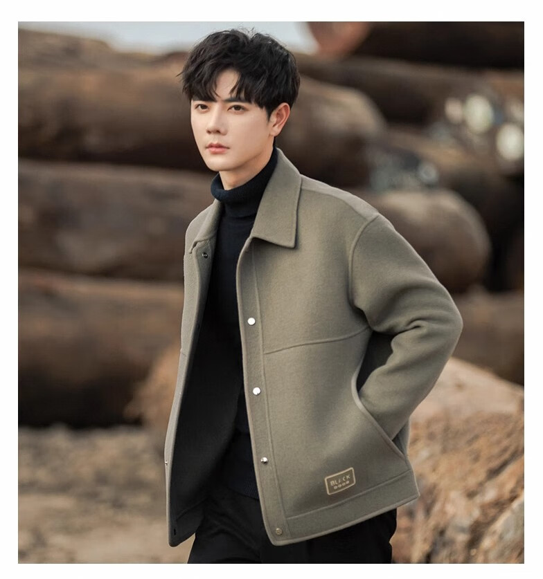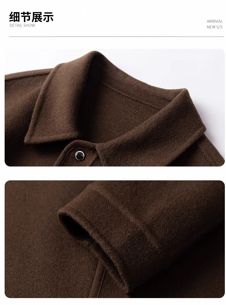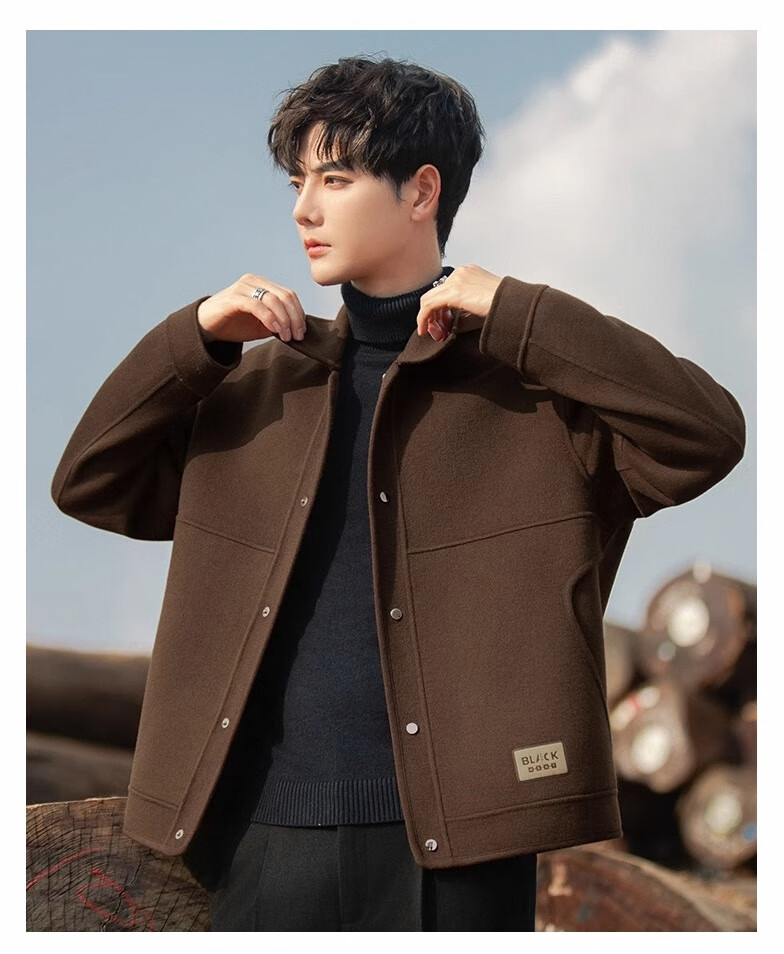 Pierre Cardin 2024 new winter woolen coat men's double-sided wool coat short lapel casual woolen jacket autumn dark brown M recommended 90-110Jin Jin equals 0.5 kg