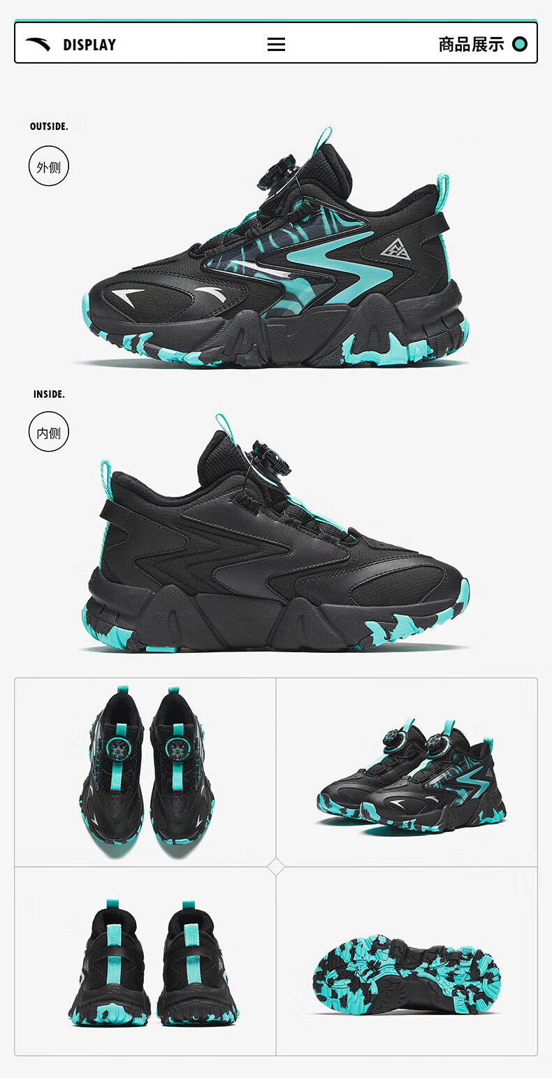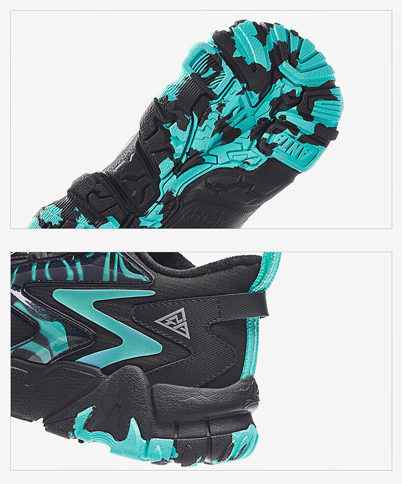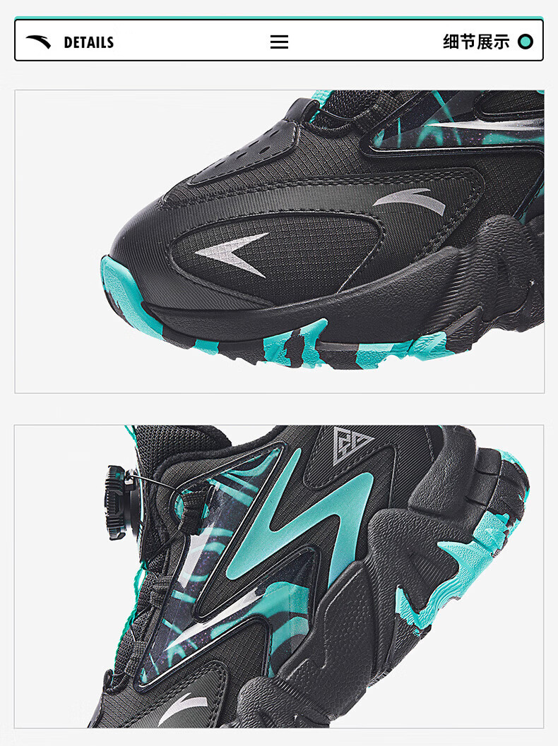 ANTA boys' cotton shoes, two cotton shoes, winter shoes, velvet and thickened, 6-12 years old, non-slip, wear-resistant outdoor sports shoes, black and green 37, inner length 23.5cm