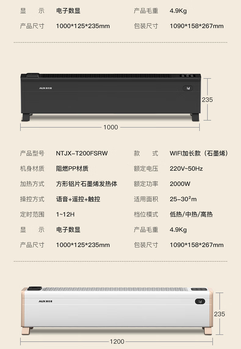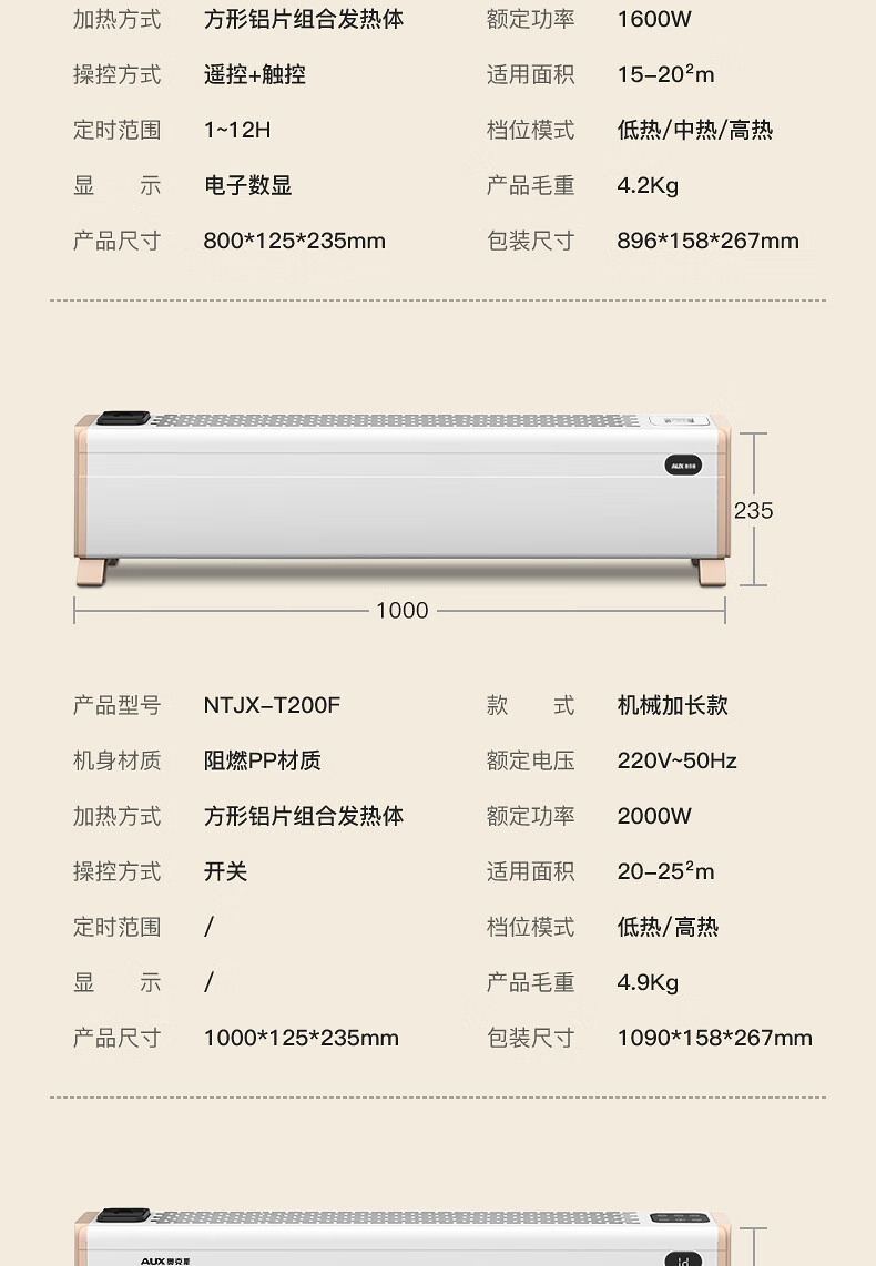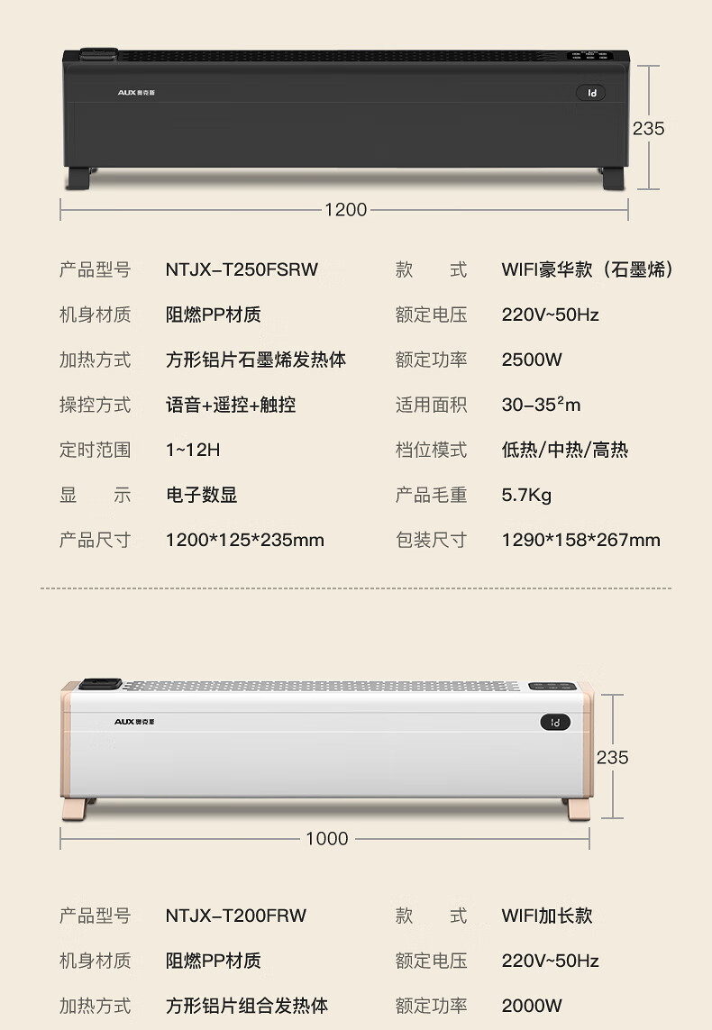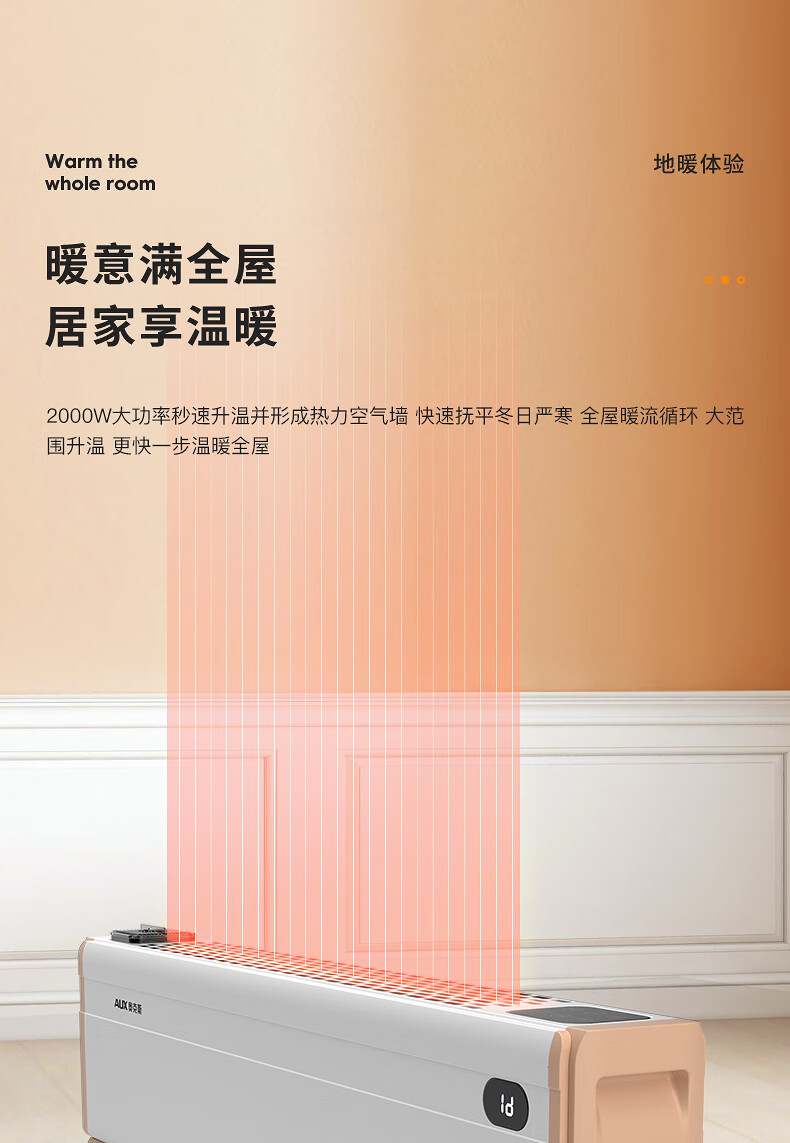 AUX baseboard heater smart electric heater smart home remote control heater temperature control bathroom electric radiator heater mobile floor heating white mechanical 160F