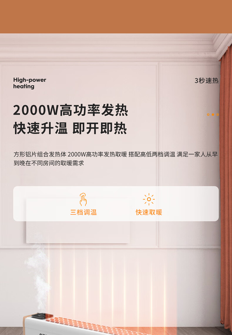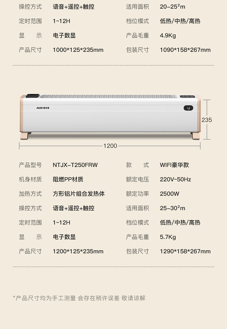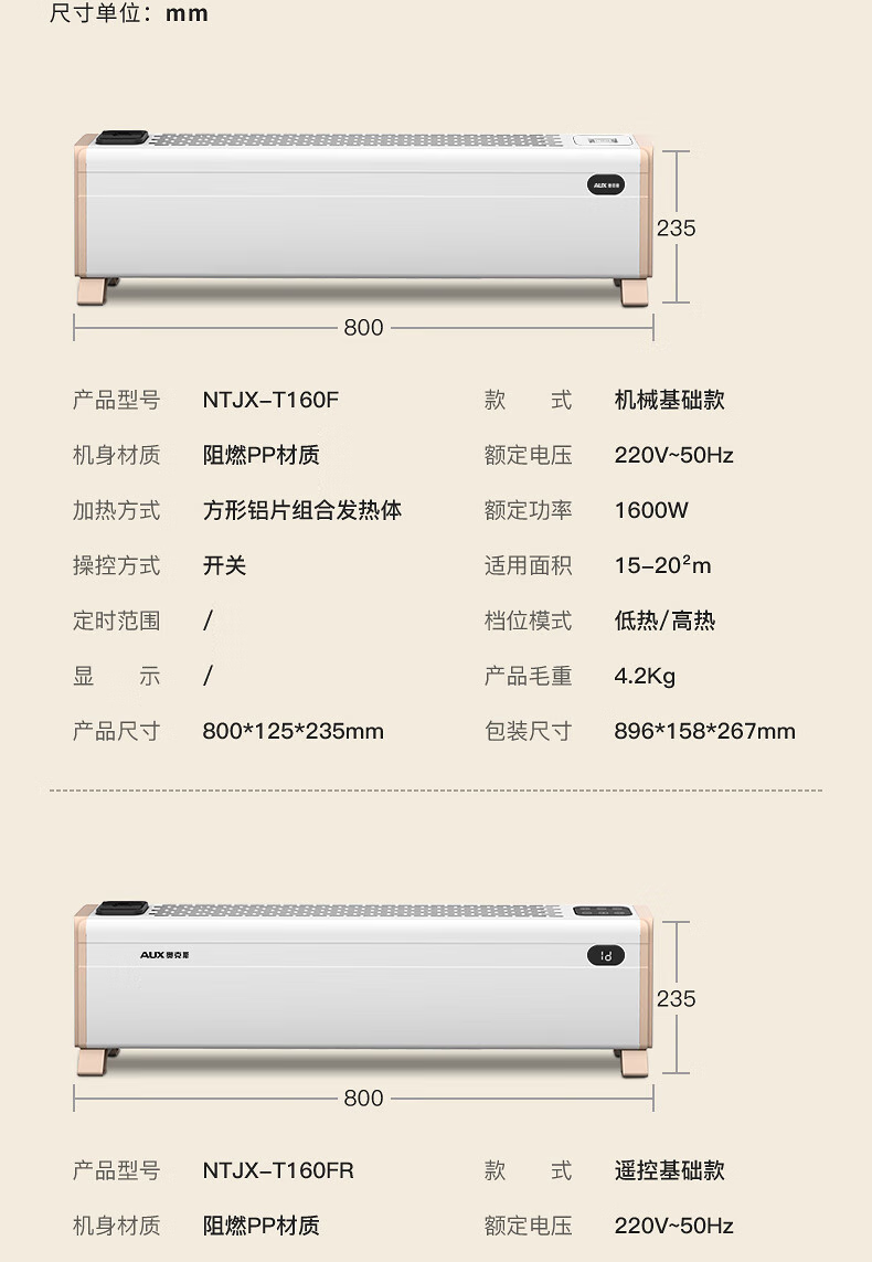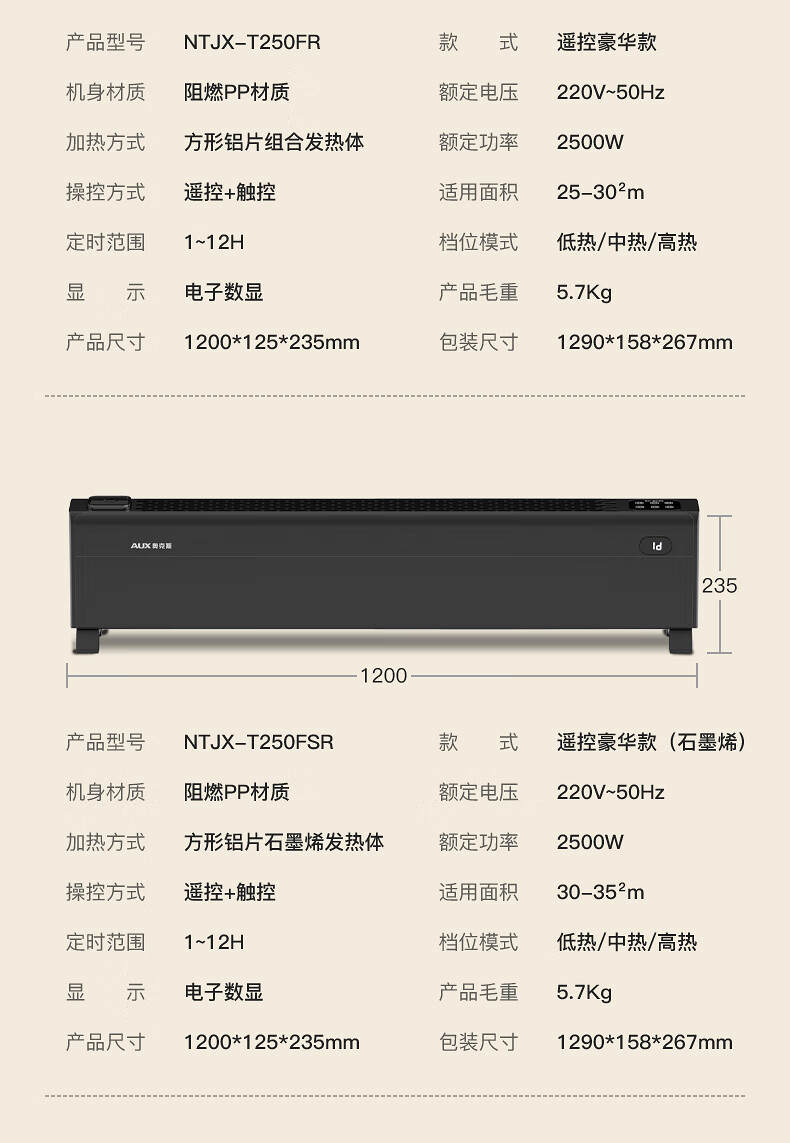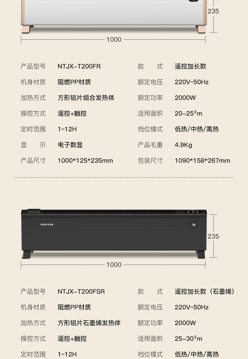 AUX baseboard heater smart electric heater smart home remote control heater temperature control bathroom electric radiator heater mobile floor heating white mechanical 160F