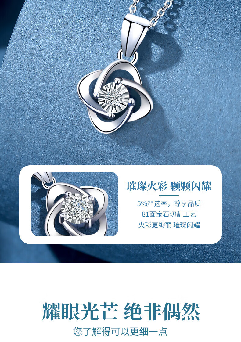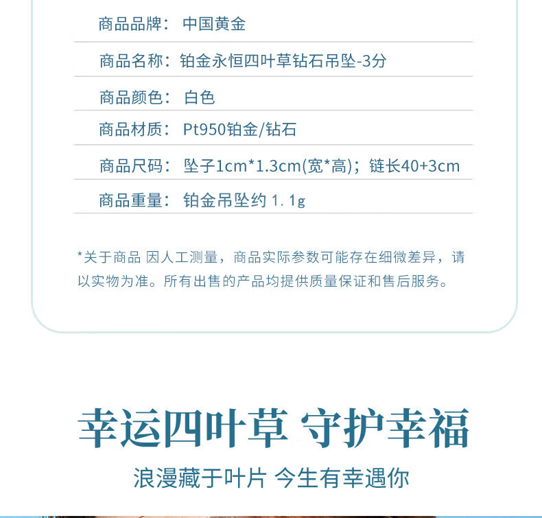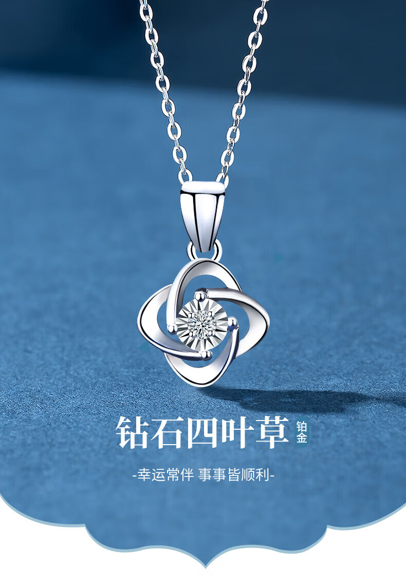 China Gold (CHINA GOLD) Four-leaf Clover PT950 Platinum Pendant Women's Diamond Platinum Necklace Anniversary Birthday Gift for Girlfriend and Wife Platinum Four-leaf Clover Pendant Free Silver Chain Souvenir