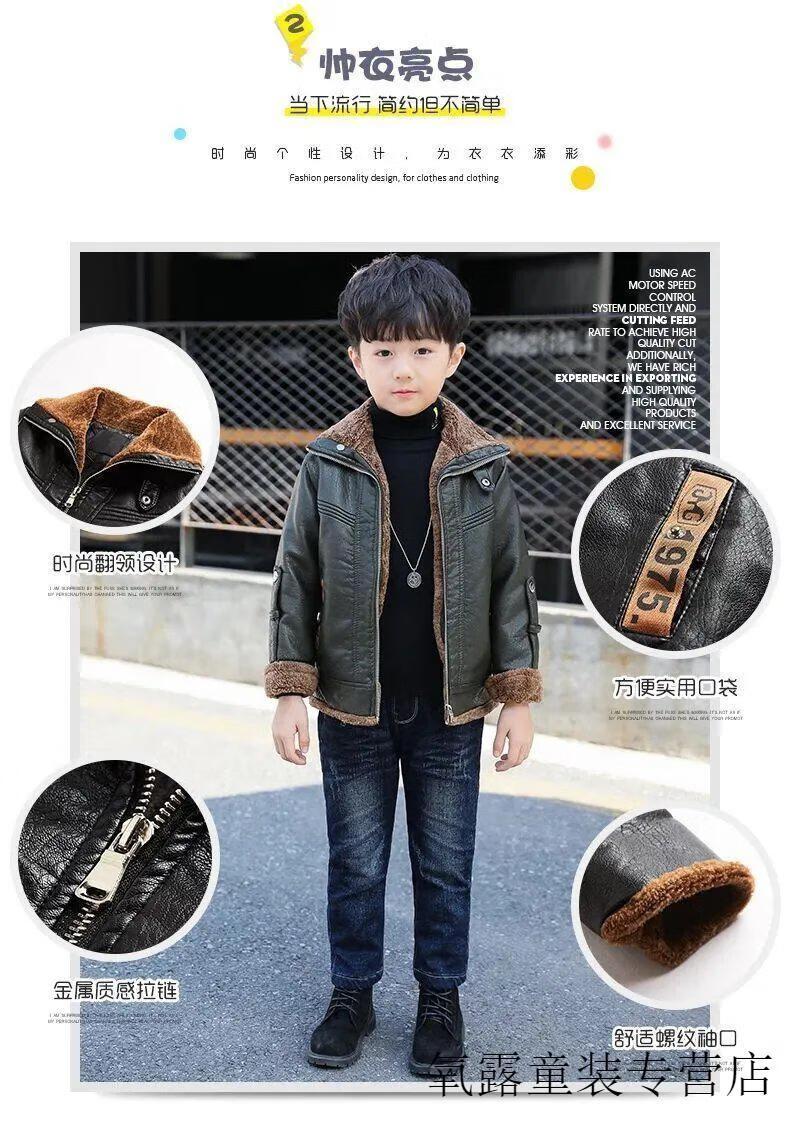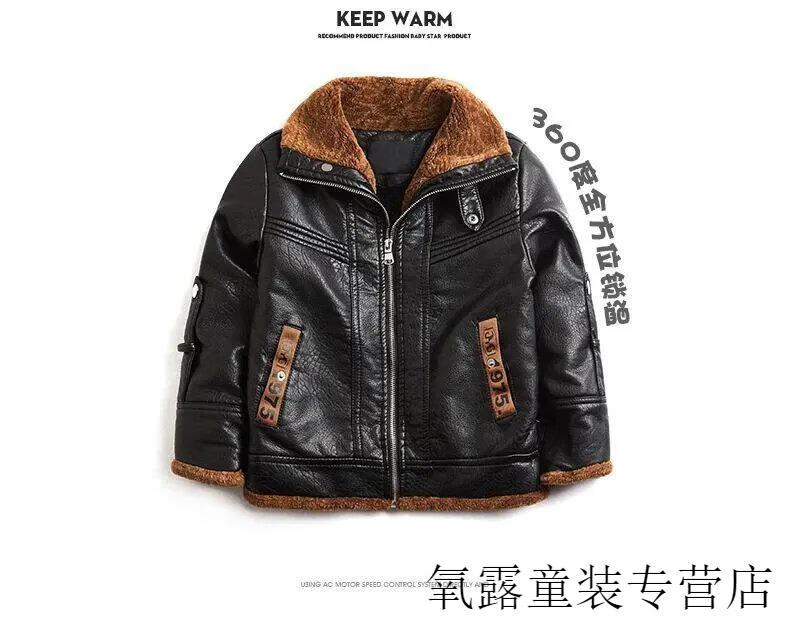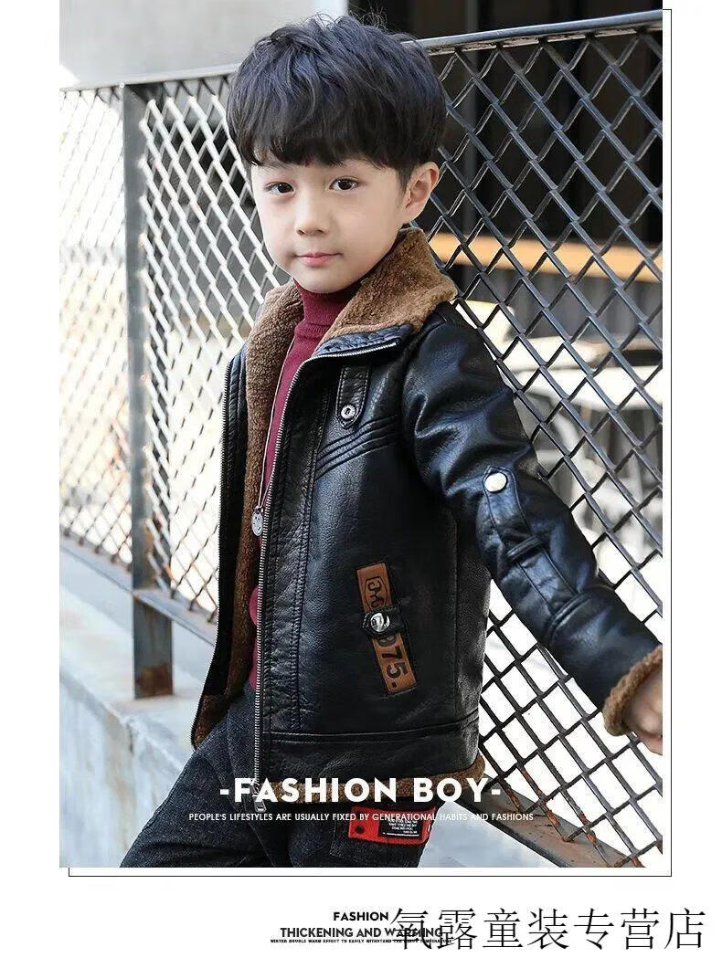 Disney (Disney) Boys Leather Clothing Autumn and Winter 2024 New Handsome Plush Jacket to Keep Cold and Warm Autumn and Winter 7 Jacket 8 Western Style Black Leather Jacket 130