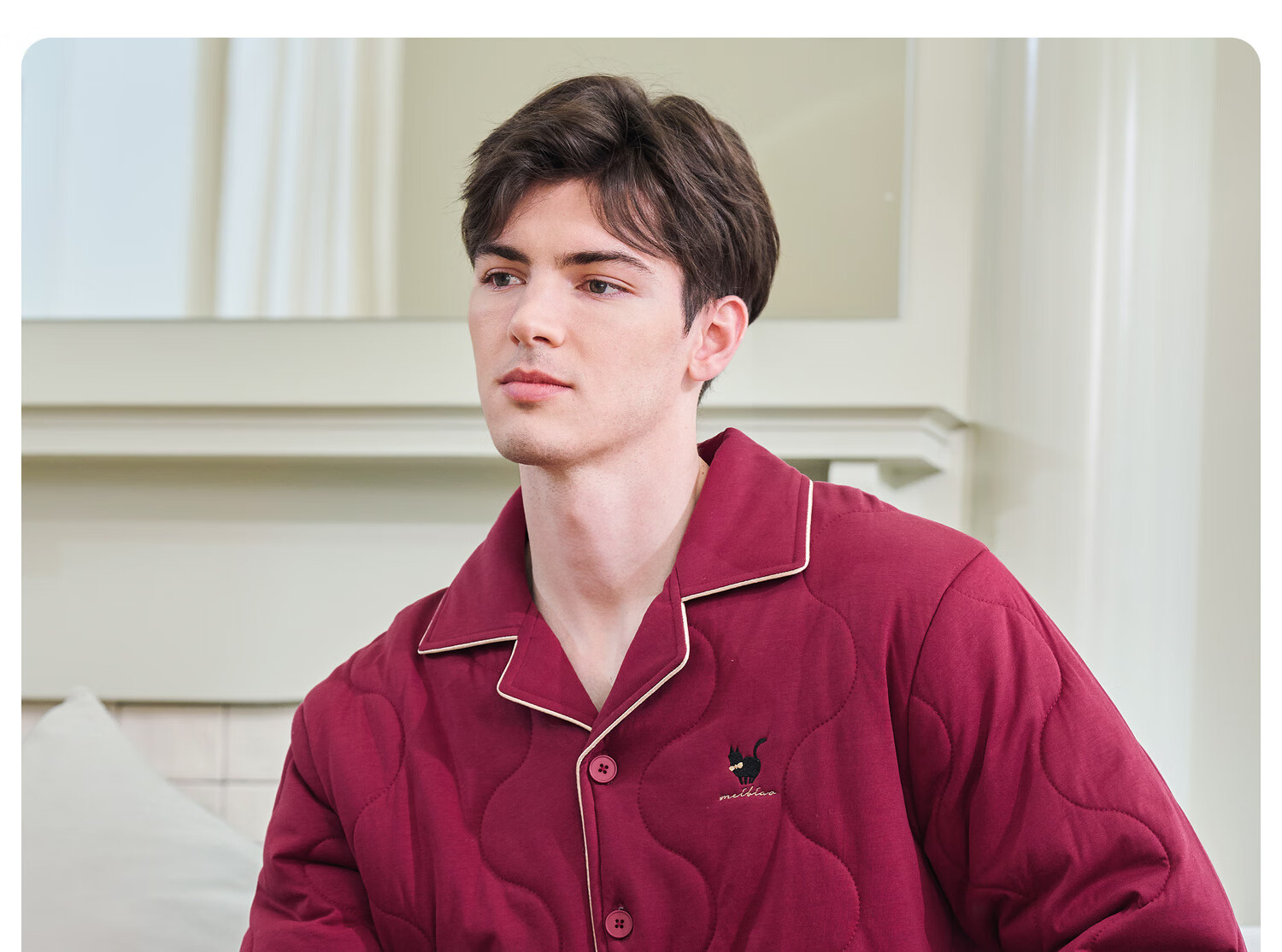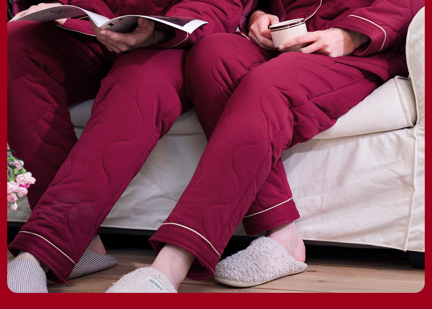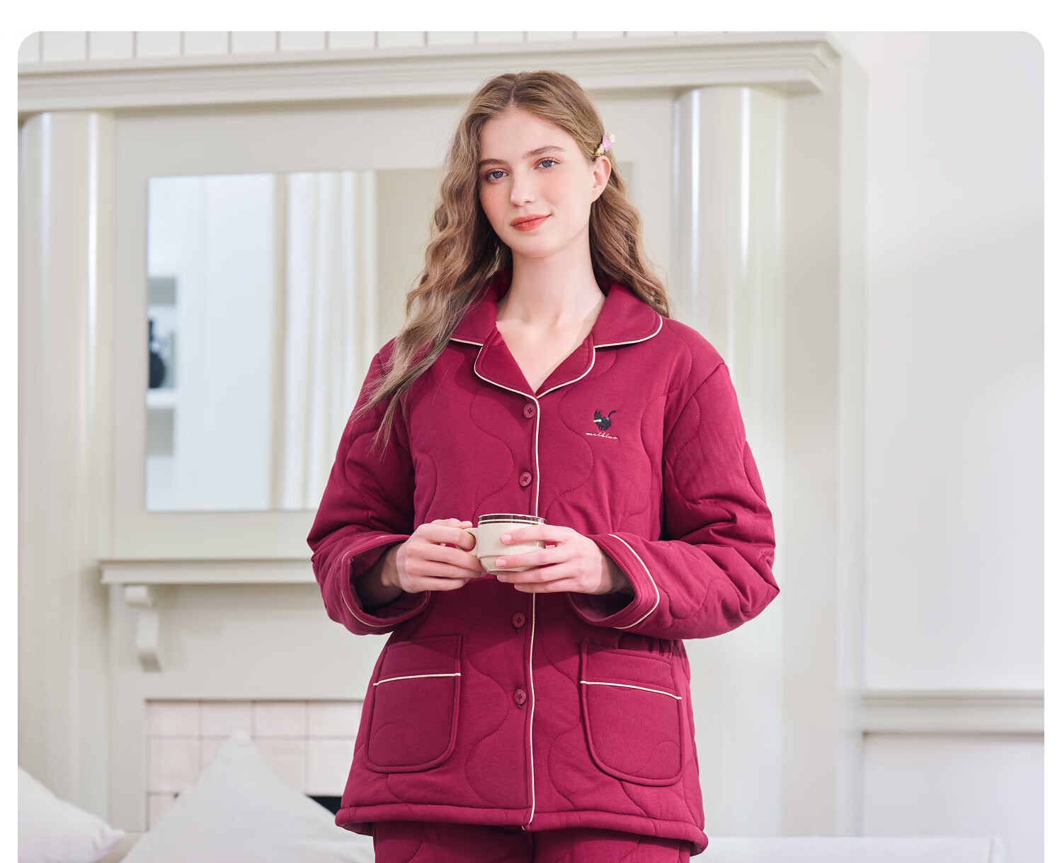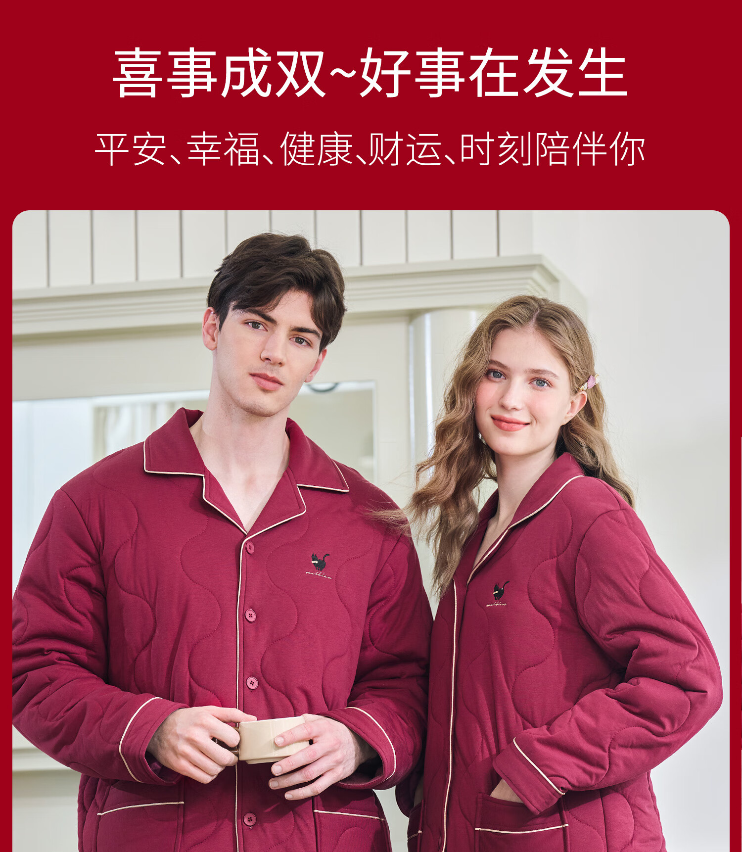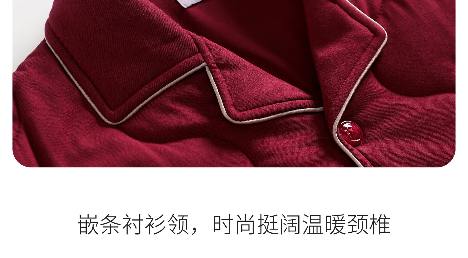 American Standard Gift Couple Three-Layer Thickened Padded Pajamas Set Women's Autumn and Winter Zodiac Year Red Cotton Home Clothing Men's Bright Maroon-Women's XL
