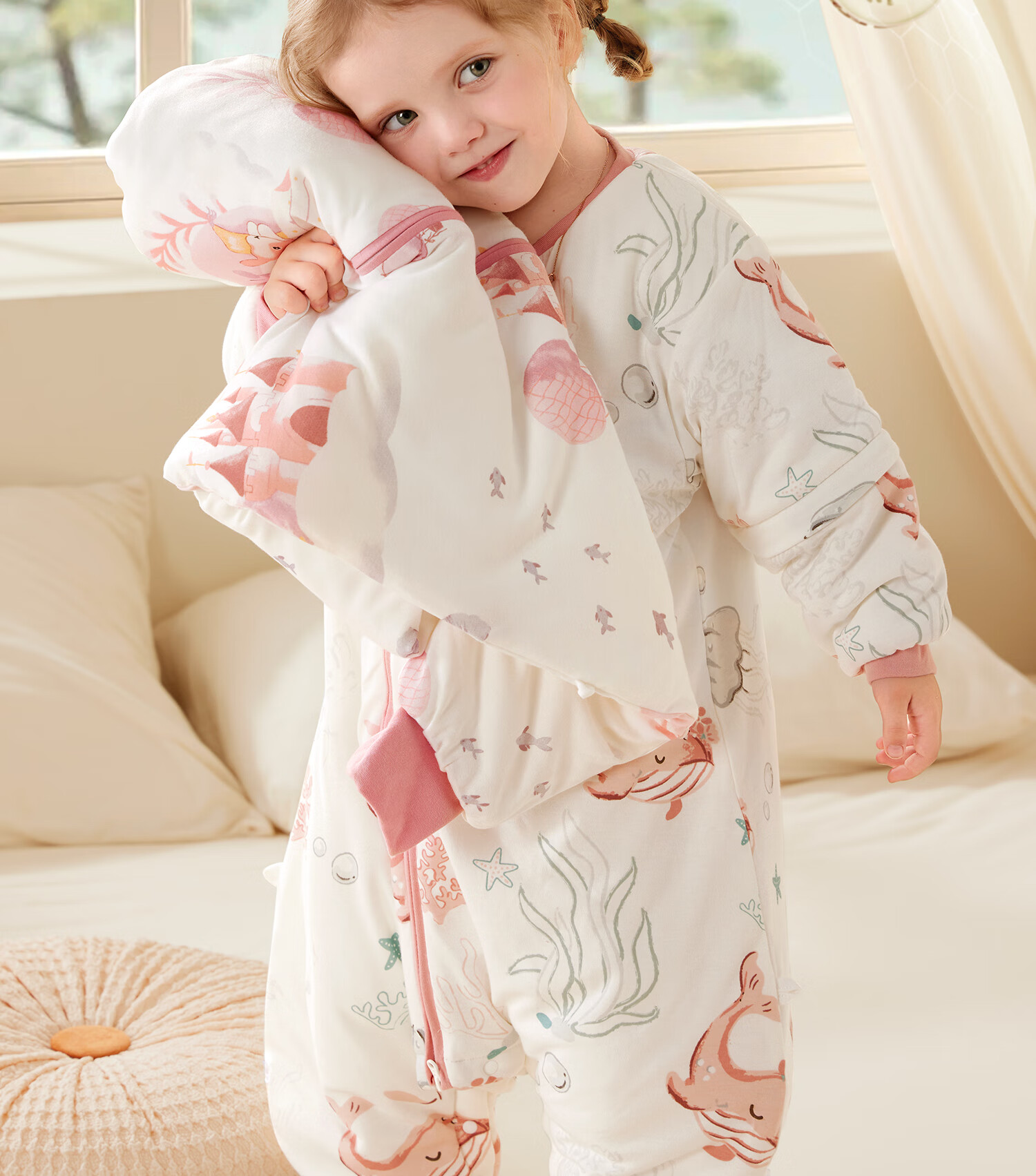 AIBEDILA baby sleeping bag, autumn and winter pajamas, baby sleeping bag, anti-kicking quilt, anti-jumping children's split-leg constant temperature sleeping bag, special price, room temperature 0-15, thickened in winter, warm ginger, Bettini Orchard L size, suitable for height 90-105cm