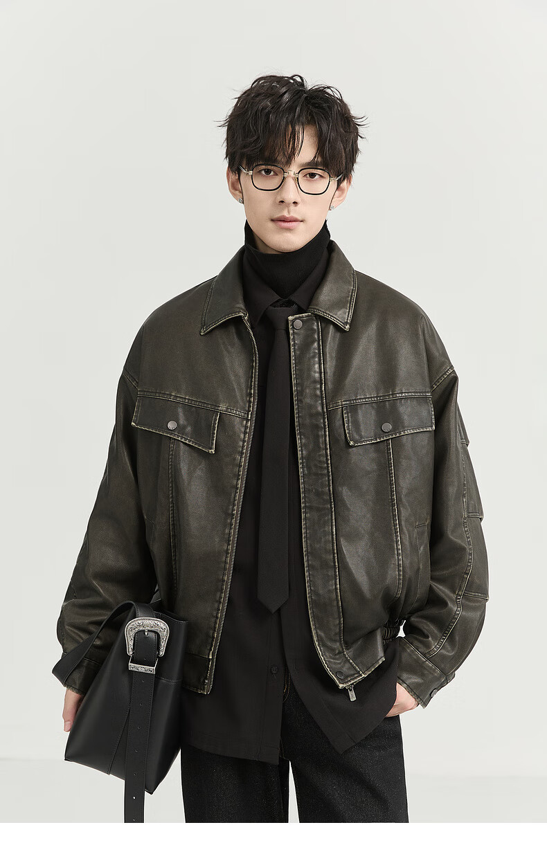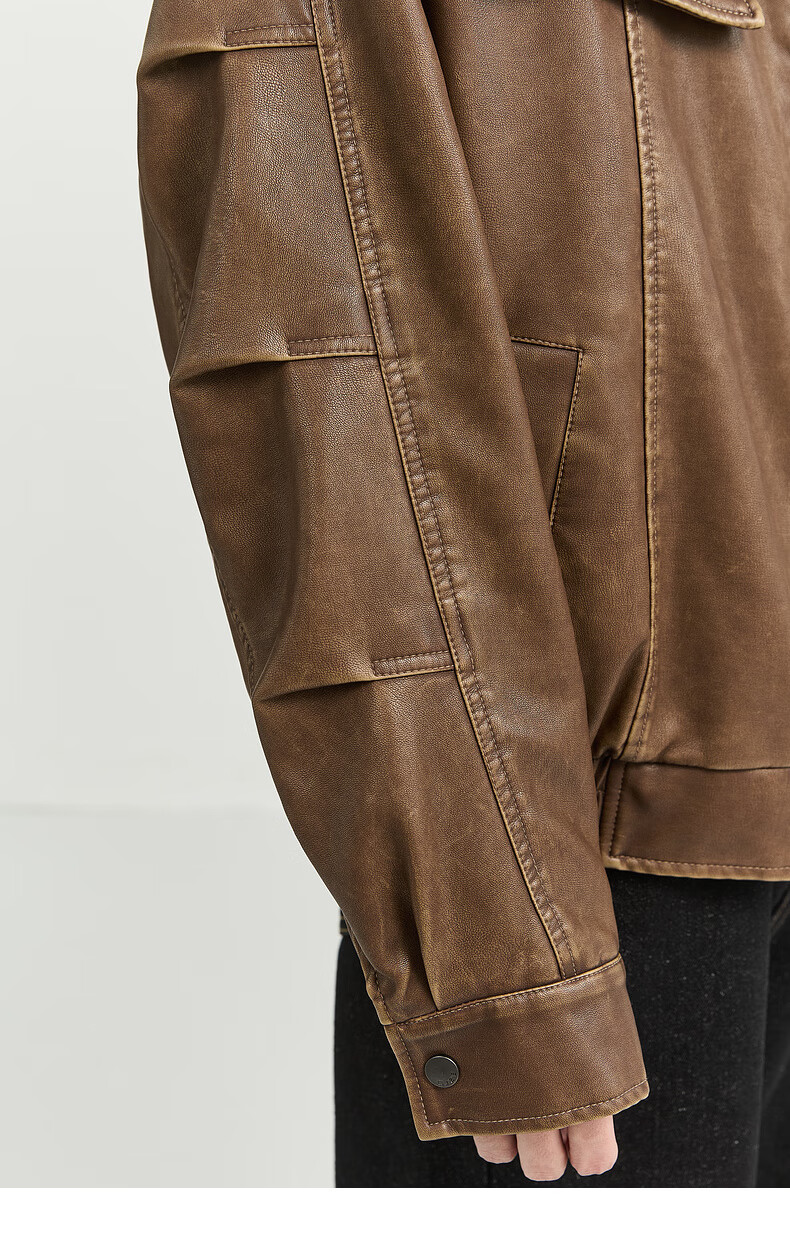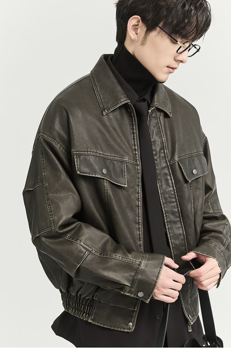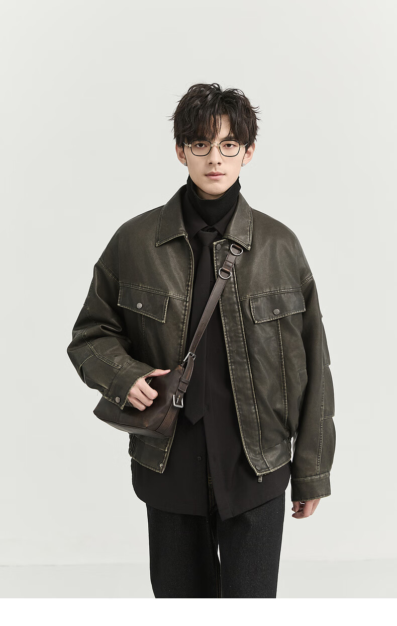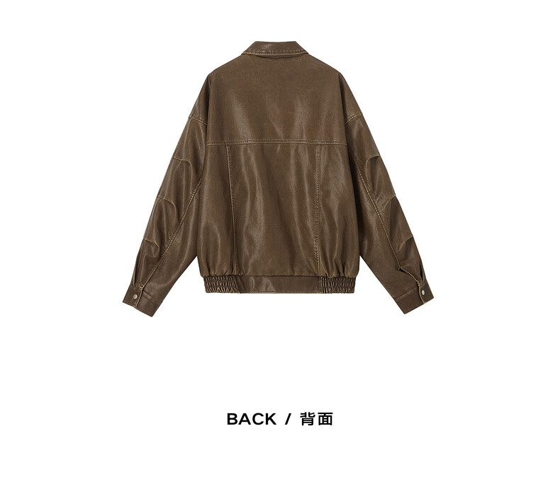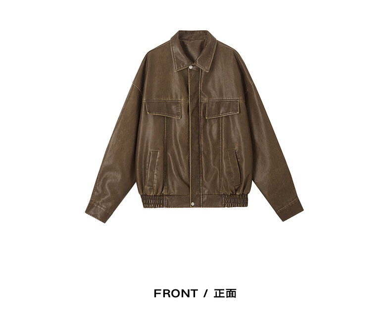 Earl Zall washed and rubbed color cotton PU imitation leather leather jacket men's warm jacket 2024 autumn and winter new style E441658 Root Beer 2XL 185