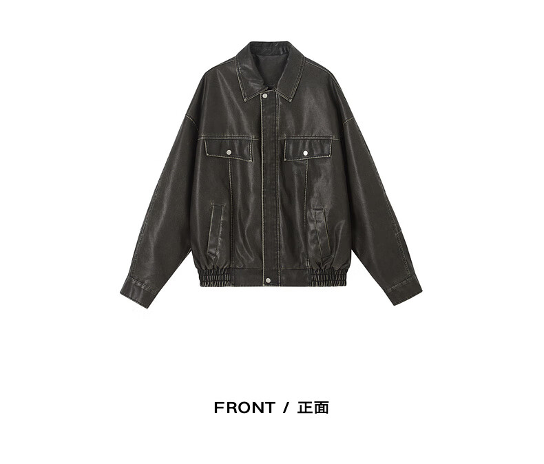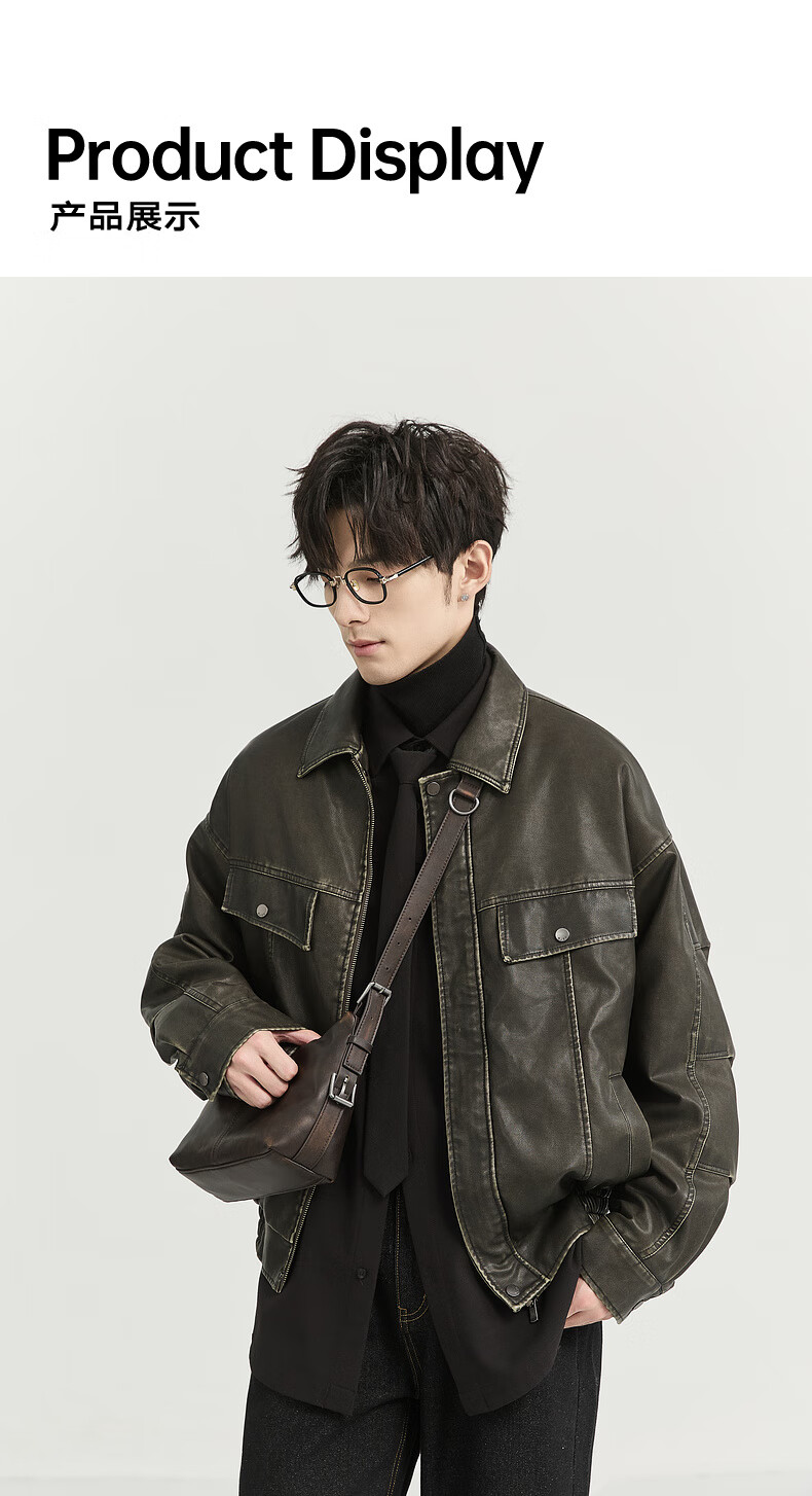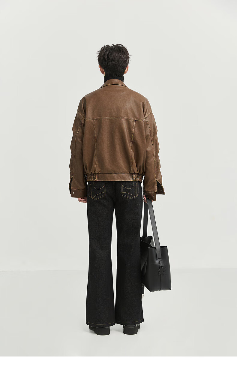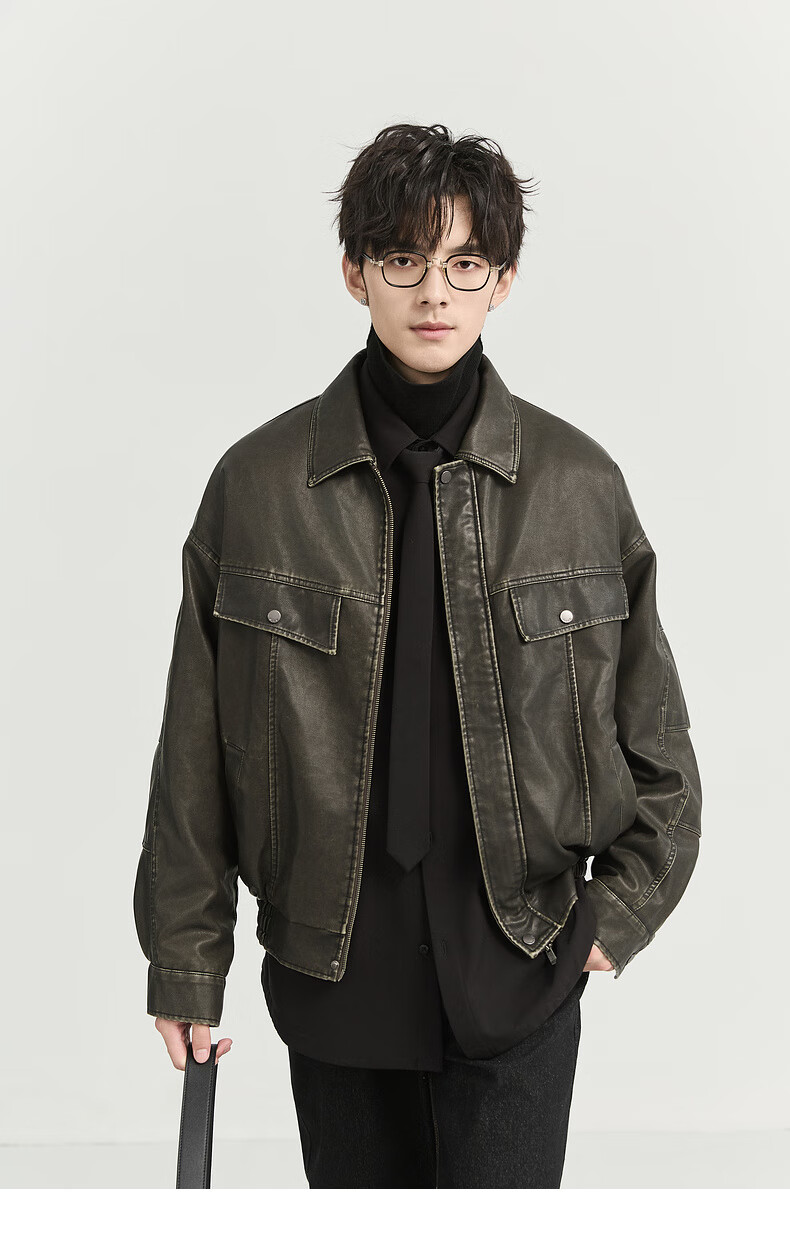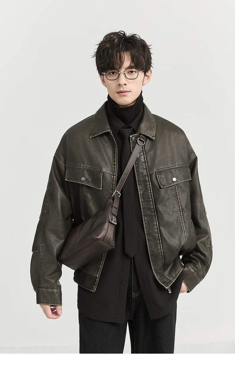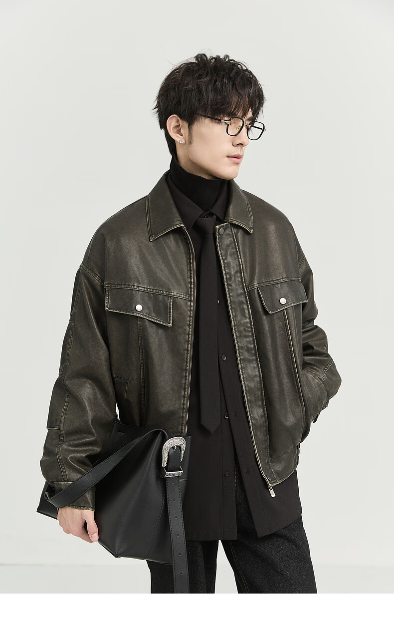 Earl Zall washed and rubbed color cotton PU imitation leather leather jacket men's warm jacket 2024 autumn and winter new style E441658 Root Beer 2XL 185